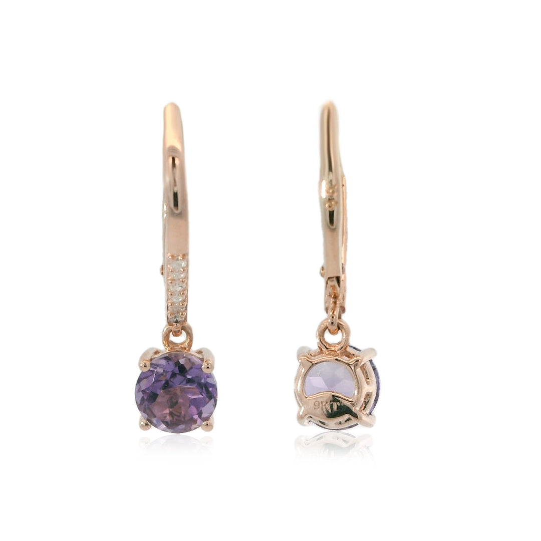 Brazilian Pink Amethyst With Diamond EF-VS 1.70ctw Hoop Earrings In 9KT Gold