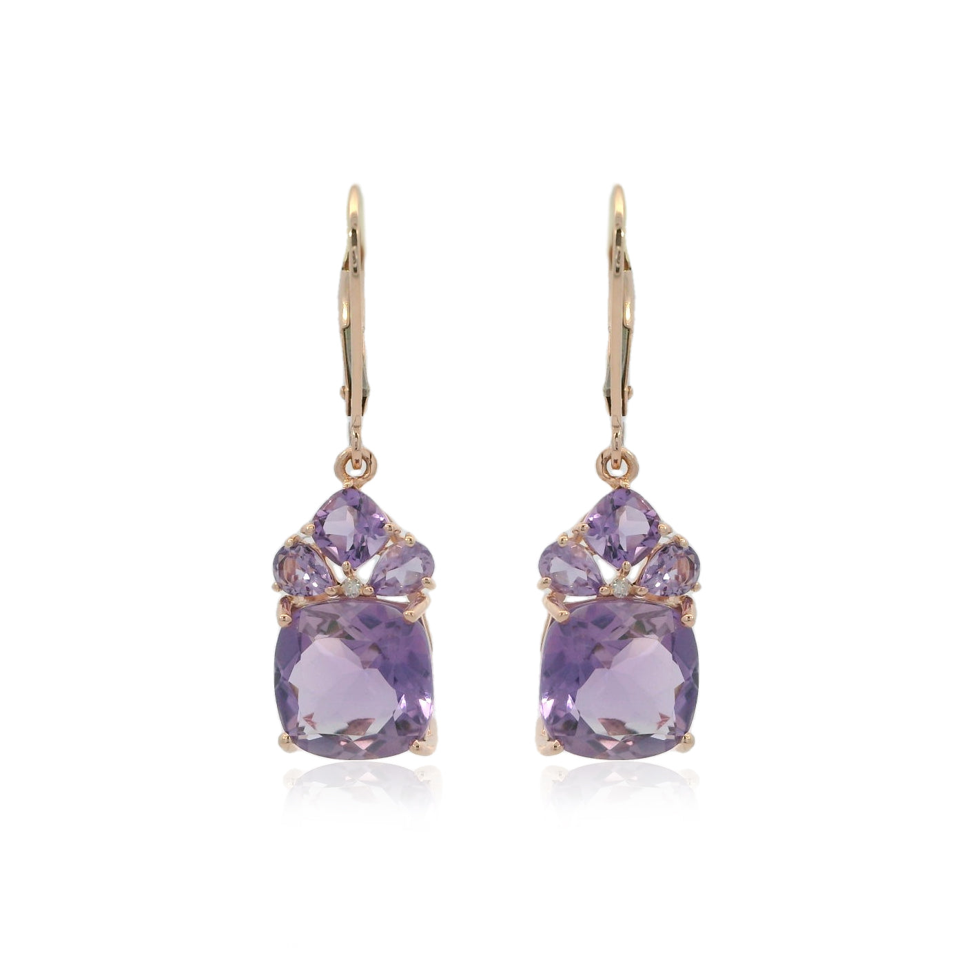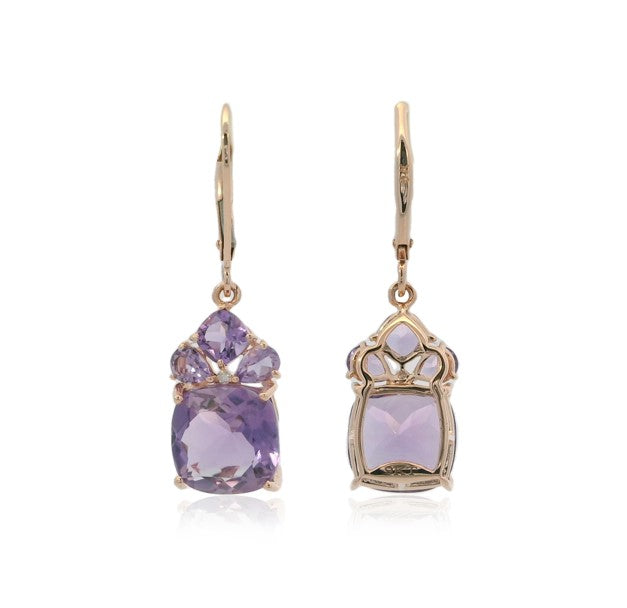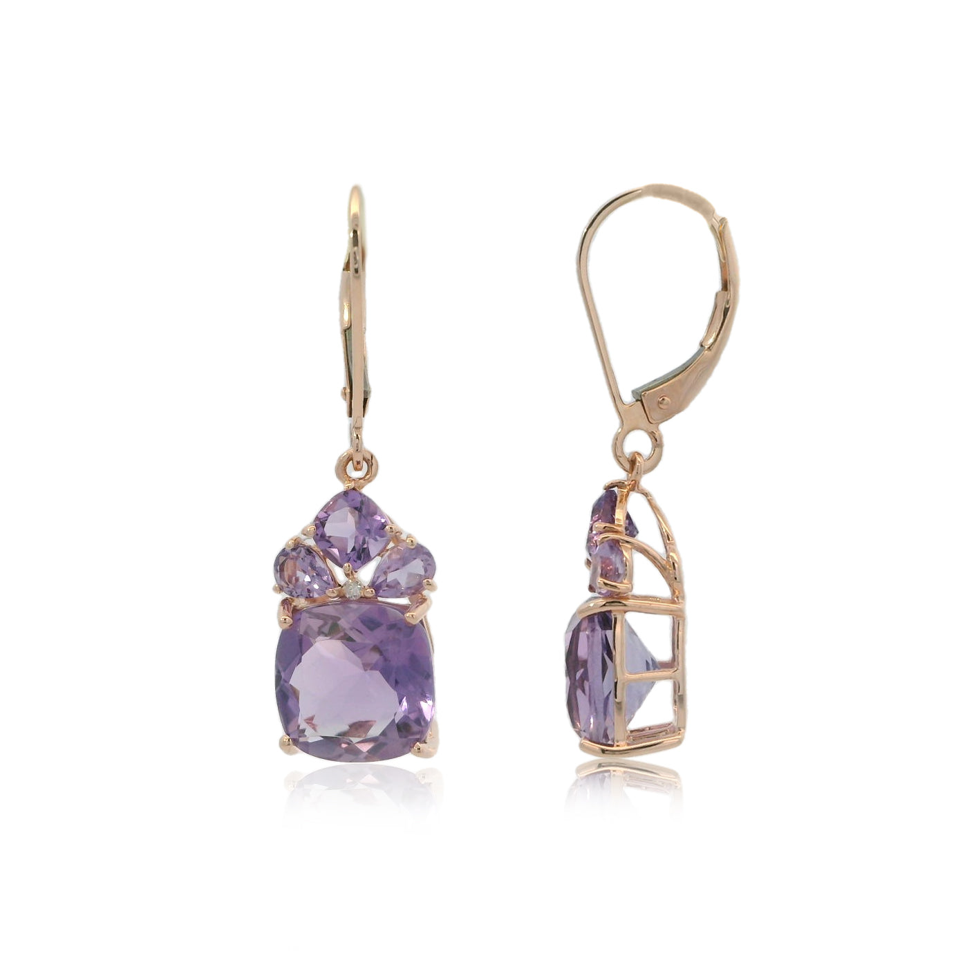 Brazilian Pink Amethyst With Diamond EF-VS 7.30ctw Lever Back Earrings In 9KT Rose Gold