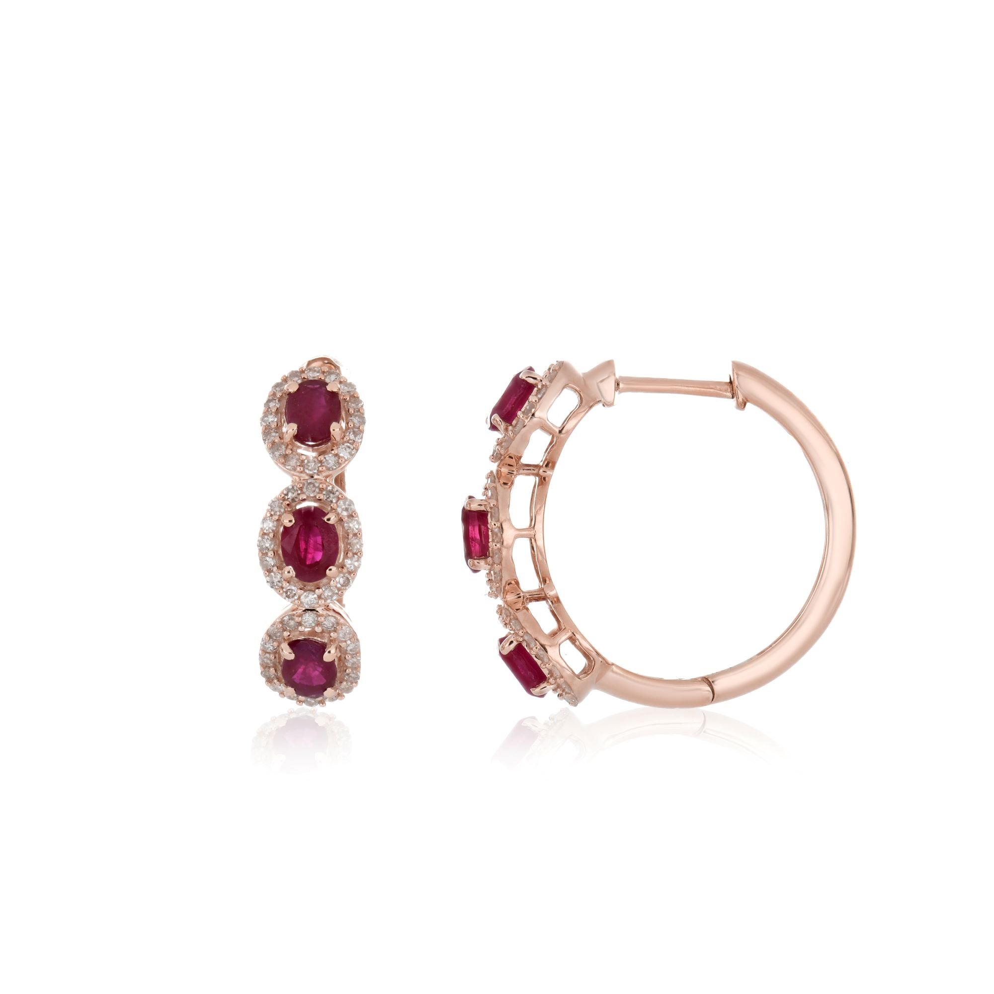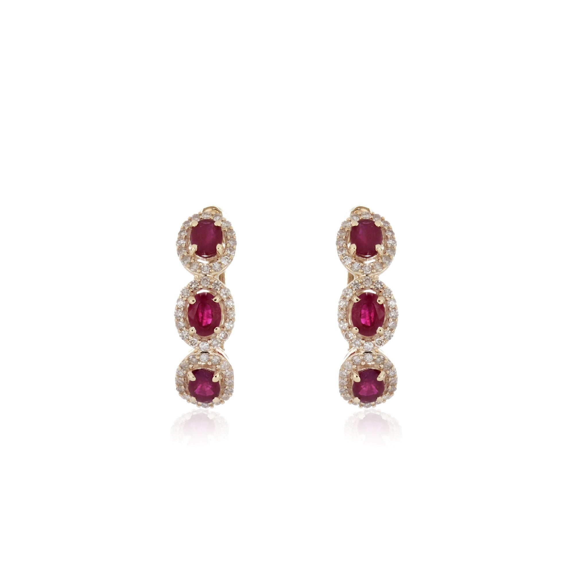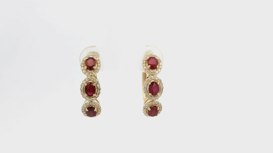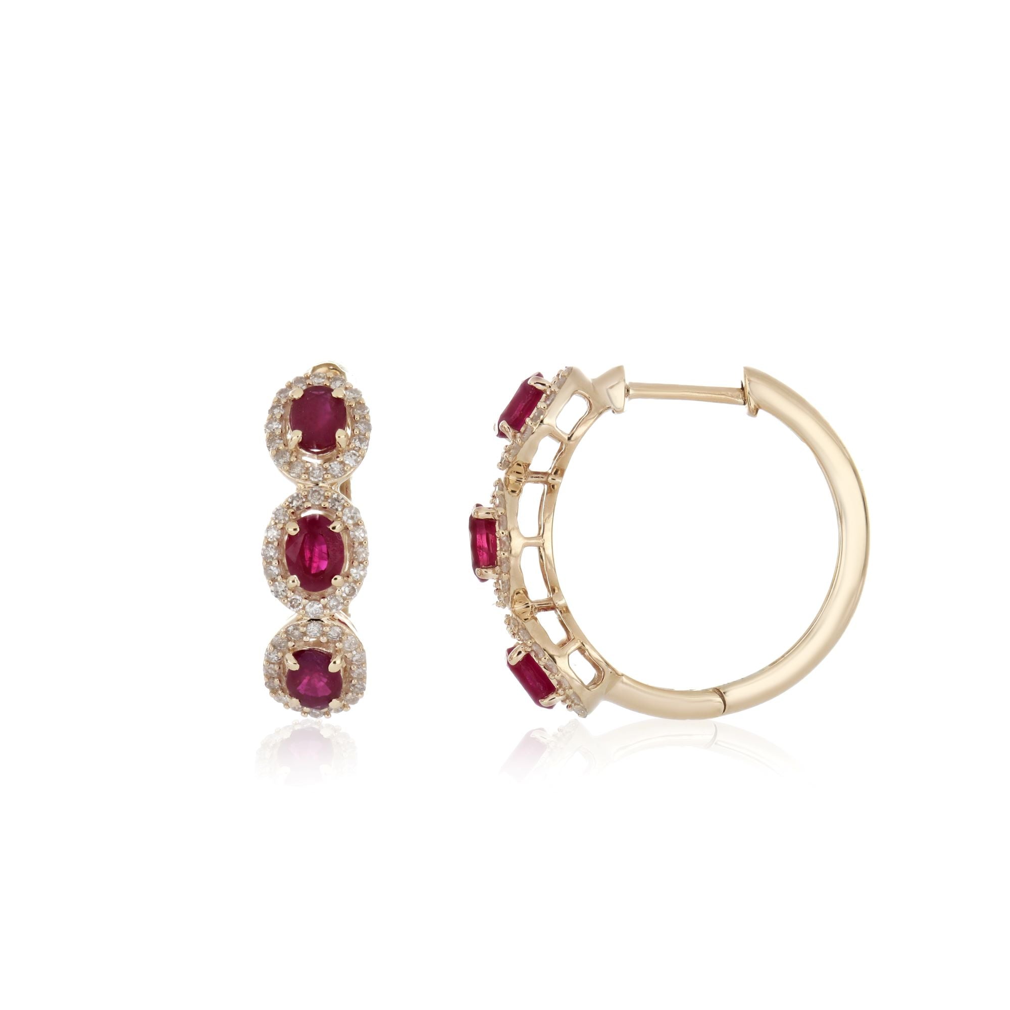 Burmese Ruby With Diamond EF-VS 2.00ctw Hoop Earrings In 9KT Yellow Gold