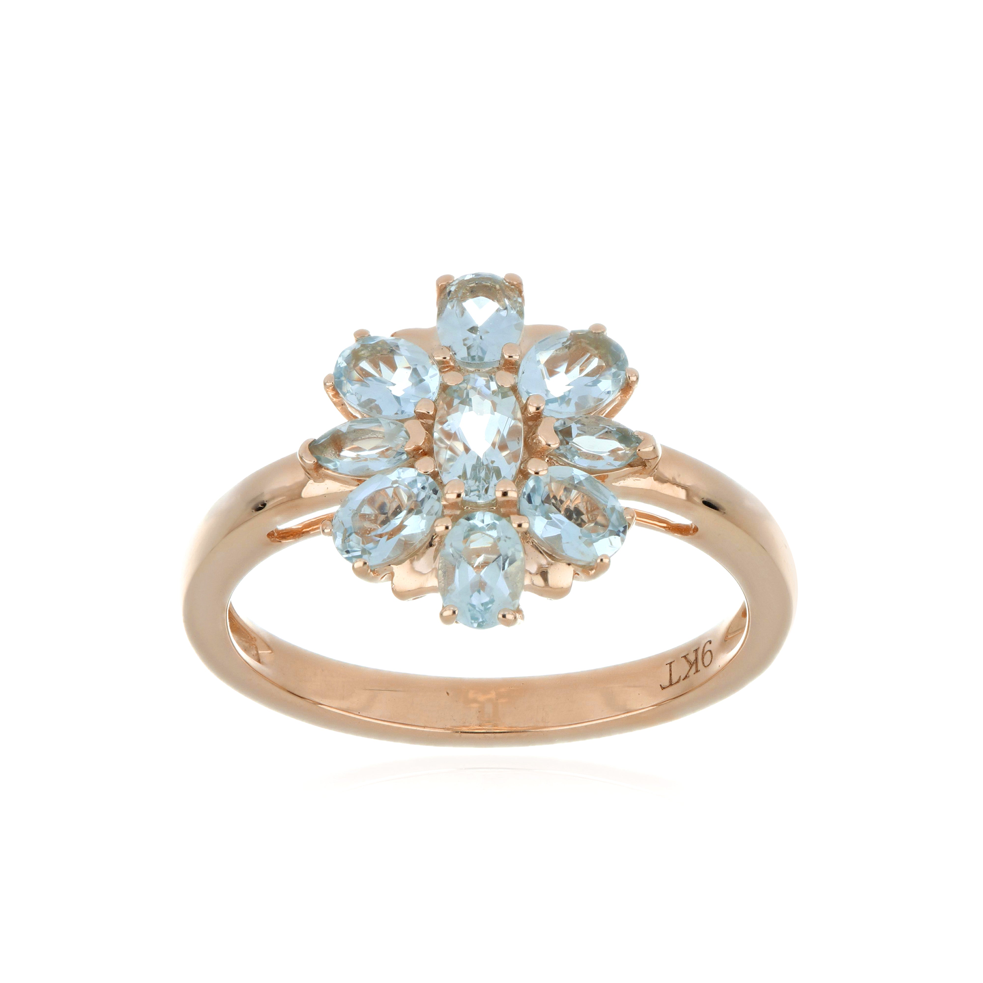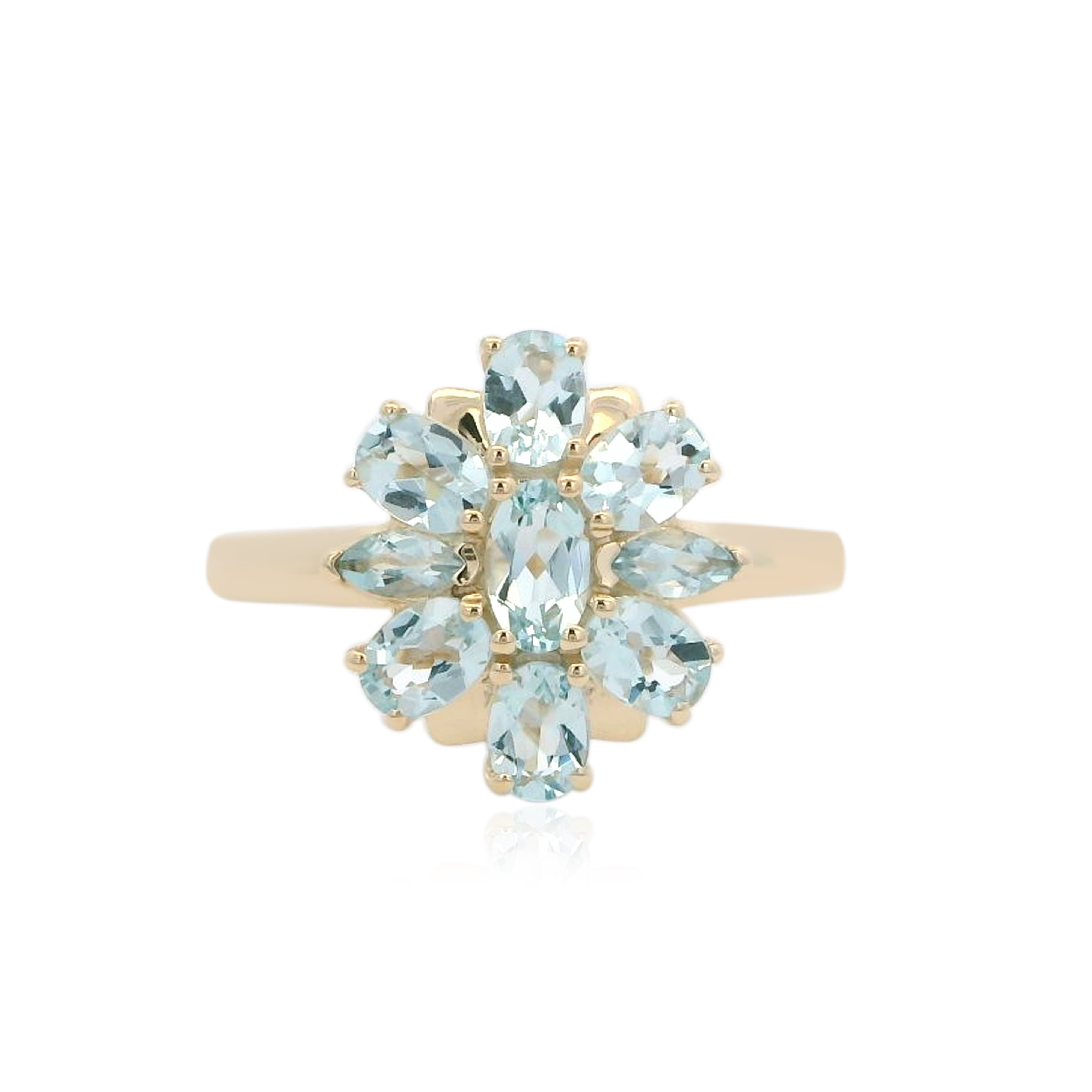 Aquamarine Flower Ring – 9KT Yellow Gold | Fine Jewelry