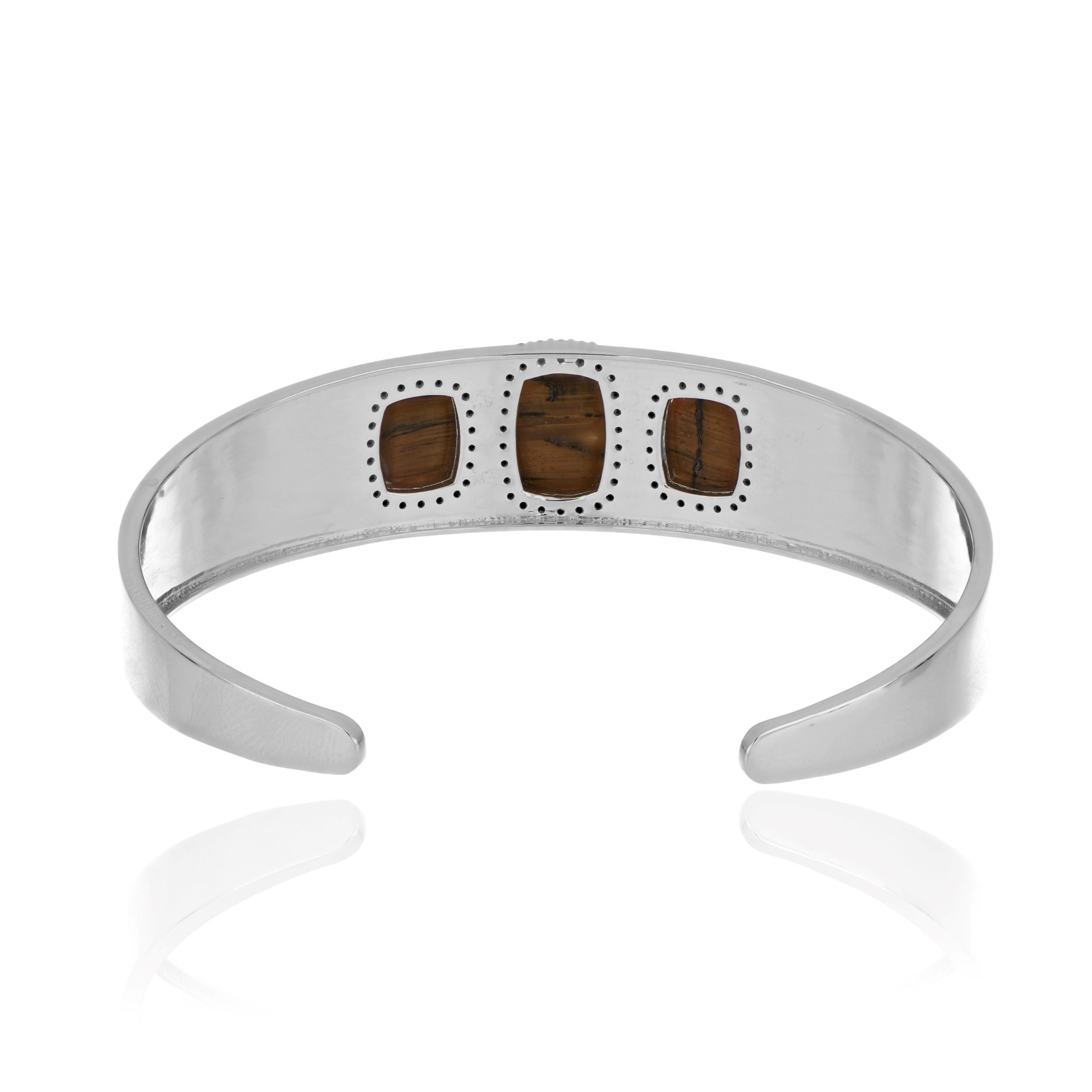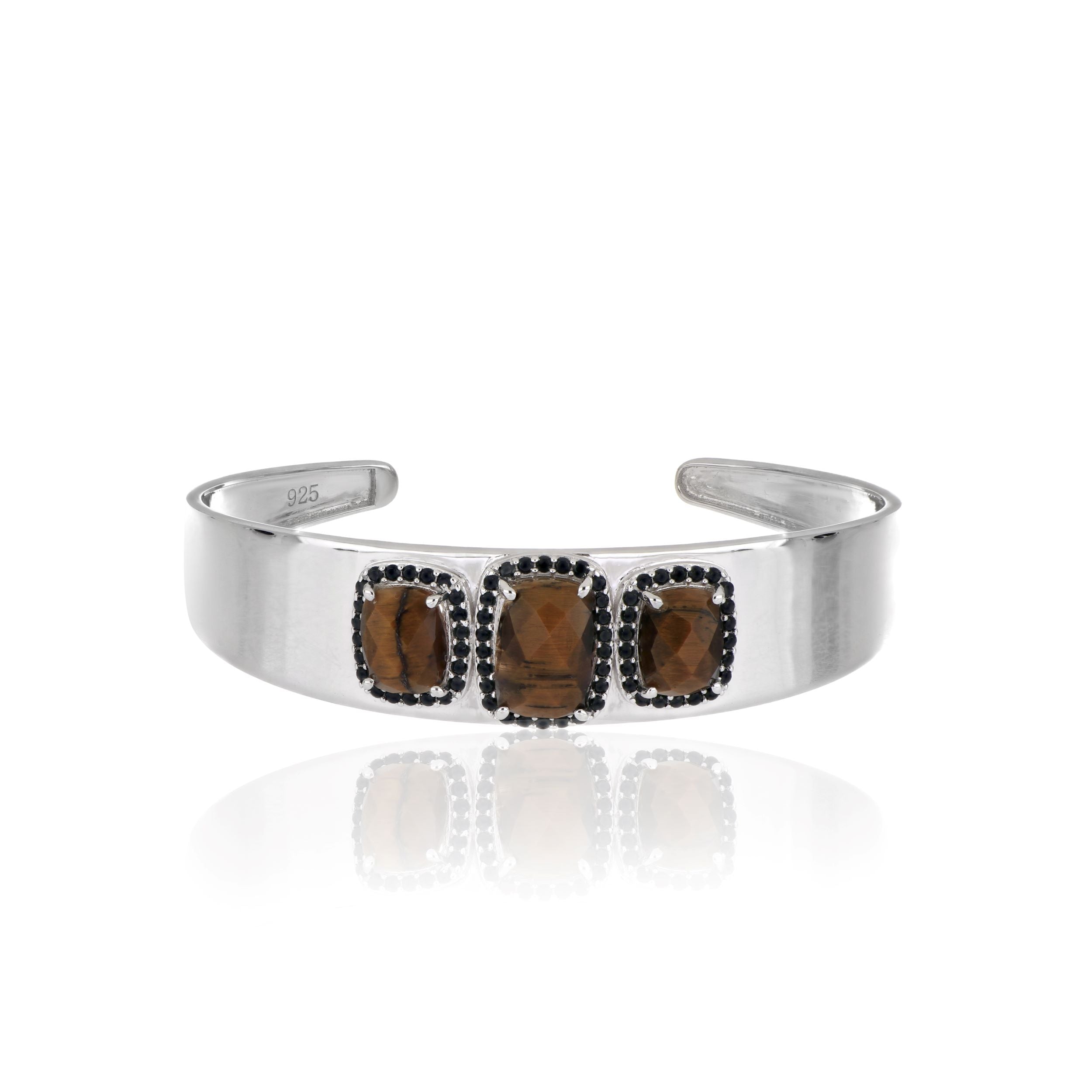 Tiger Eye Cuff Halo Bangle – 925 Sterling Silver | Modern Design
