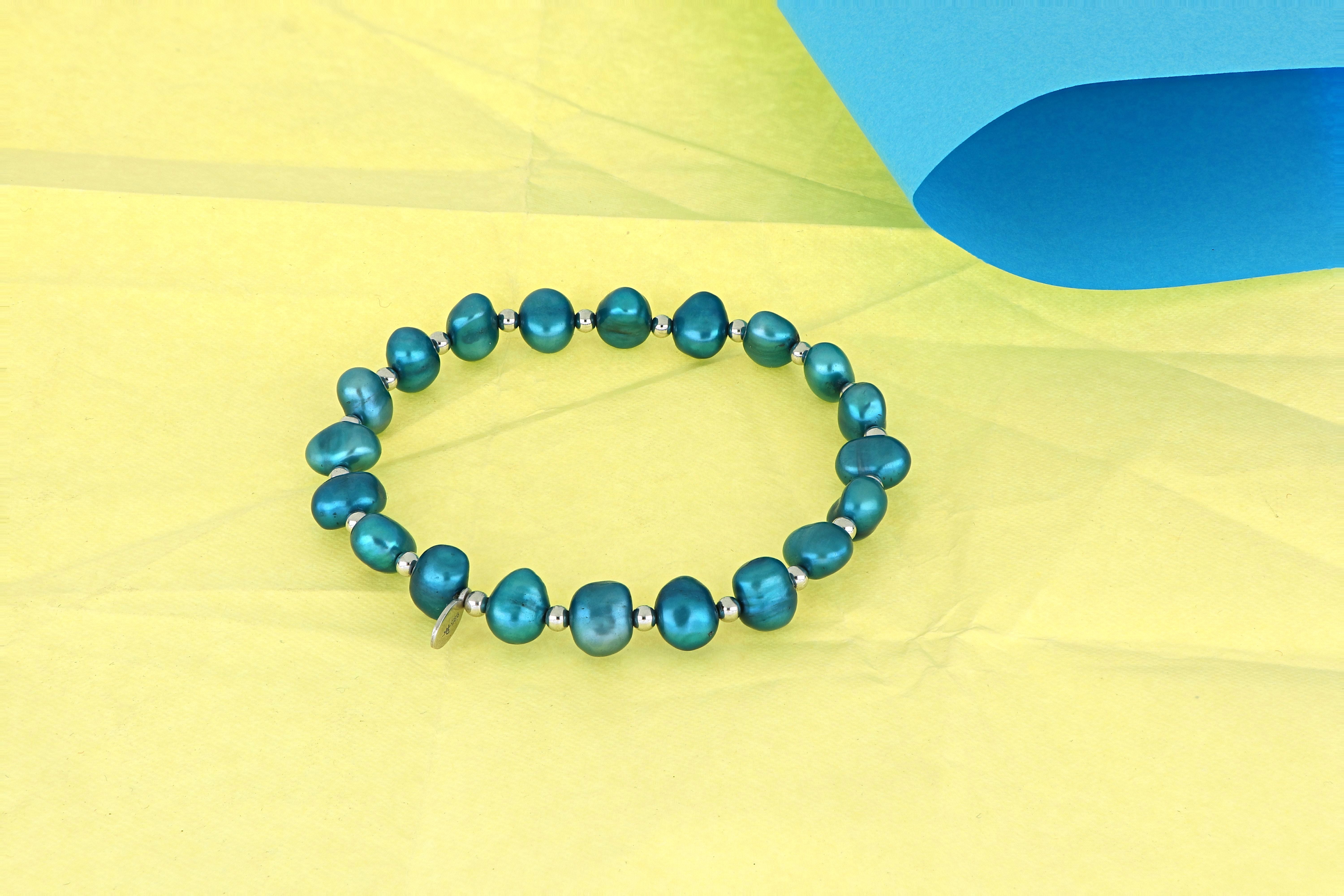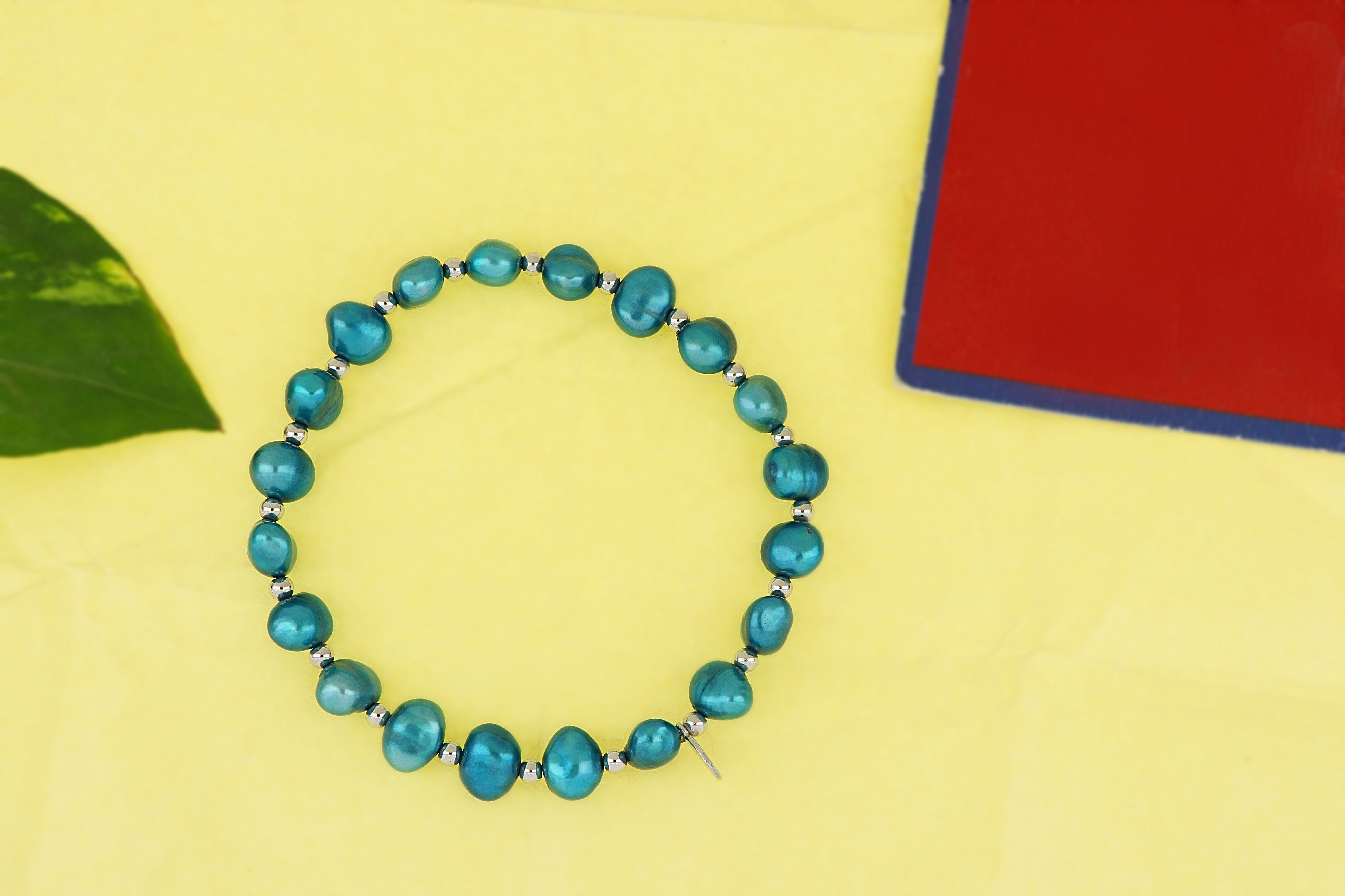 Dyed Shiny Blue Pearl 93.70ctw Bracelet In 925 Sterling Silver