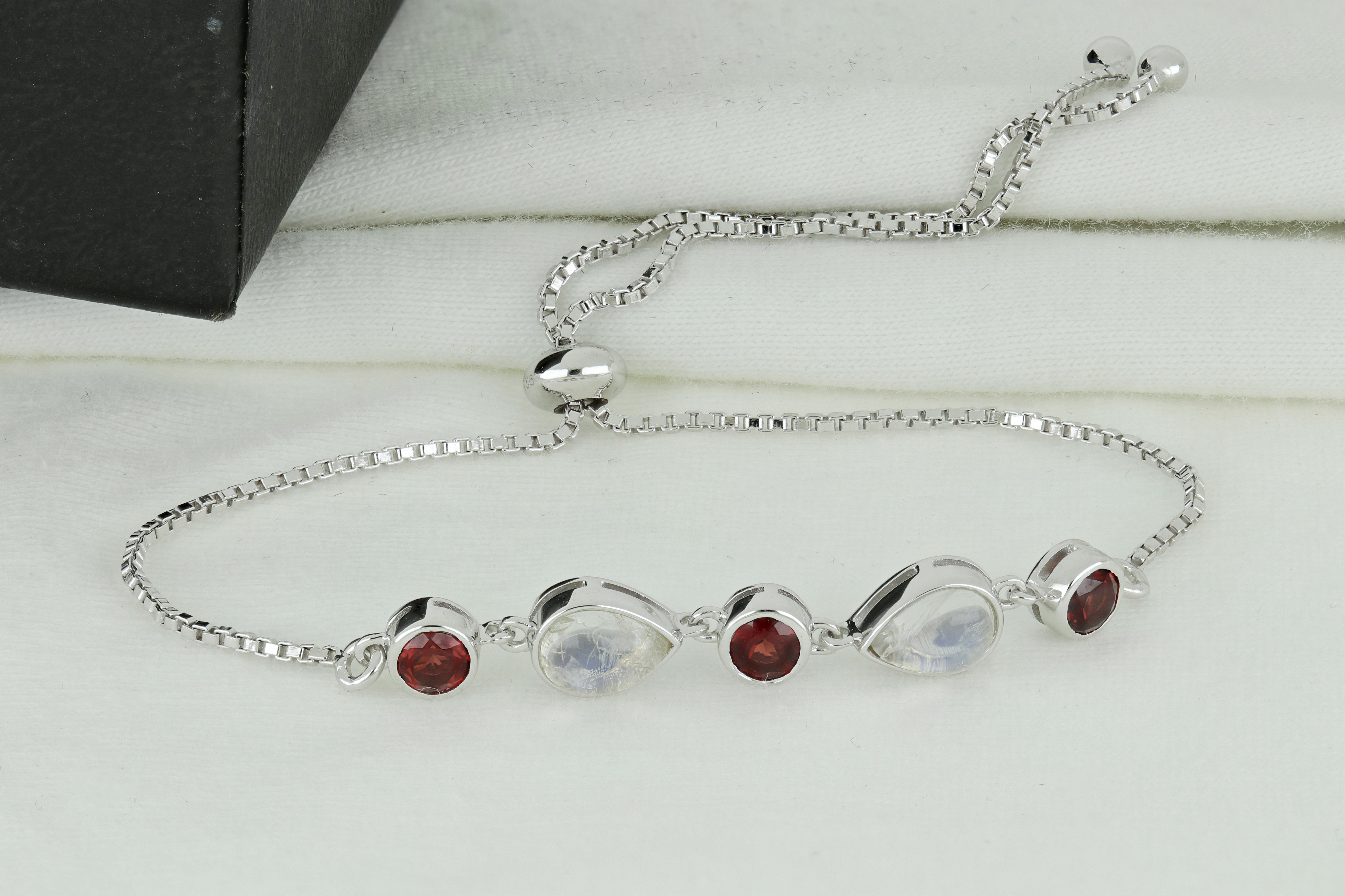 Illuminate your style with the ethereal charm of this Rainbow Moonstone 2.70ctw Bracelet in 925 Sterling Silver. Each moonstone radiates a captivating play of colors—soft blues and iridescent hues that reflect the beauty of the night sky. Expertly set in sleek sterling silver, this bracelet embodies elegance and sophistication. Perfect for both casual and formal wear, it makes a timeless addition to any jewelry collection and a thoughtful gift for someone special who appreciates natural beauty and graceful craftsmanship.