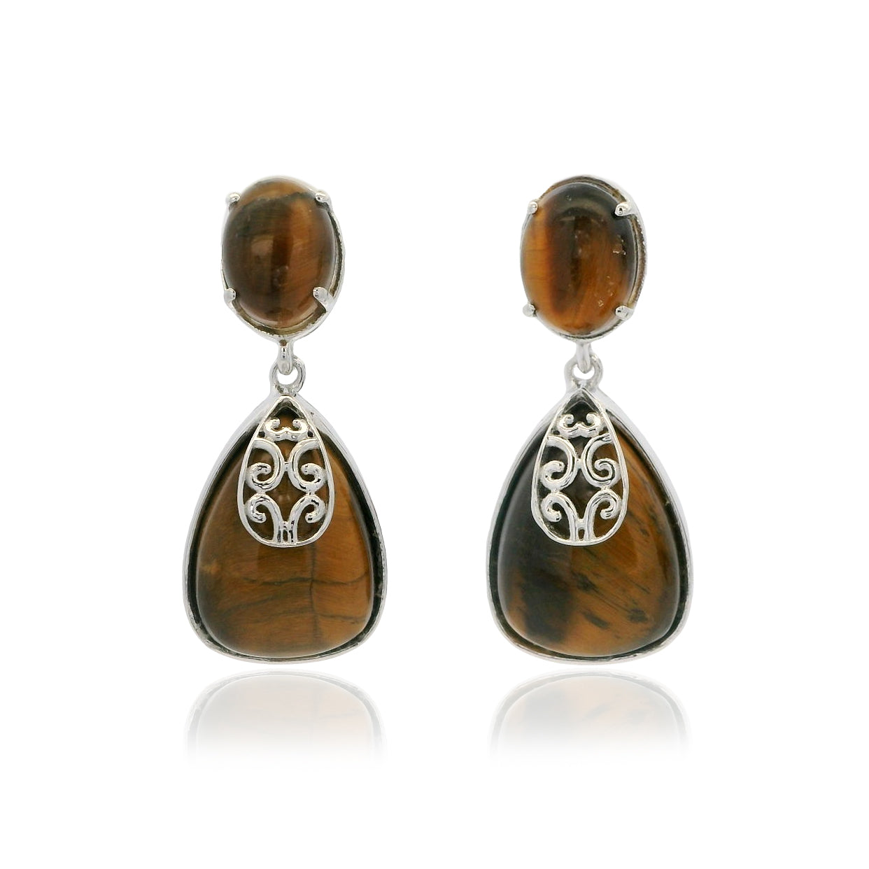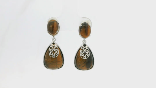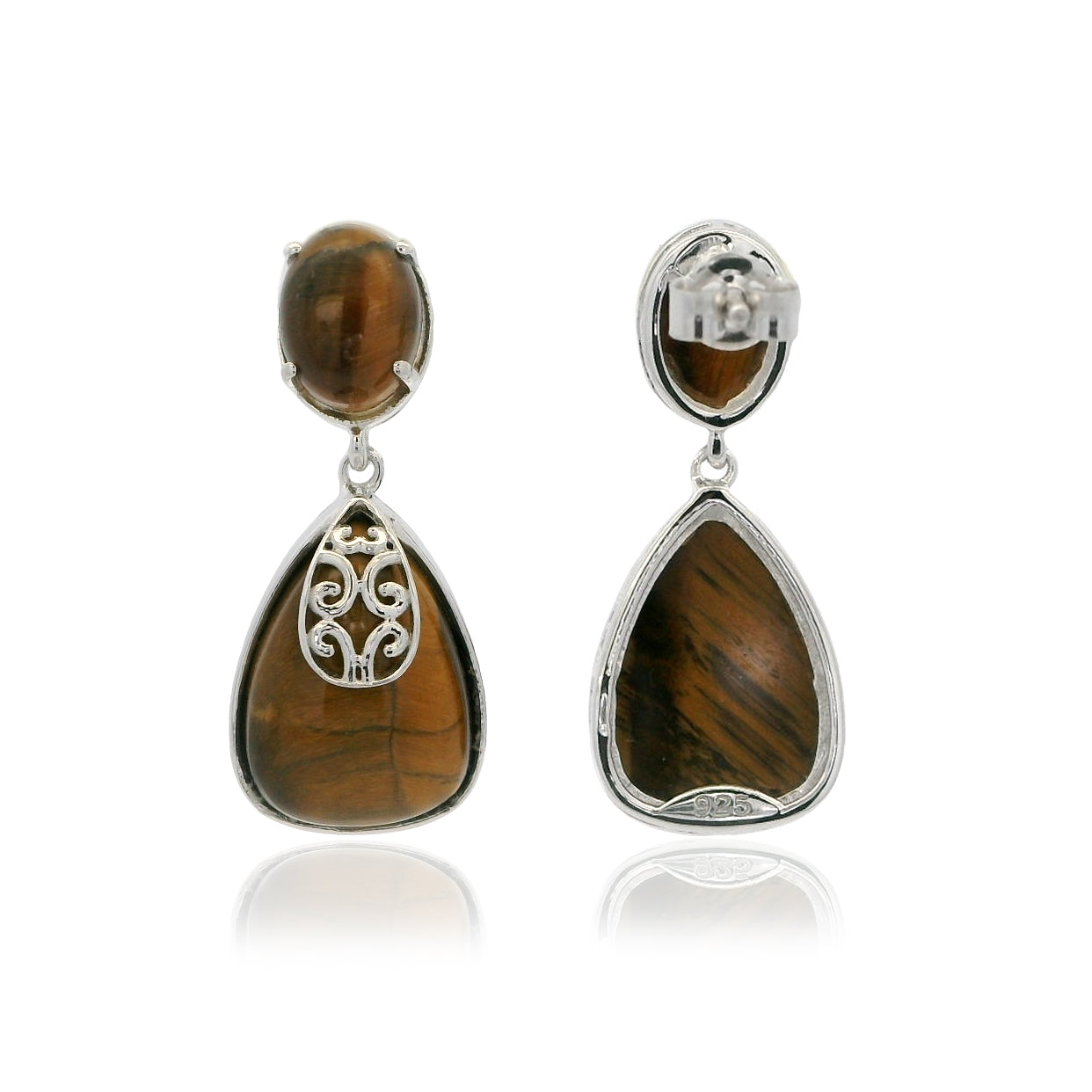 Elegant Tiger Eye 14.30ctw Push Post Earrings In 925 Sterling Silver