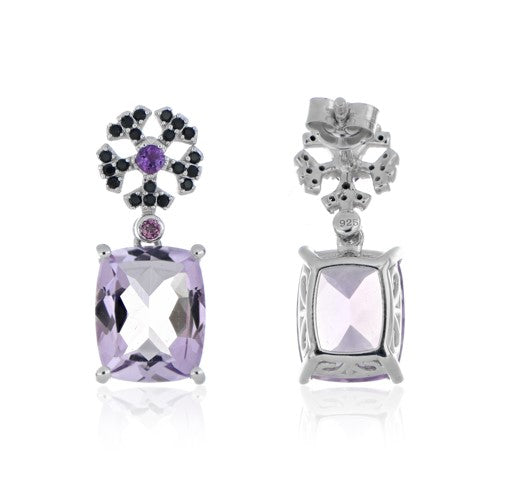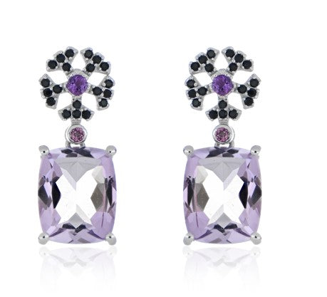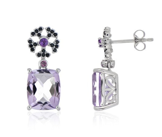 Rose De France With Multi Stone 5.90ctw Push Post Earrings In 925 Sterling Silver