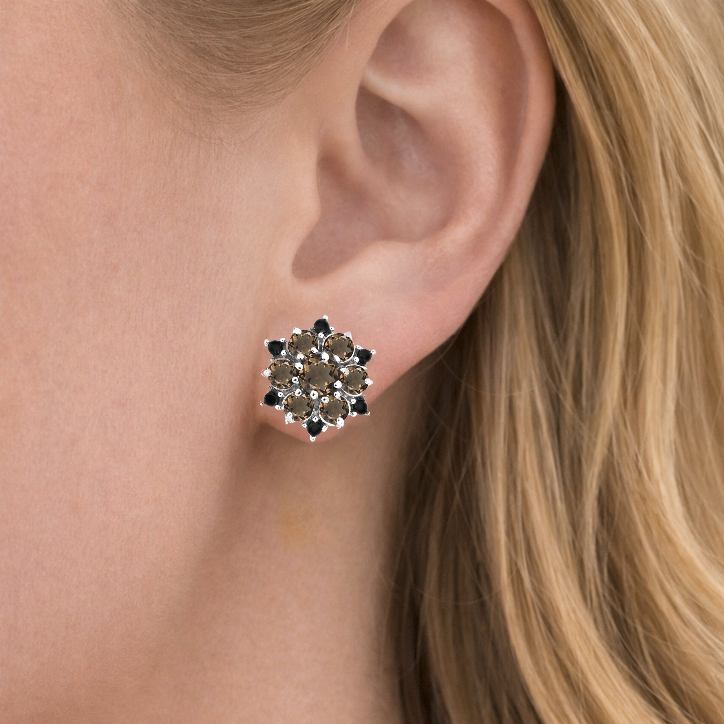 Lotus Flower Stud Earrings – 925 Sterling Silver | Smoky Quartz Jewelry
