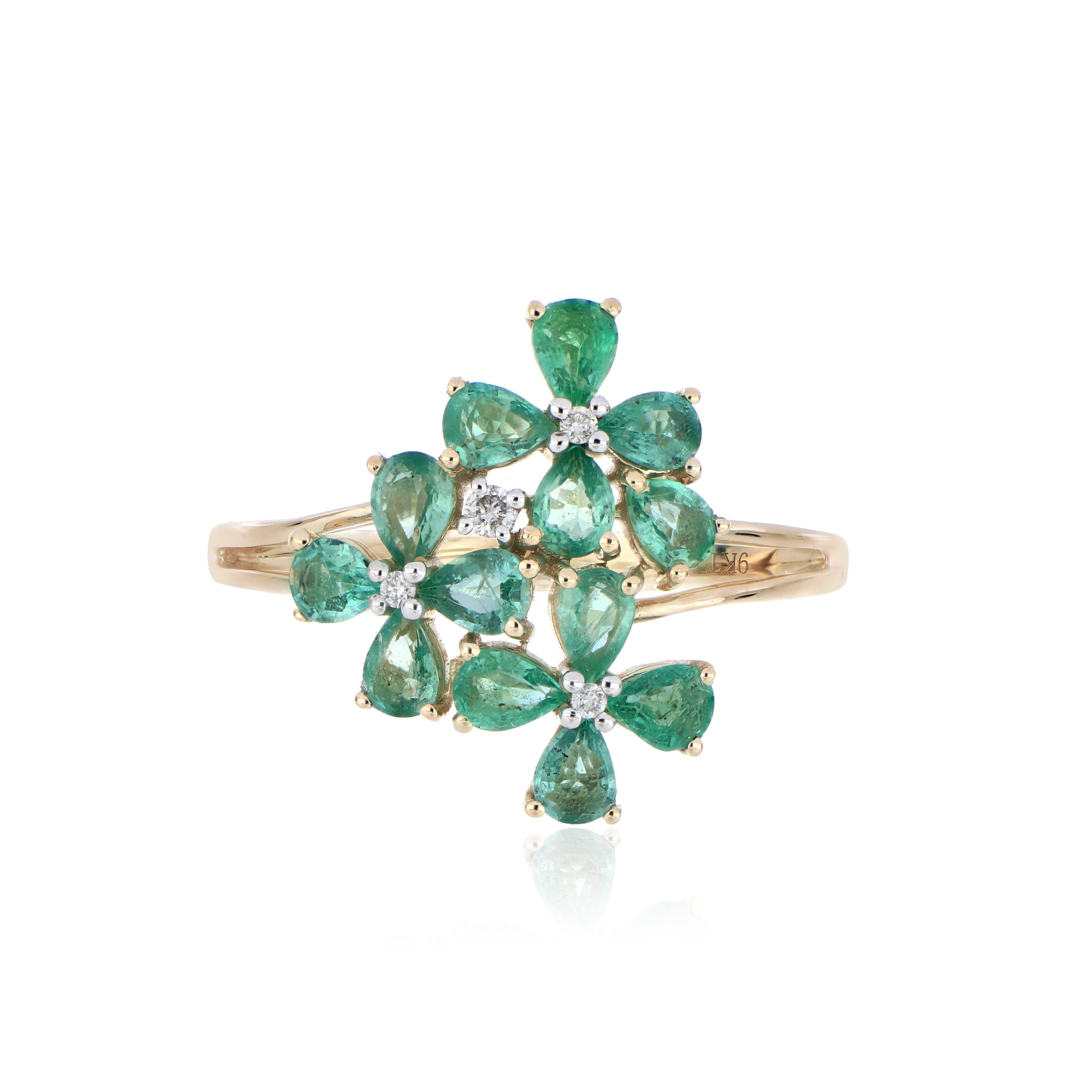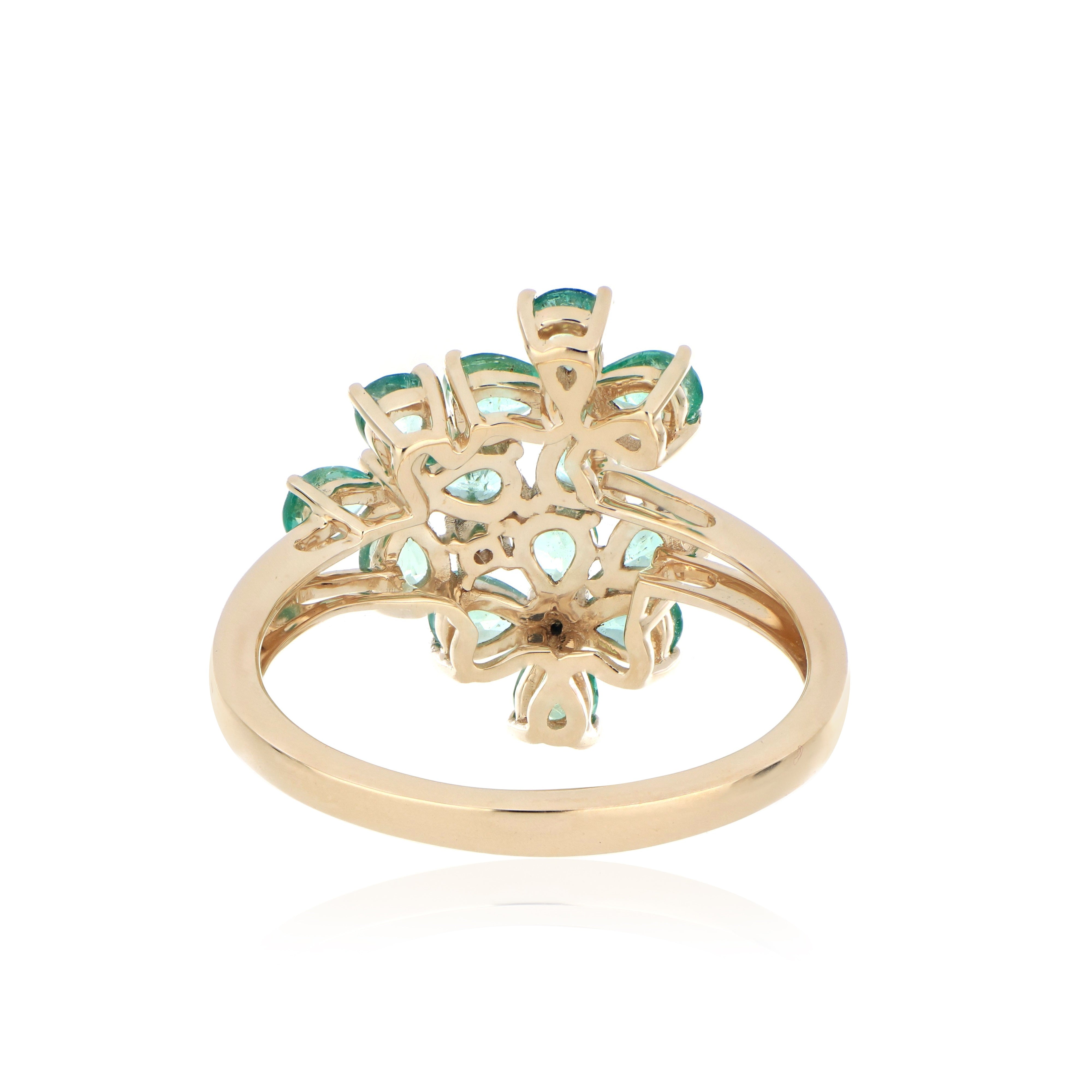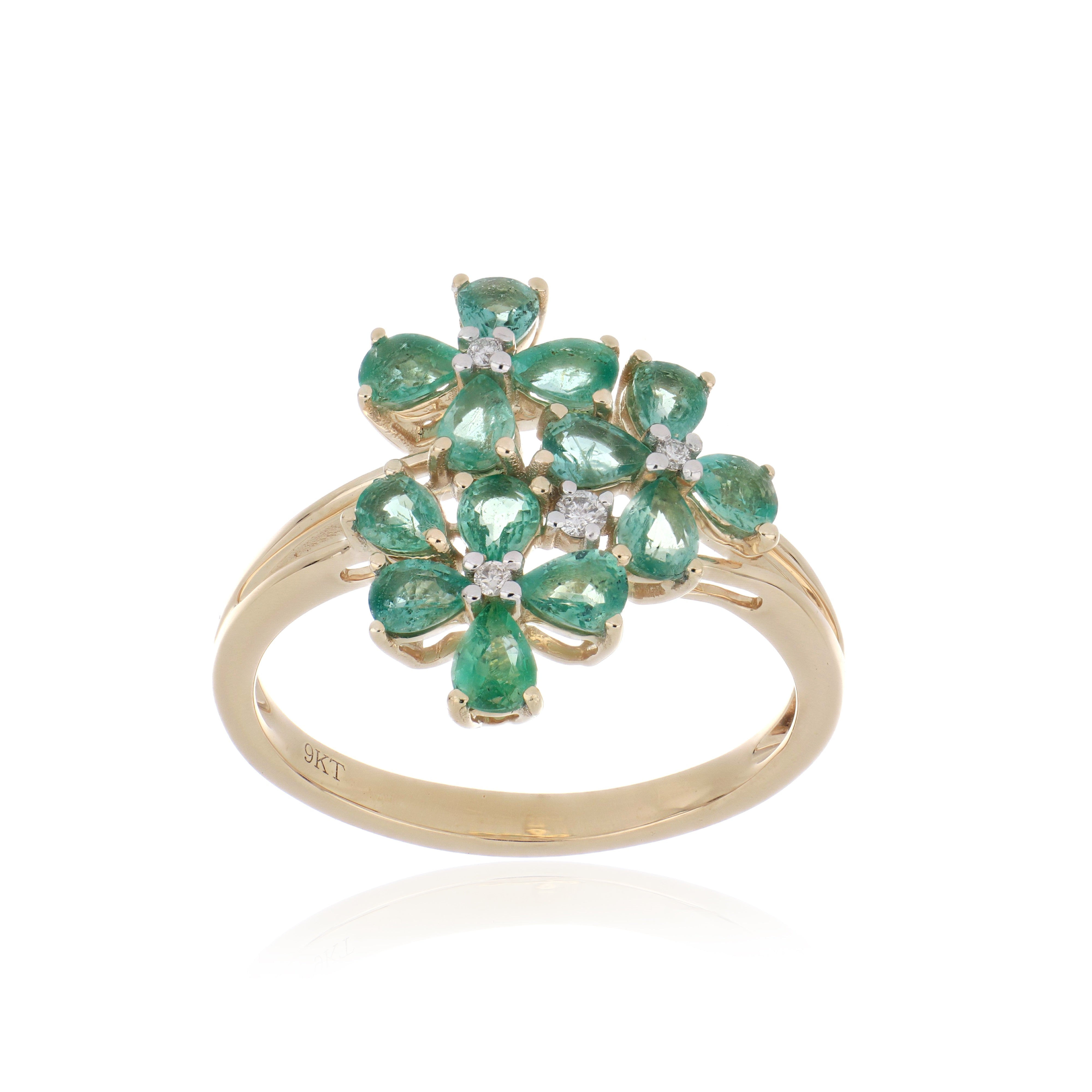 Emerald Flower Cluster Ring – 9KT Yellow Gold | Luxury Jewelry