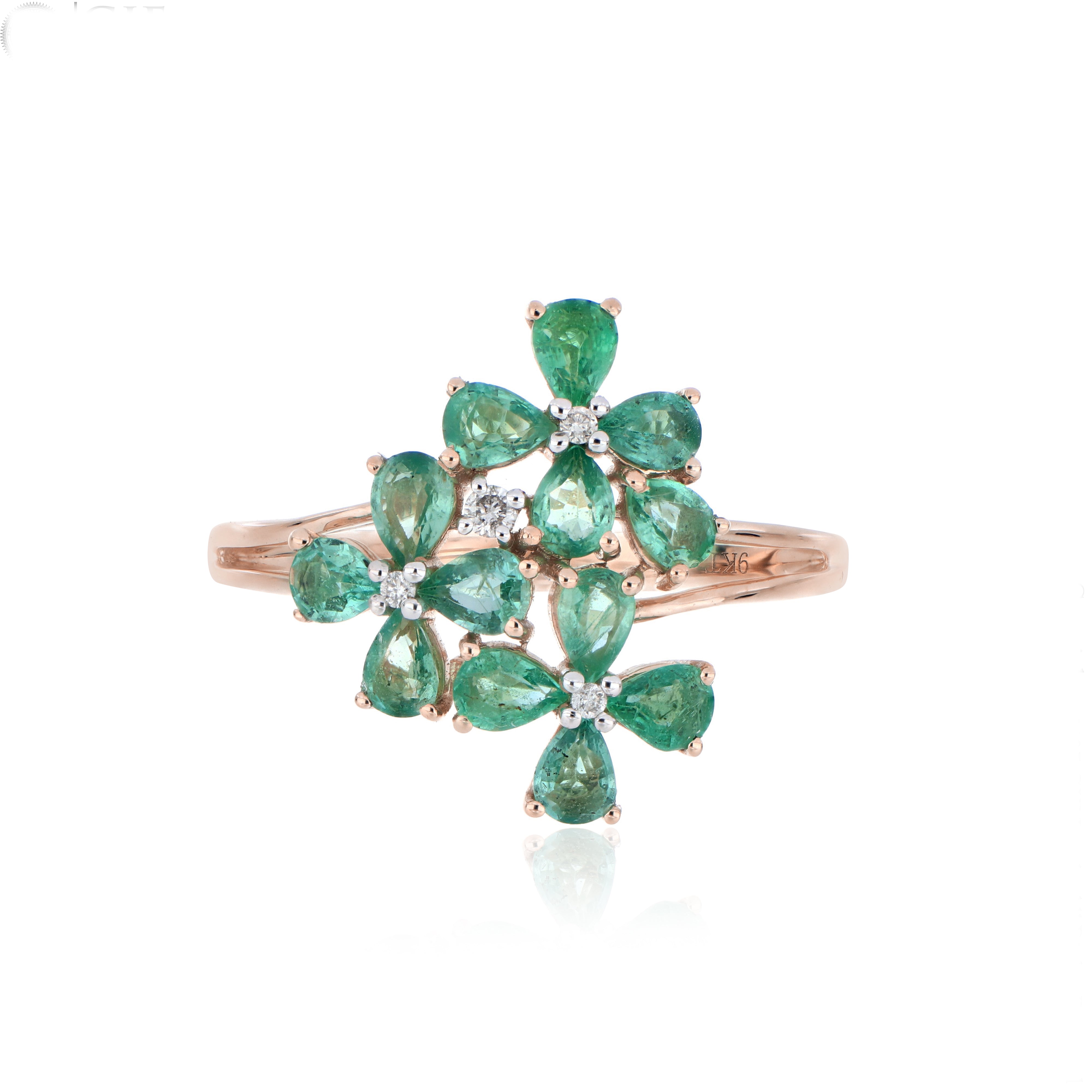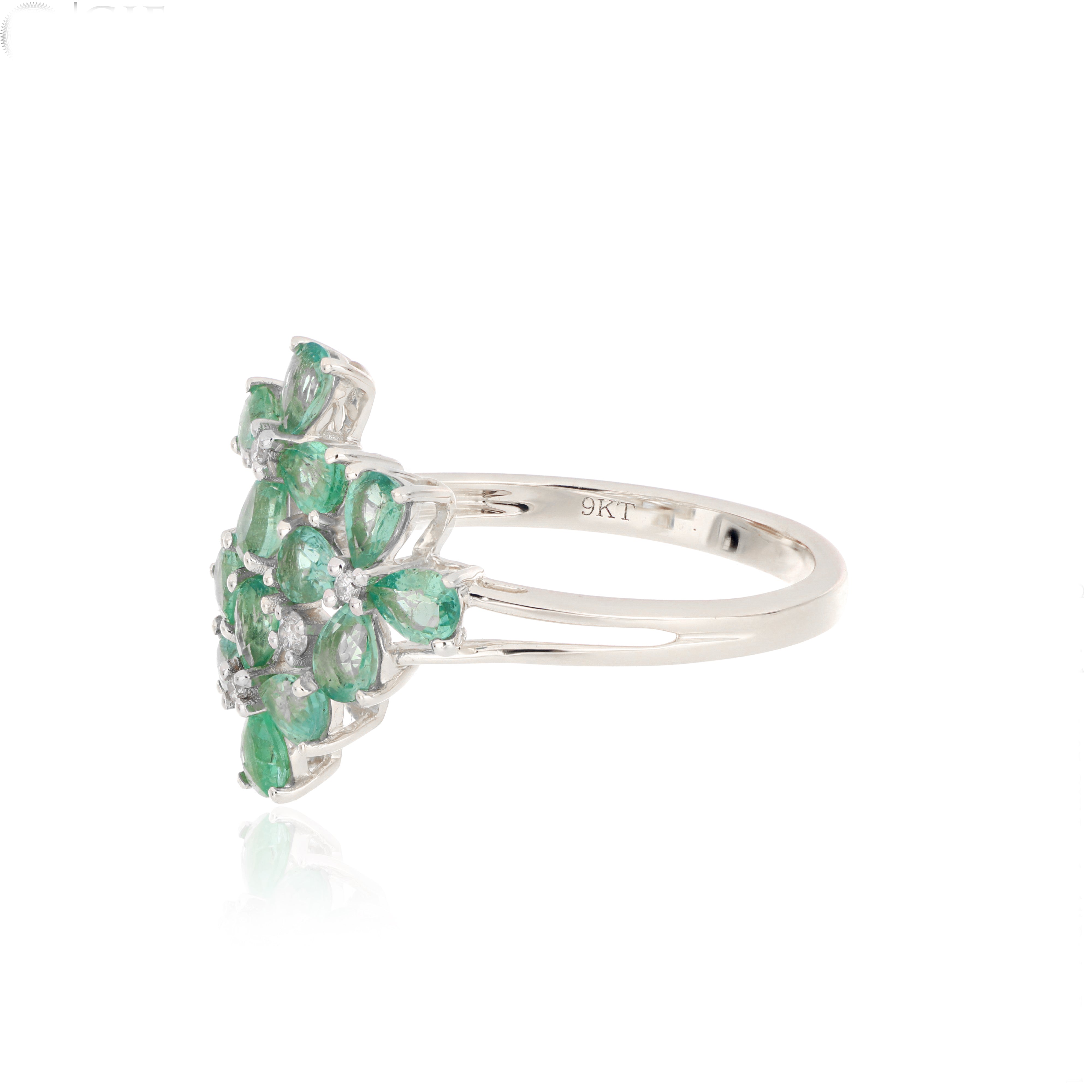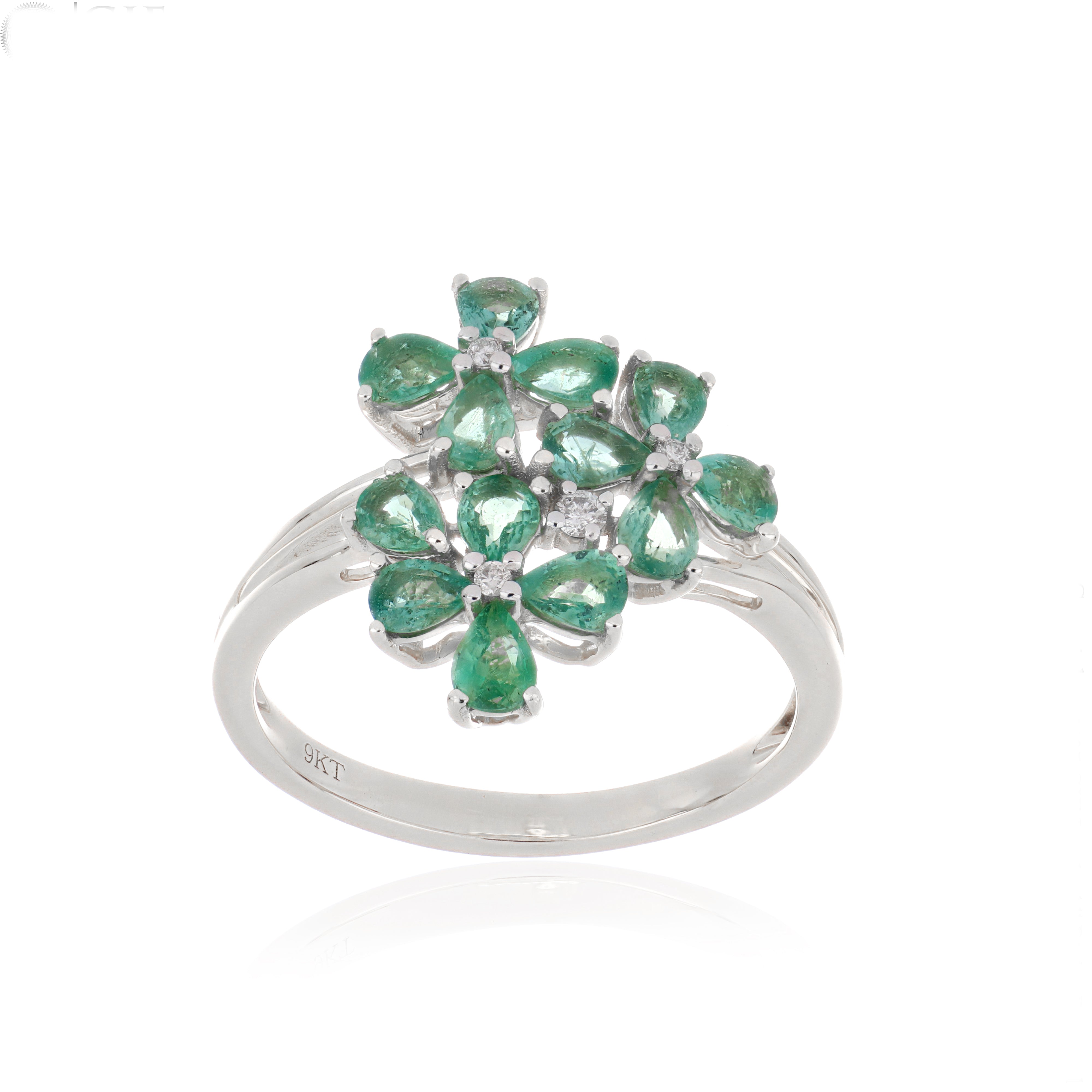 Emerald Flower Cluster Ring – 9KT Yellow Gold | Luxury Jewelry