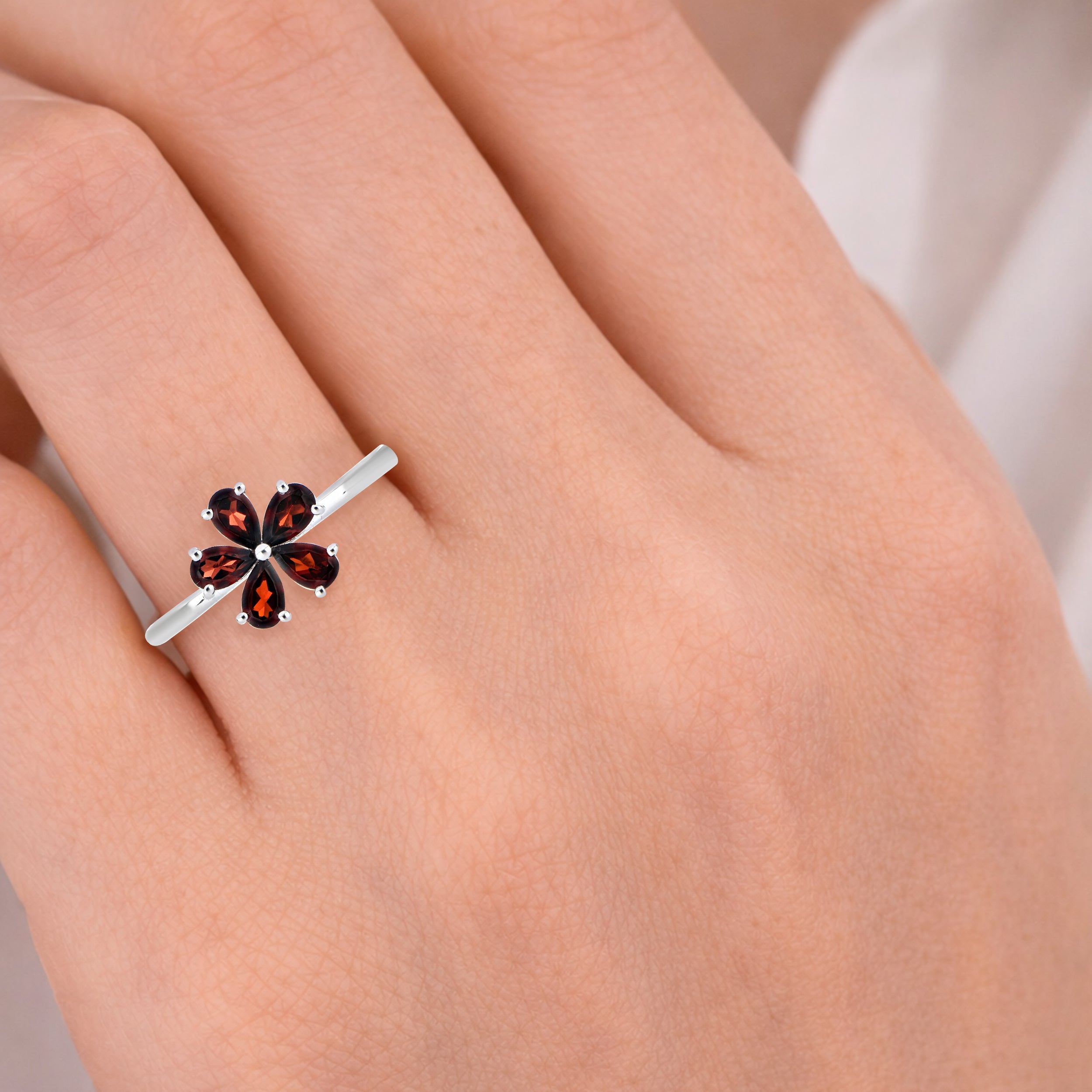 Red Garnet Flower Promise Ring – 925 Sterling Silver | Cluster Ring