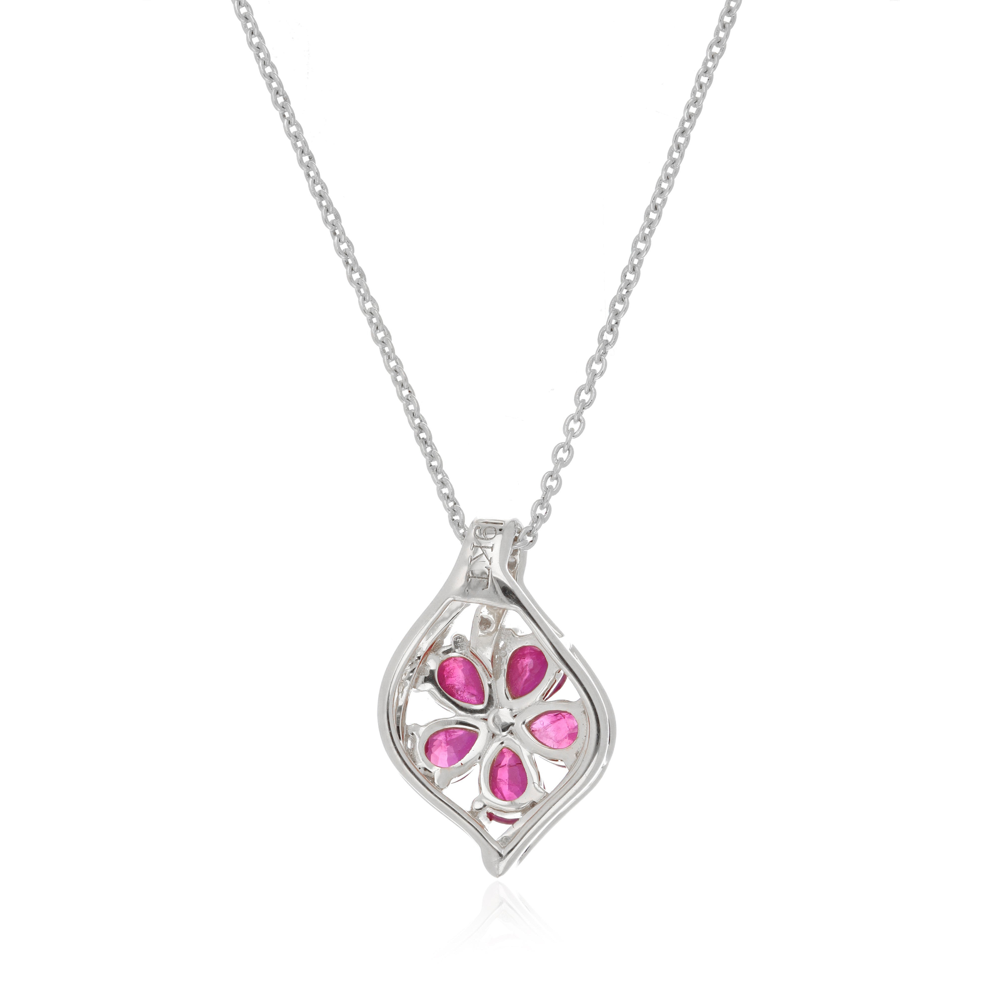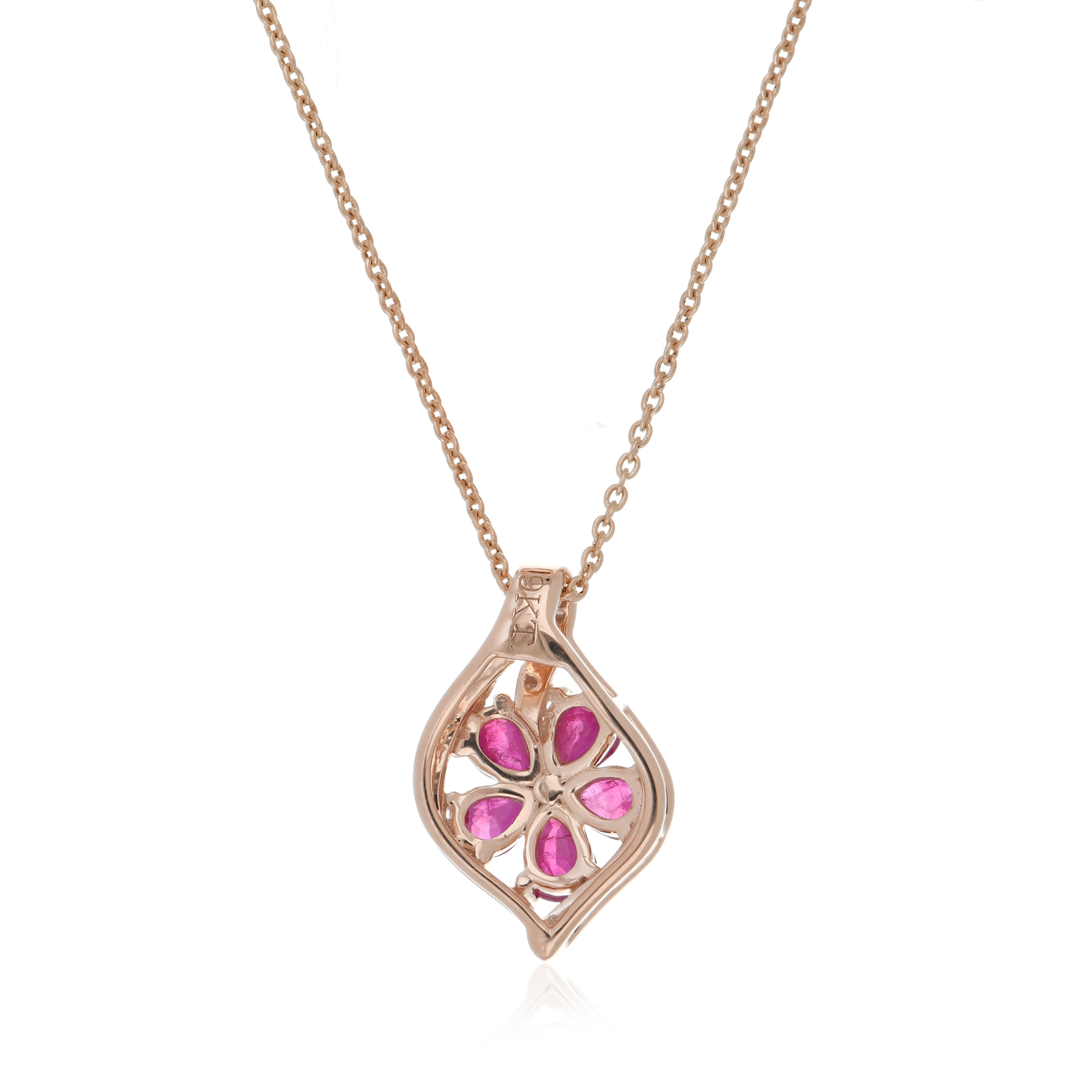 African Ruby With Diamond EF-VS 1.00ctw Pendant With Chain In 9KT Yellow Gold