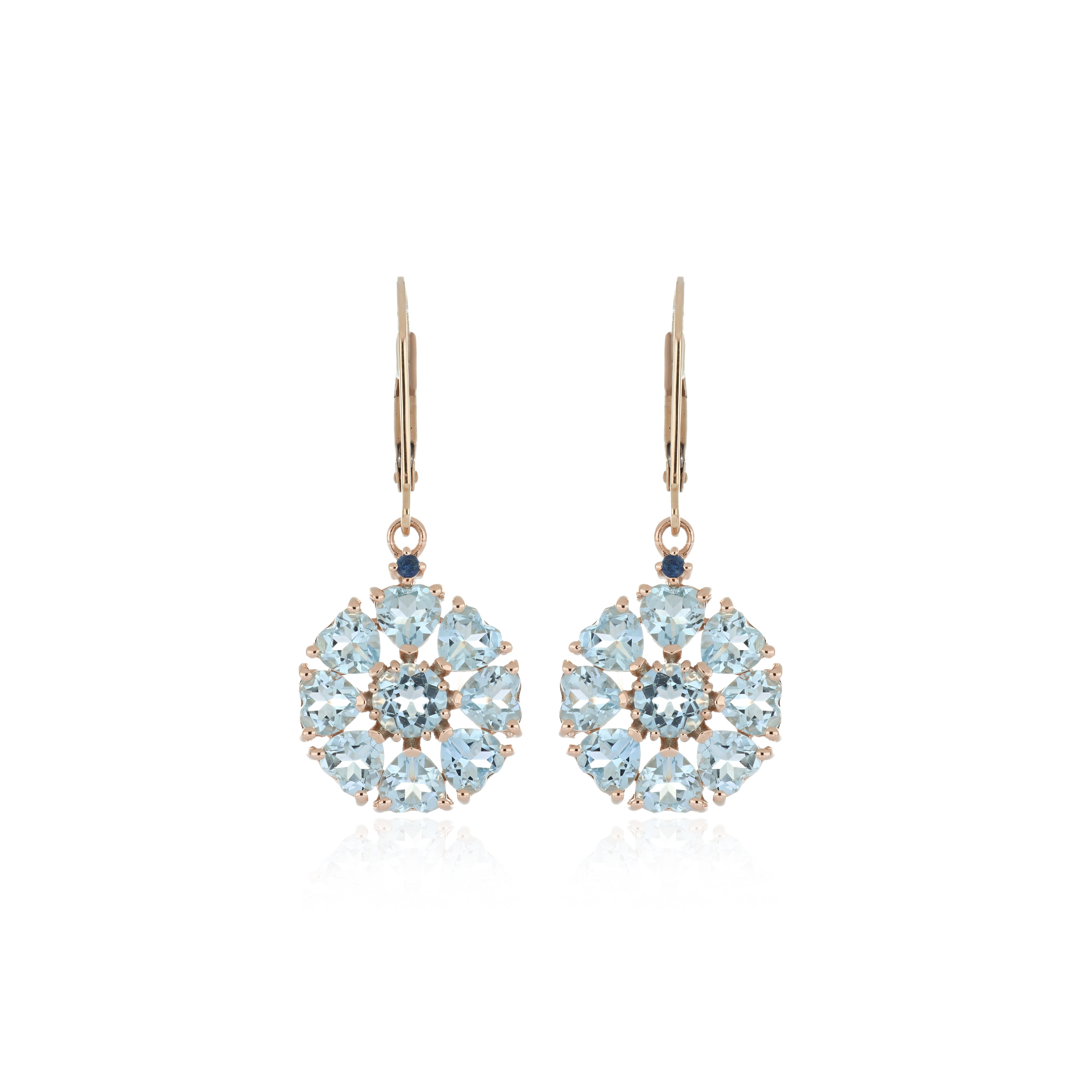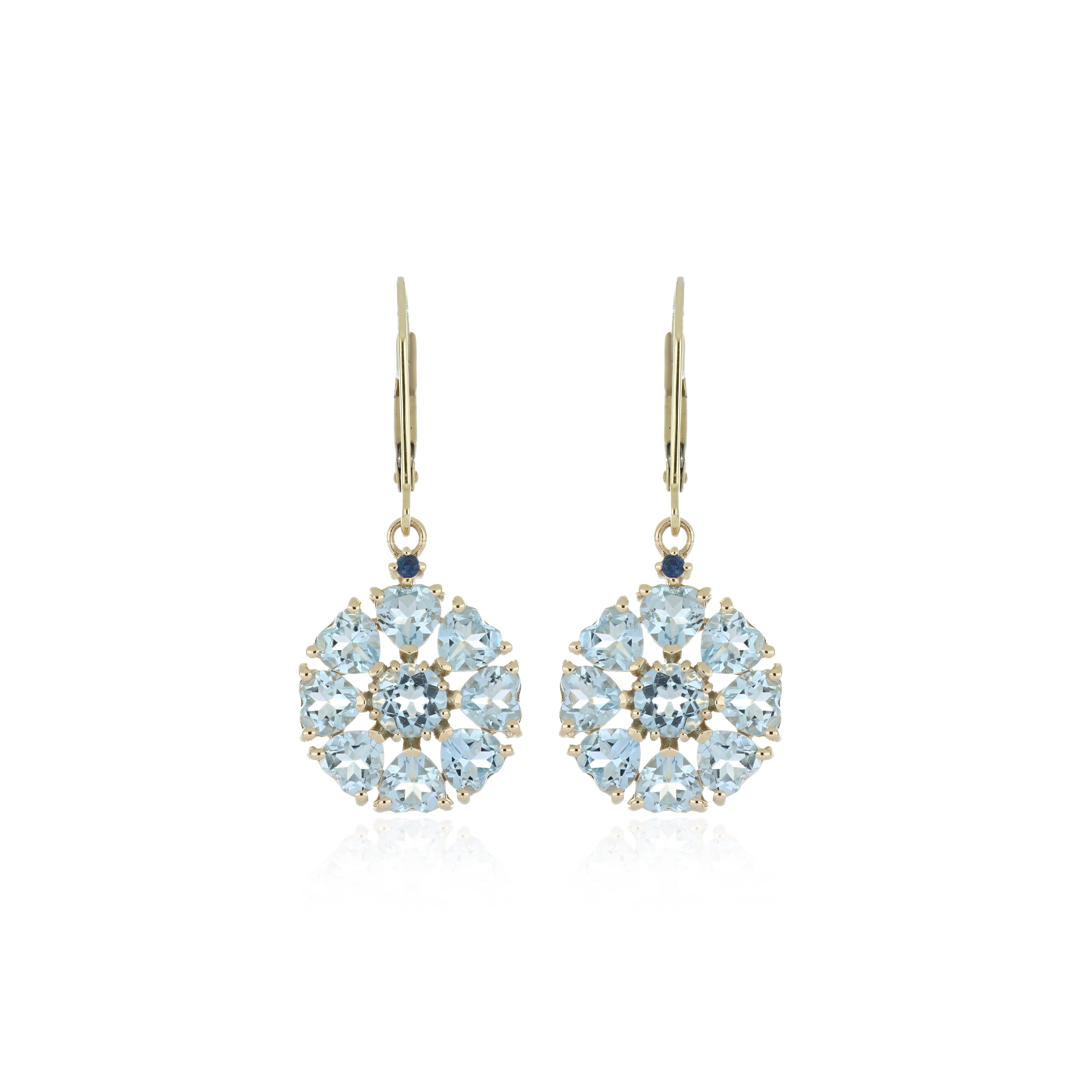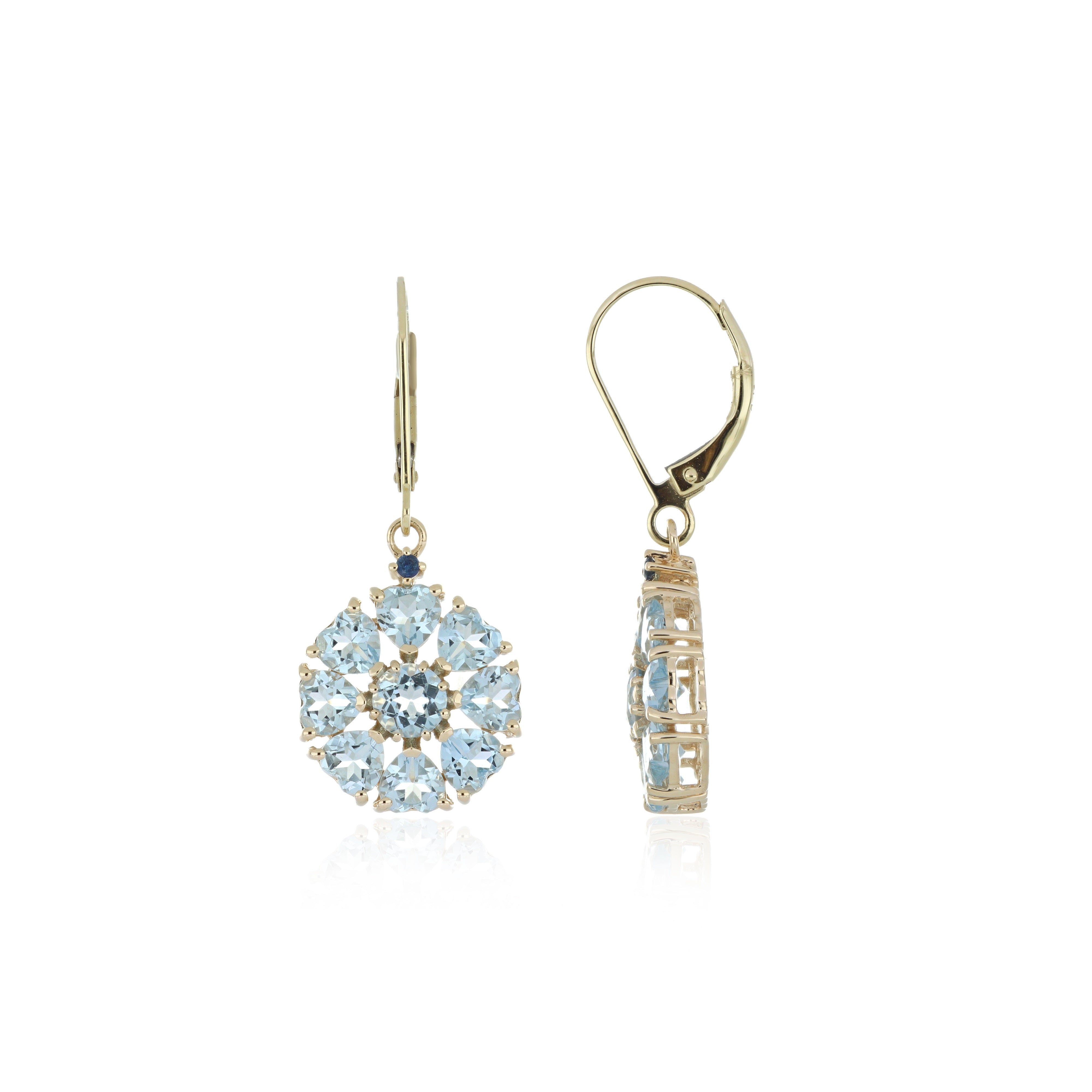 Aquamarine With Sapphire 4.60ctw Lever Back Earrings In 9KT Yellow Gold