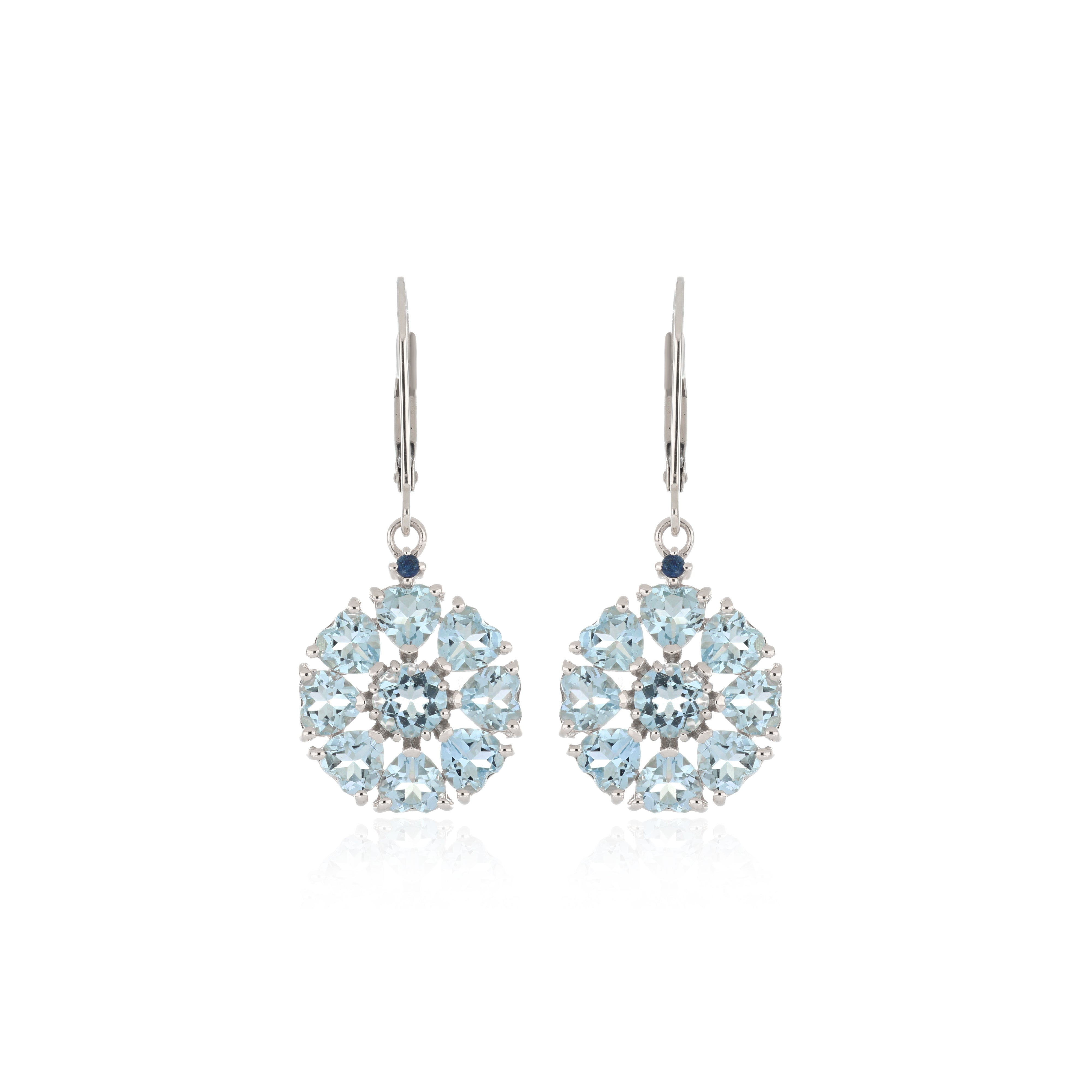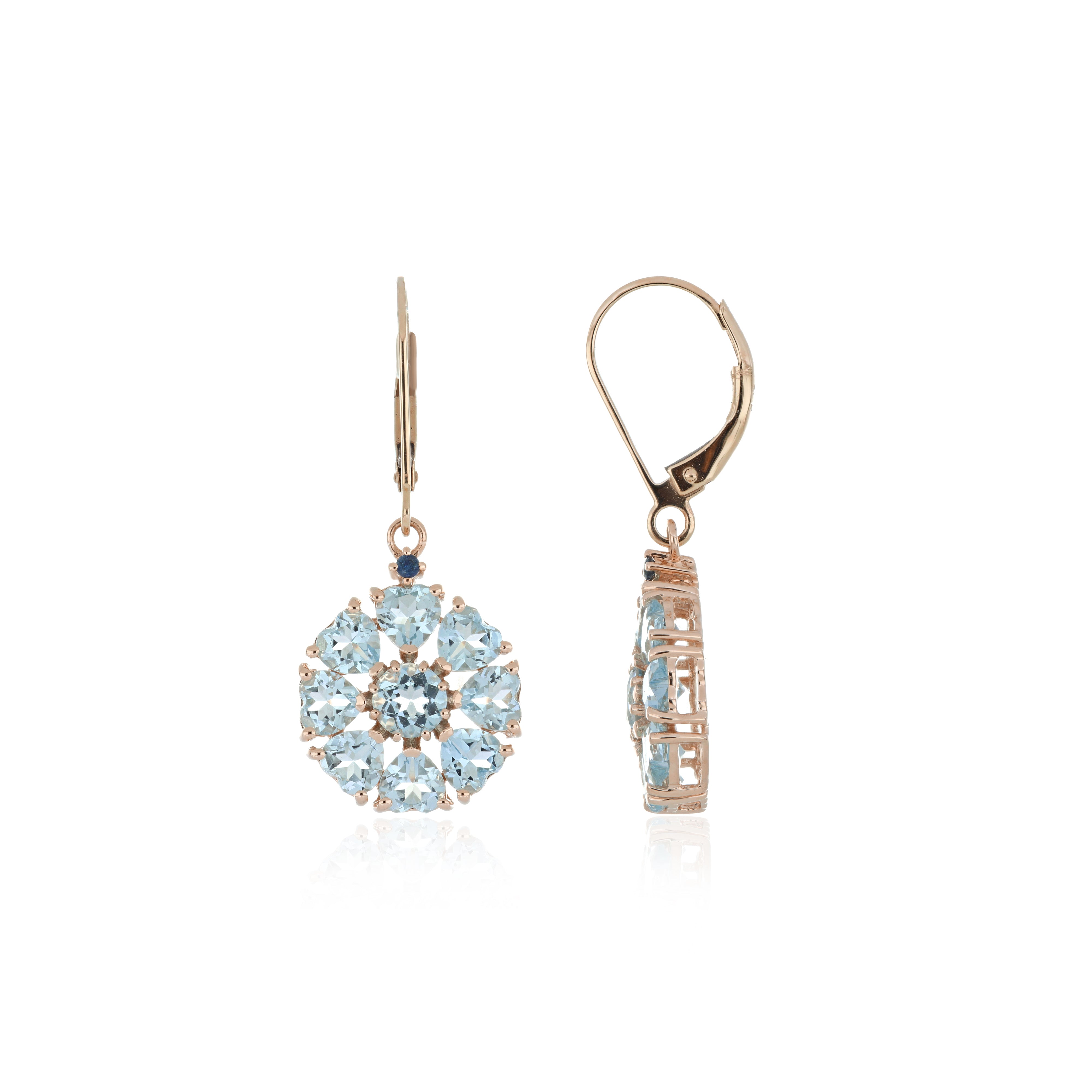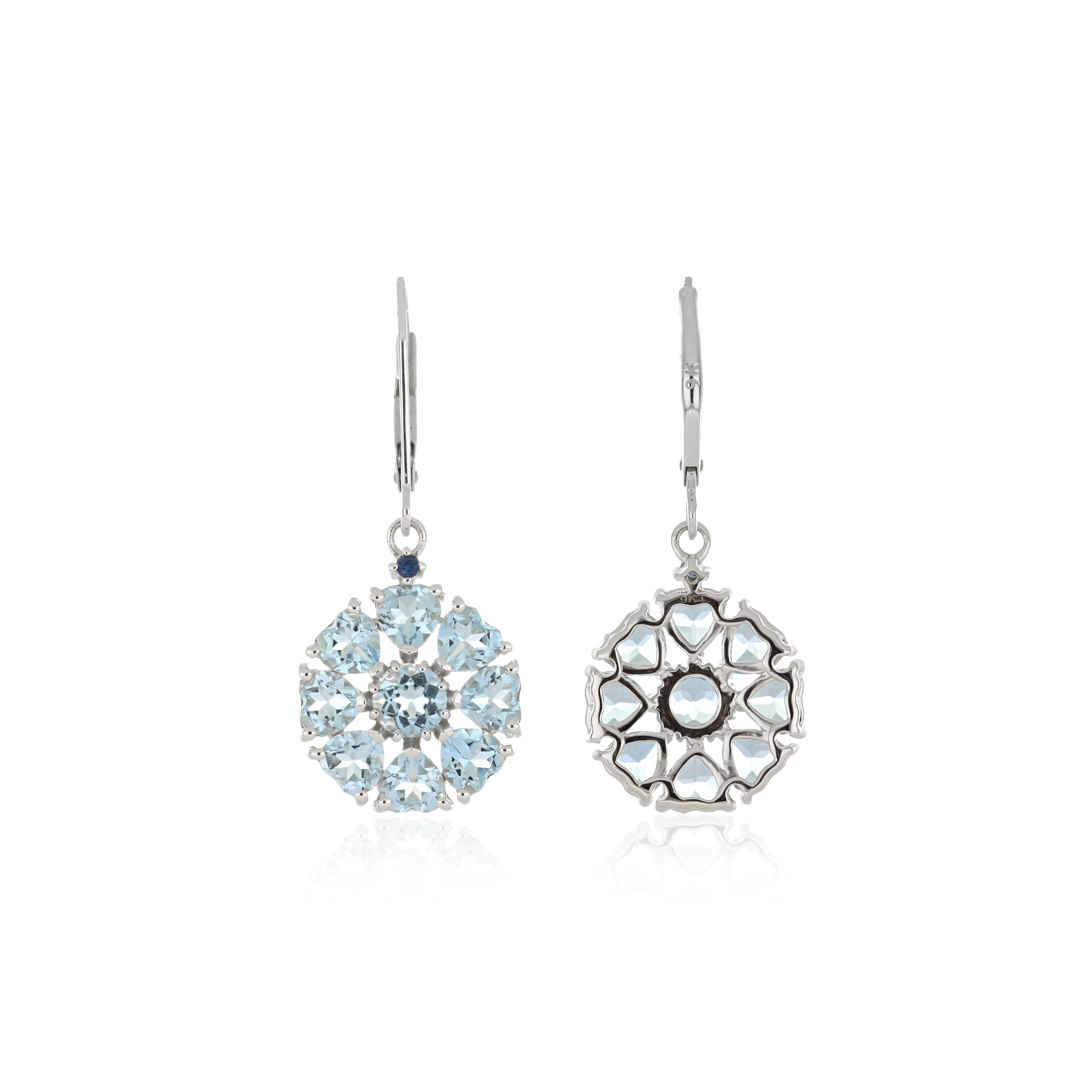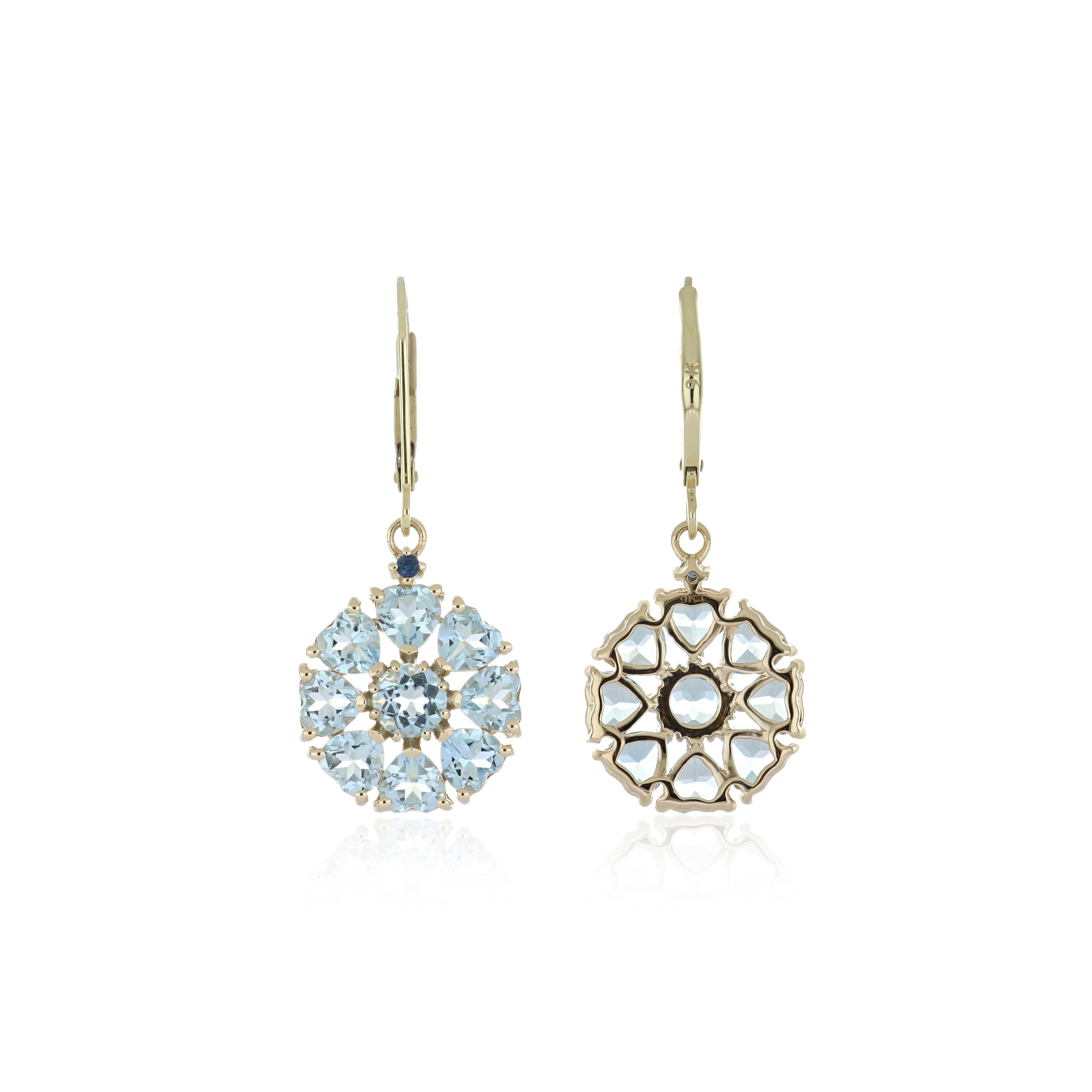 Add a touch of serene elegance to your look with these Aquamarine With Blue Sapphire 4.60ctw Lever Back Earrings, crafted in 9KT Yellow Gold. The calm glow of aquamarine paired with the rich blue of sapphires creates a refined contrast, perfect for both everyday sophistication and special occasions.