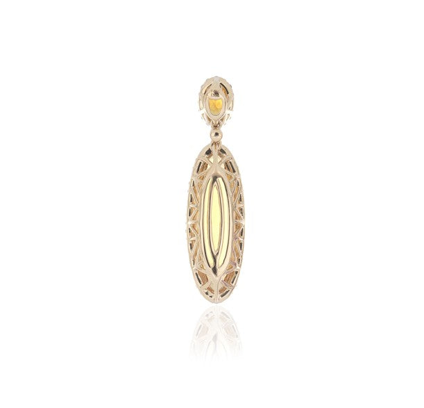 Bright and elegant, this pendant highlights the radiant beauty of a 4.10 carat Citrine, admired for its golden glow and timeless charm. The vibrant gemstone is accented with EF-VS quality diamonds, adding brilliance and sophistication to the design.