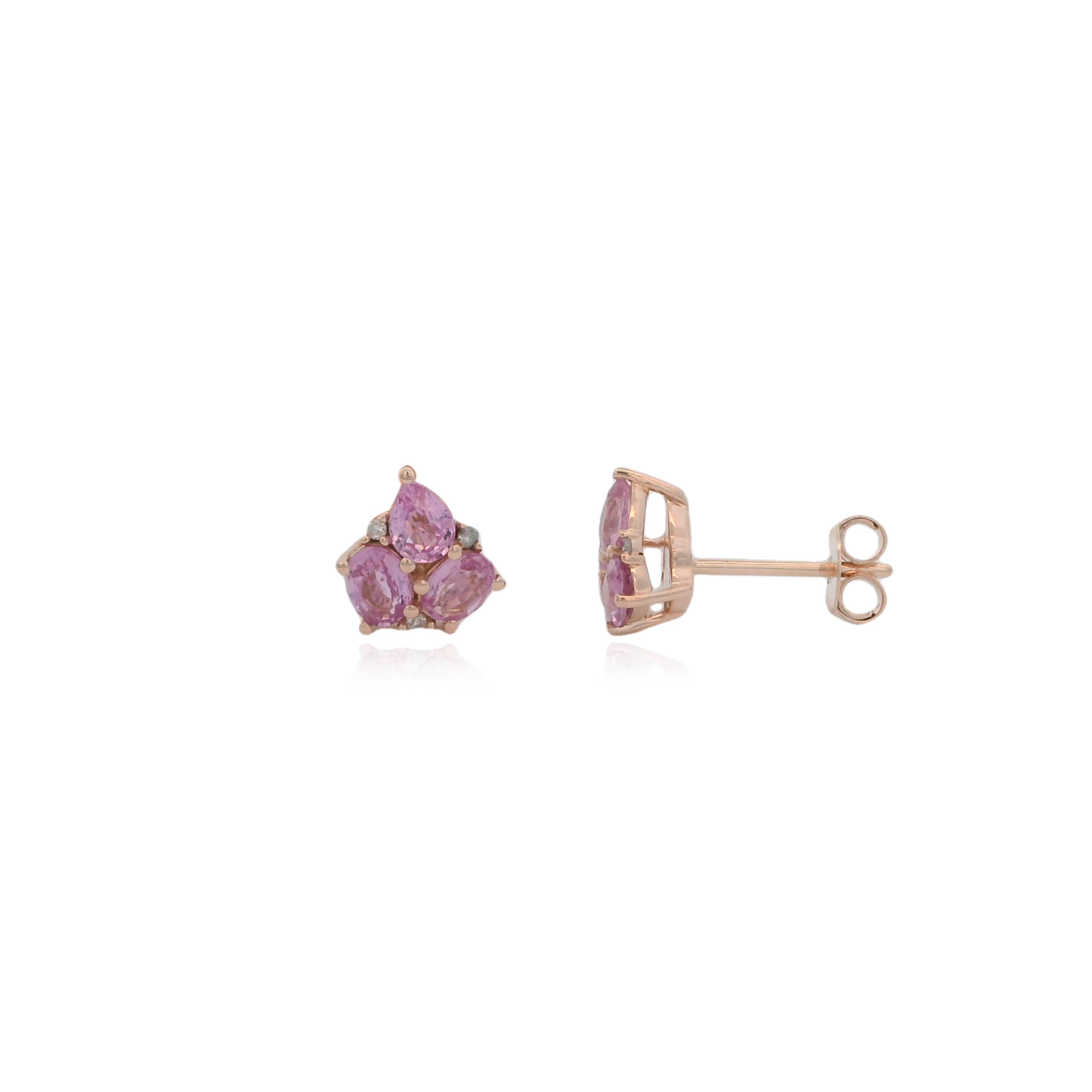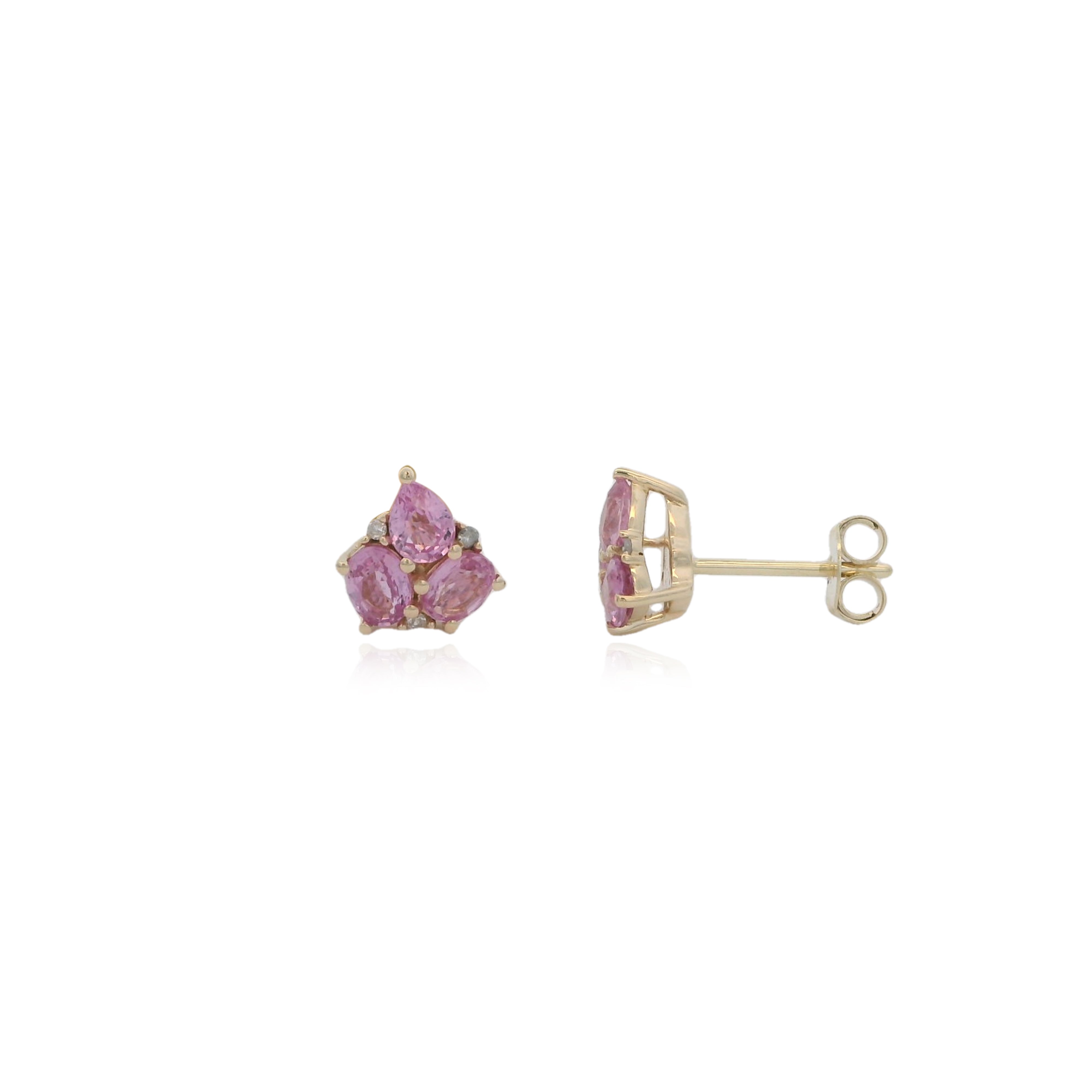 Pink Sapphire With Diamond EF-VS Push Post Earrings In 9KT Yellow Gold
