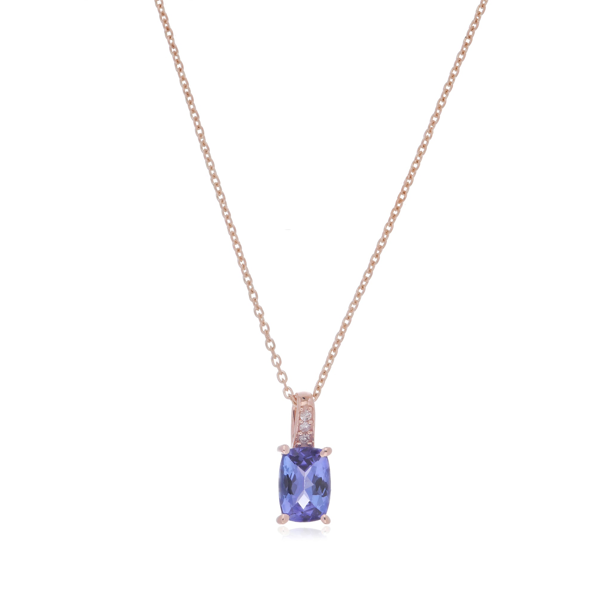 Tanzanite With Diamond EF-VS 1.00ctw Pendant With Chain In 9KT Rose Gold