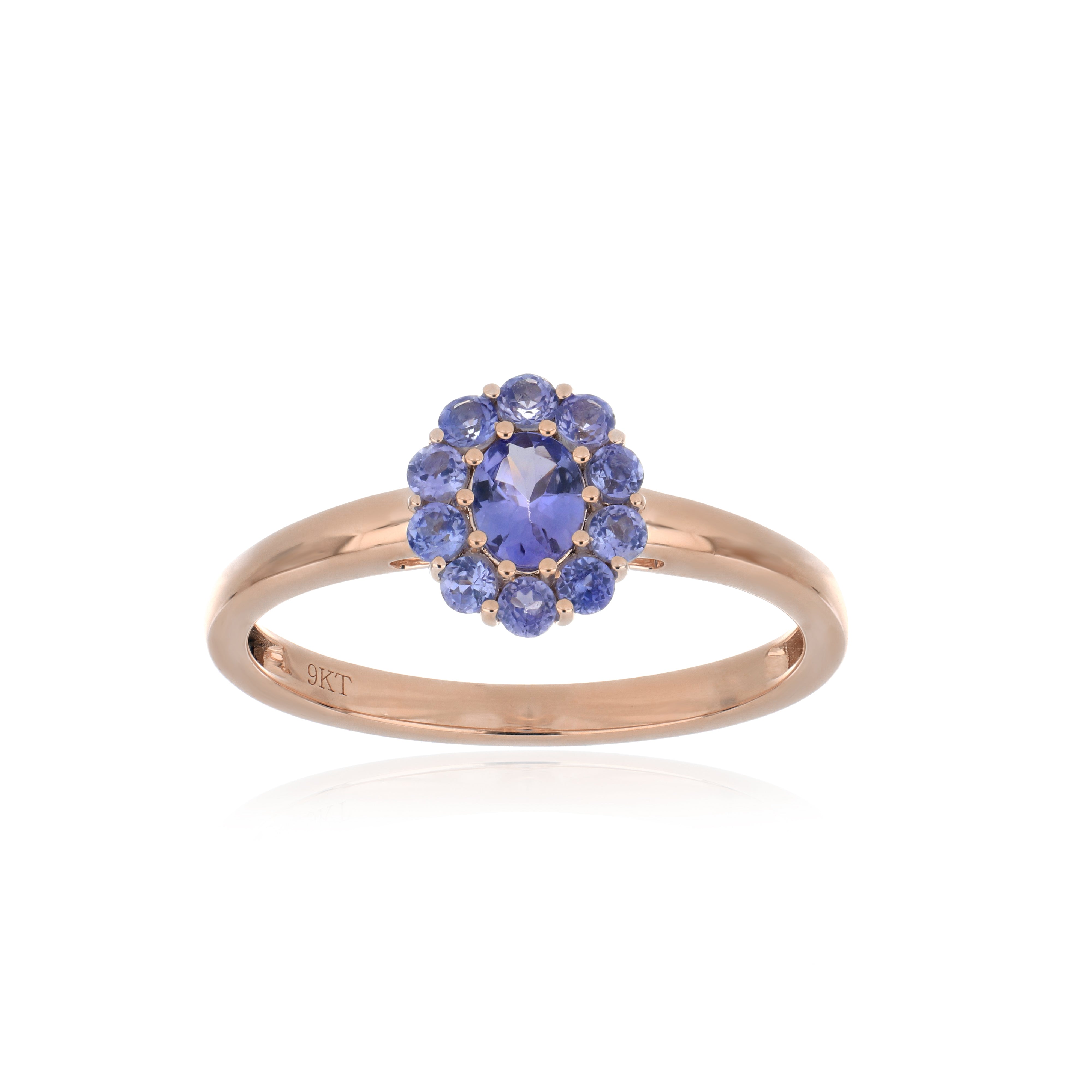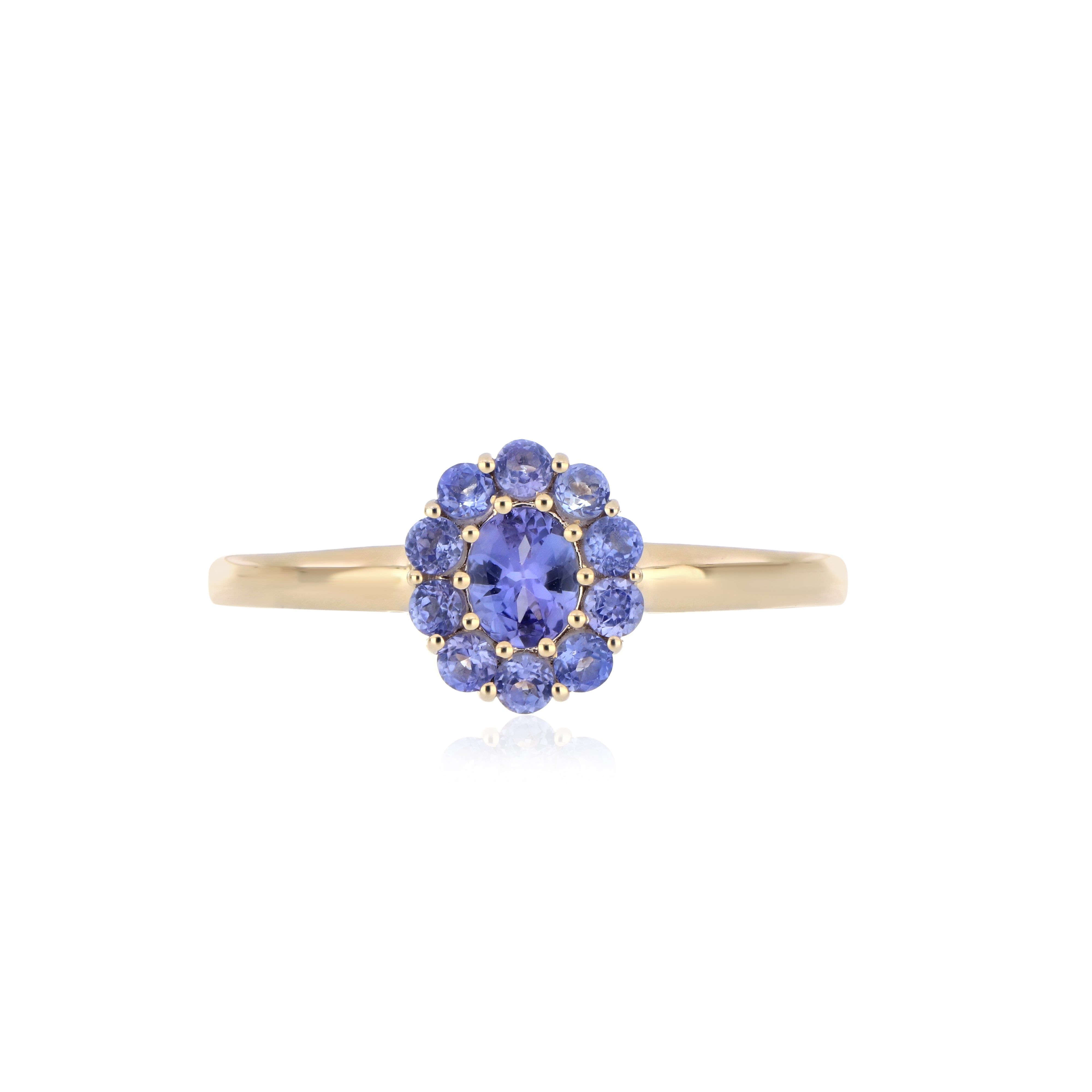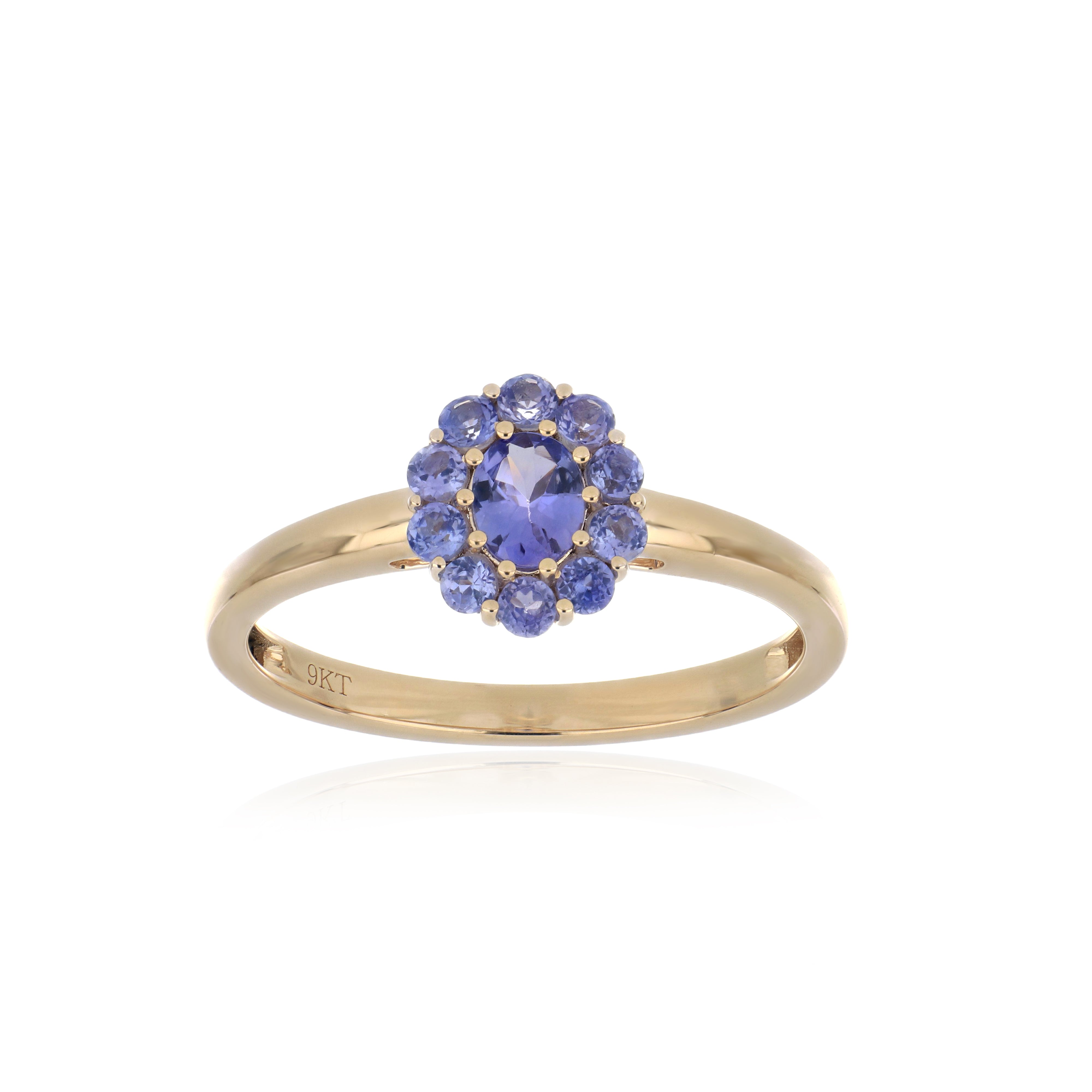 Tanzanite Halo Flower Ring – 9KT Yellow Gold | Fine Jewelry