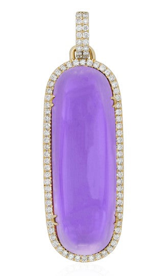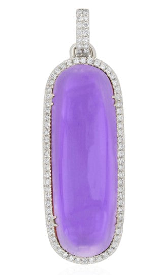 Bold and luxurious, this pendant showcases a stunning 14.10 carat Amethyst, admired for its deep violet hue and captivating brilliance. The gemstone is delicately accented with EF-VS quality diamonds, adding radiant sparkle and refined elegance.