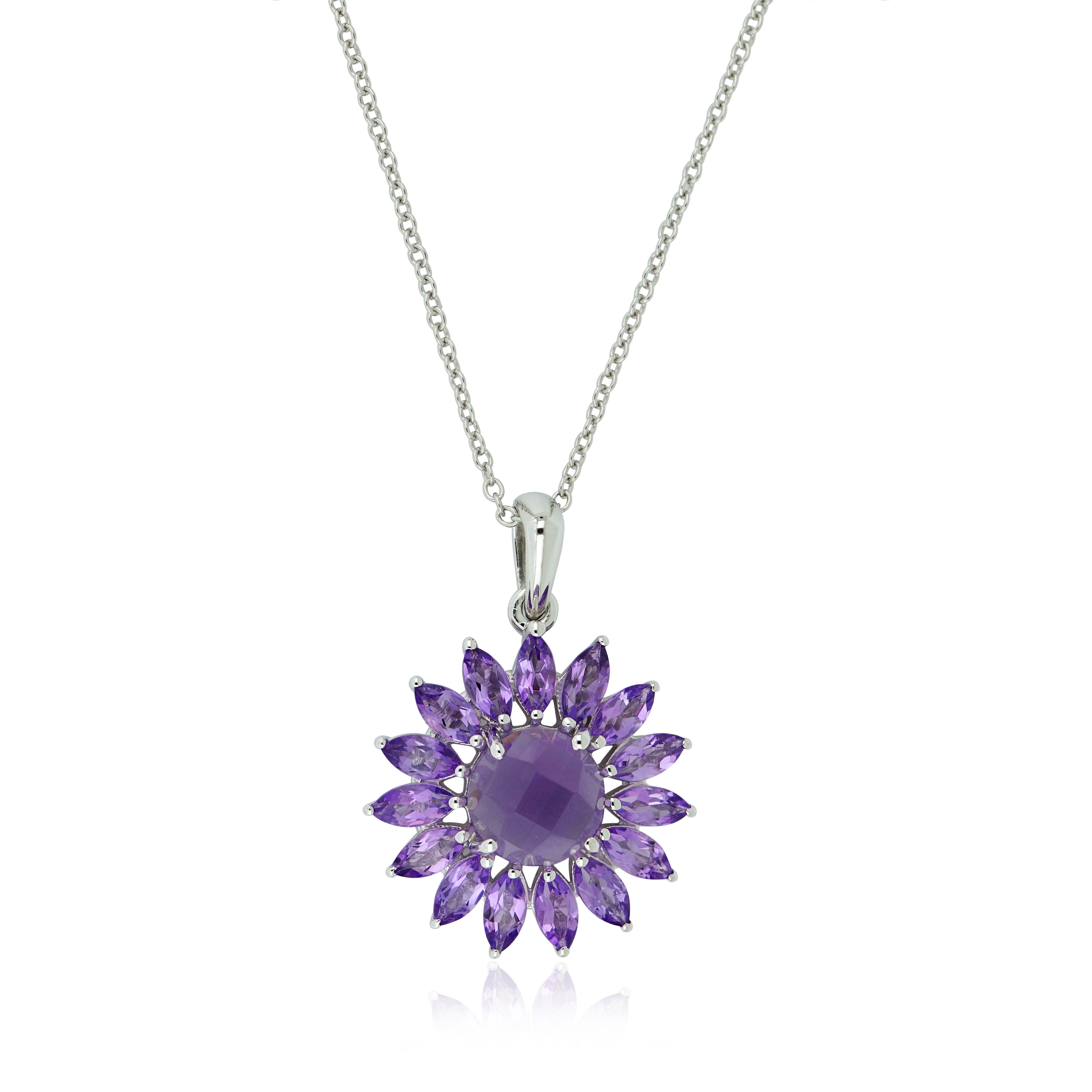Elevate your elegance with this Brazilian Amethyst Pendant with Chain. Featuring a total of 4.10 carats of vibrant purple amethyst, this pendant exudes sophistication and charm. The gemstone is beautifully set in high-quality 925 sterling silver, enhancing its natural brilliance with a sleek and timeless finish. Paired with a matching chain, this piece is perfect for everyday wear or adding a refined touch to special occasions.