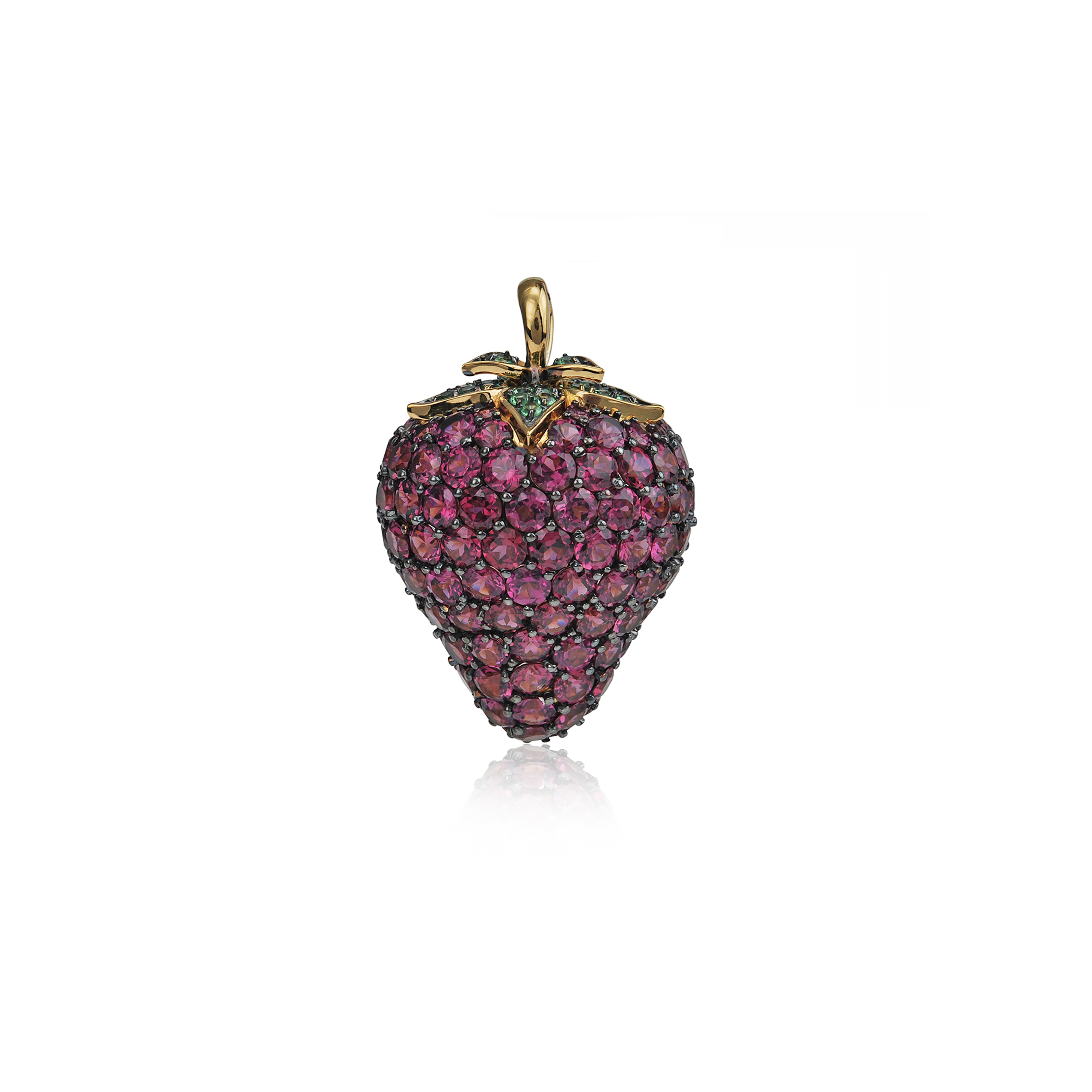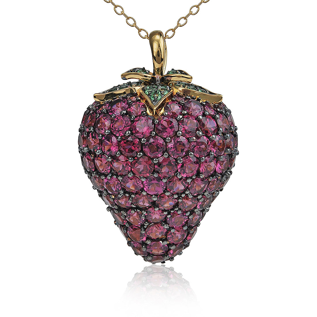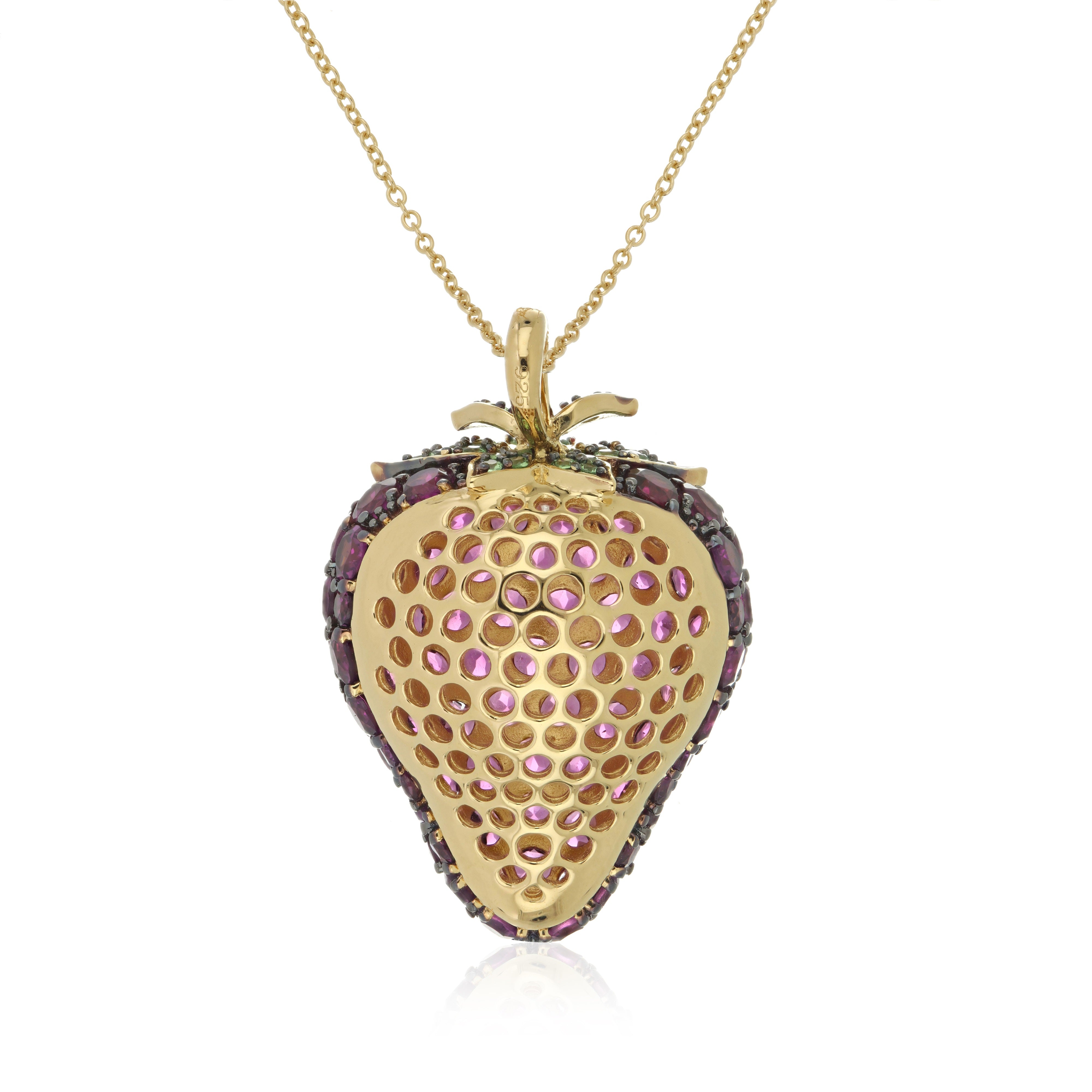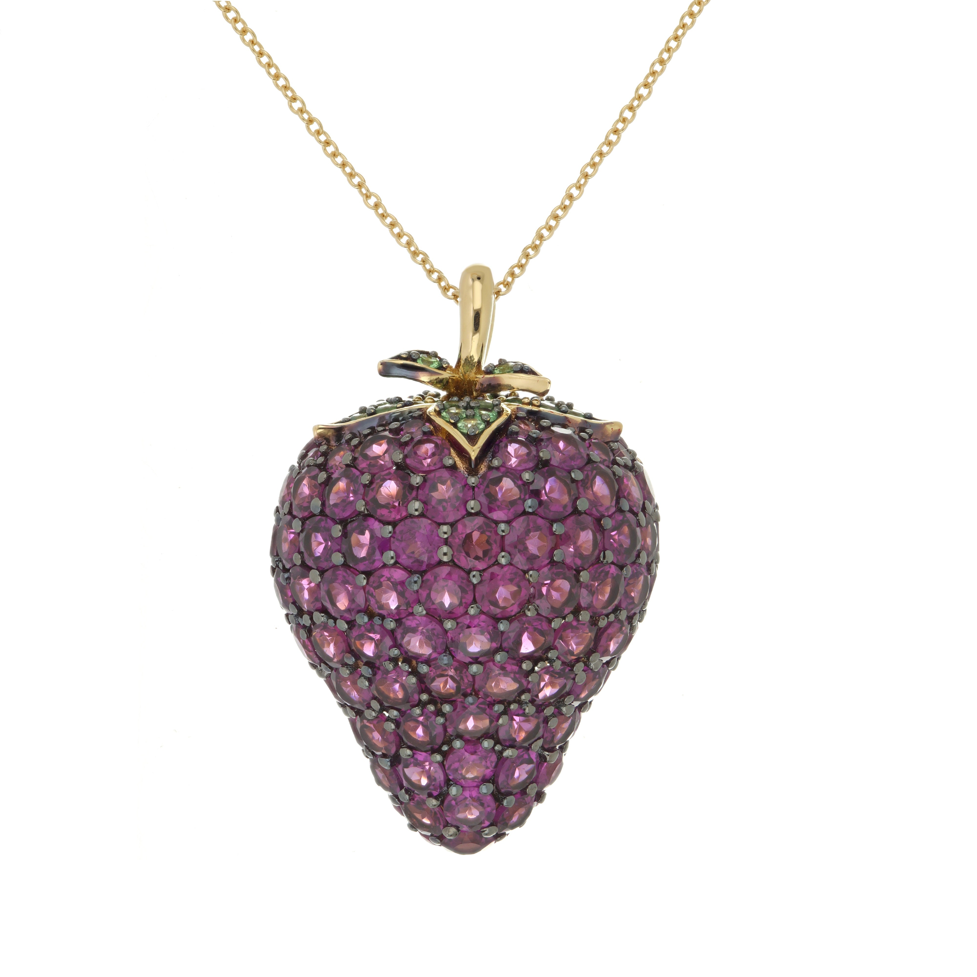 - Gemstone: Rhodolite Garnet with Tsavorite accents