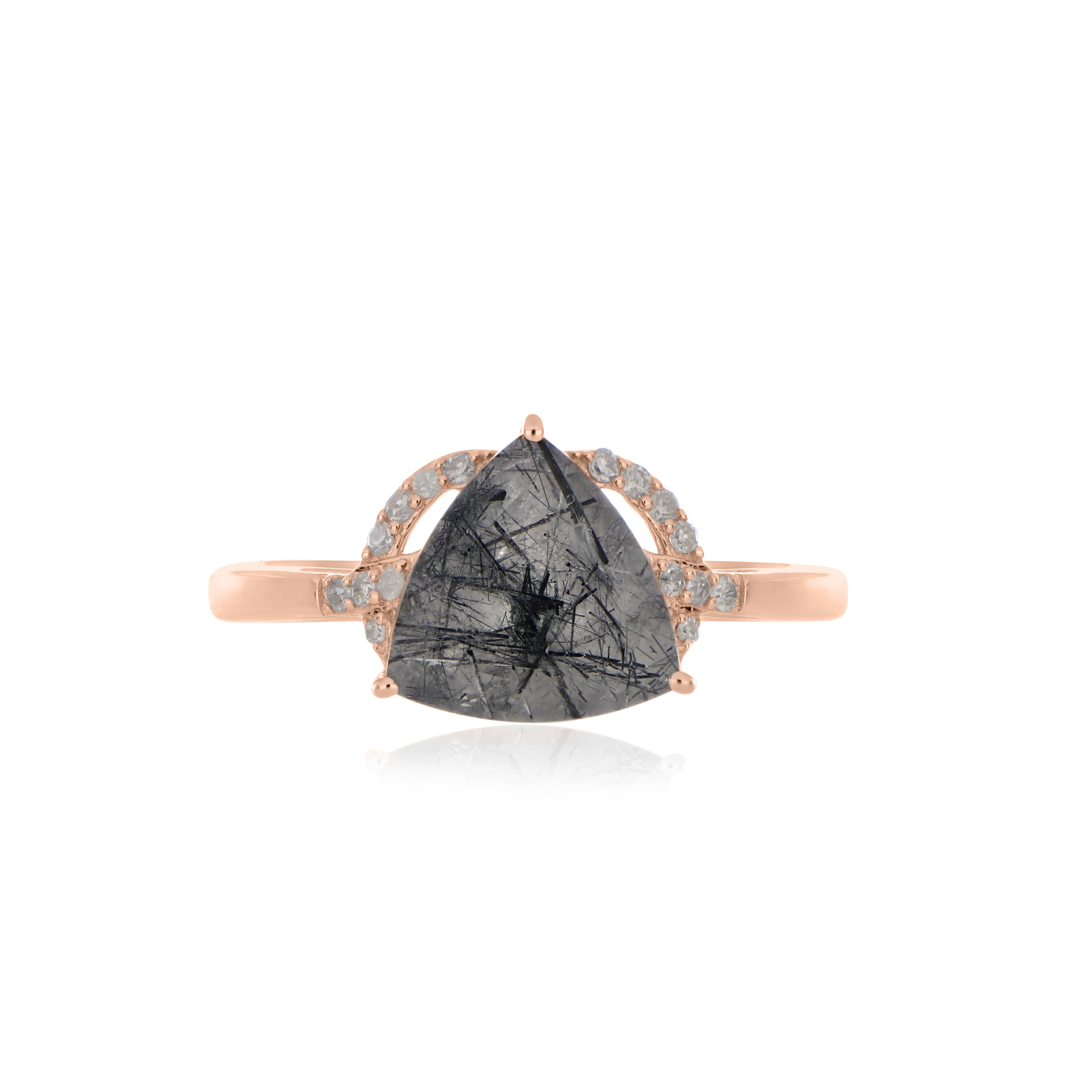 Black Ruitle Quartz Trillion Ring – 9KT Yellow Gold | Fine Jewelry