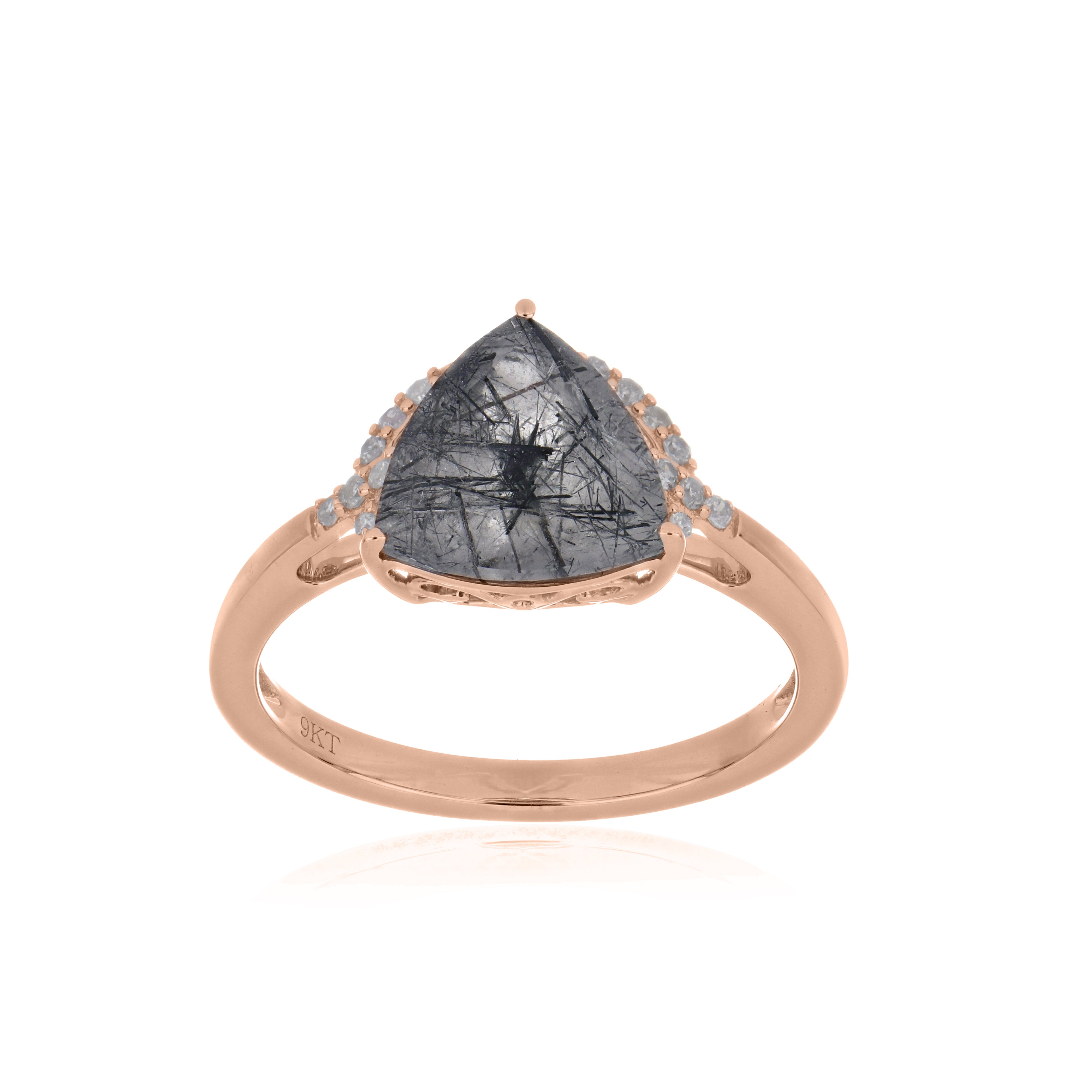 Elevate your everyday elegance with these finely crafted 9kt Yellow Gold ring featuring Black Ruitle Quartz Stone with single cut Diamond HI/I1 I/2. Designed for modern luxury lovers, this piece blends timeless craftsmanship with effortless sophistication perfect for gifting or daily wear.