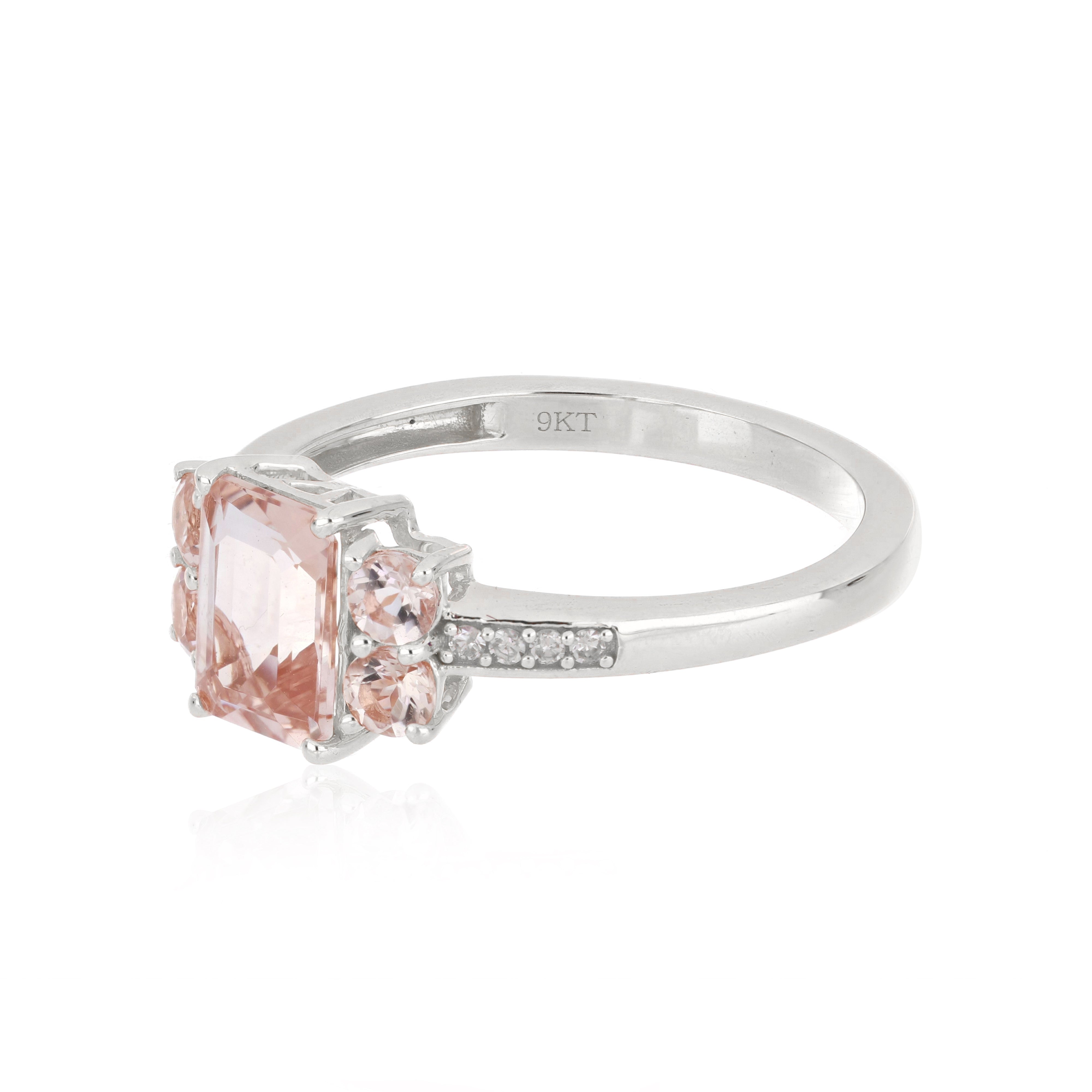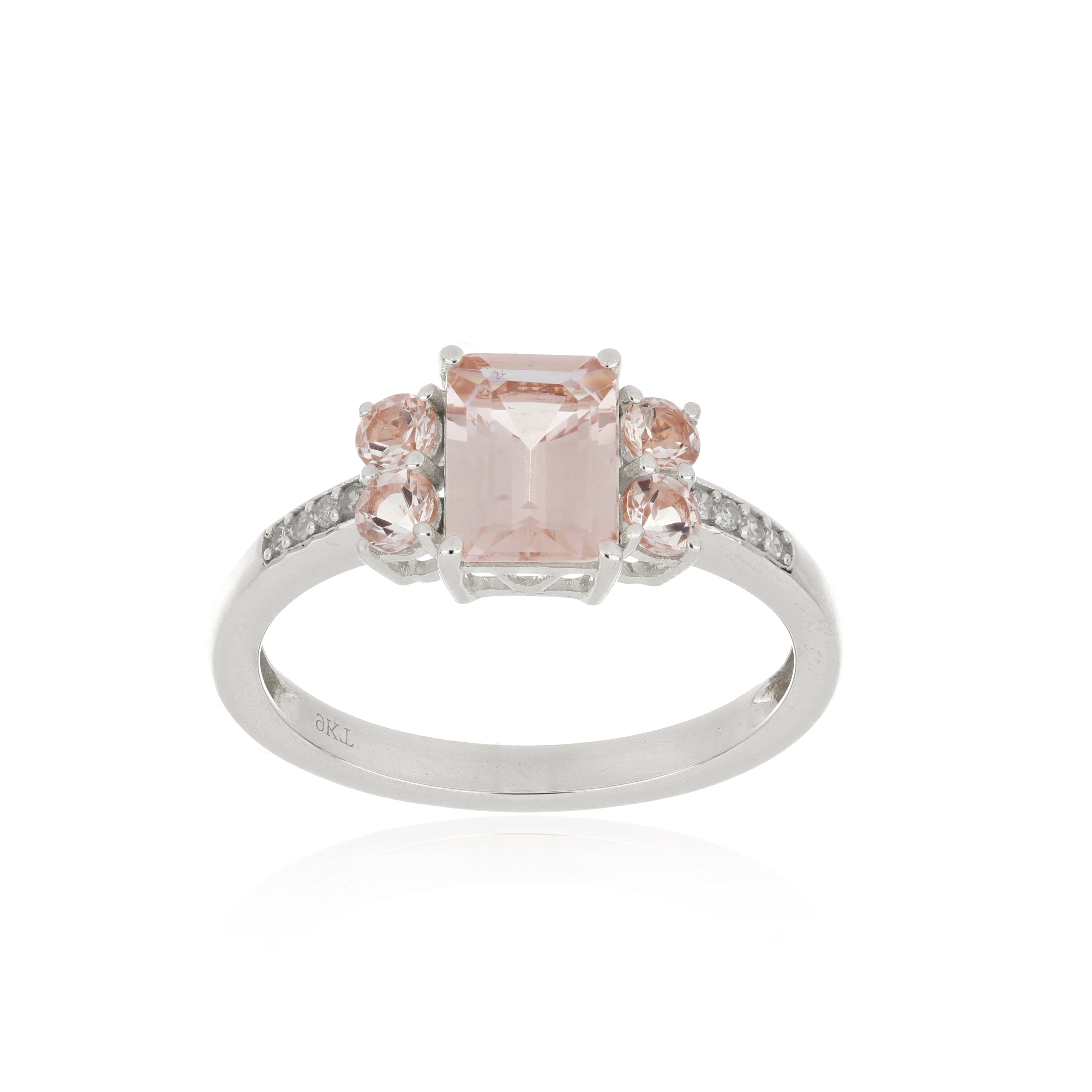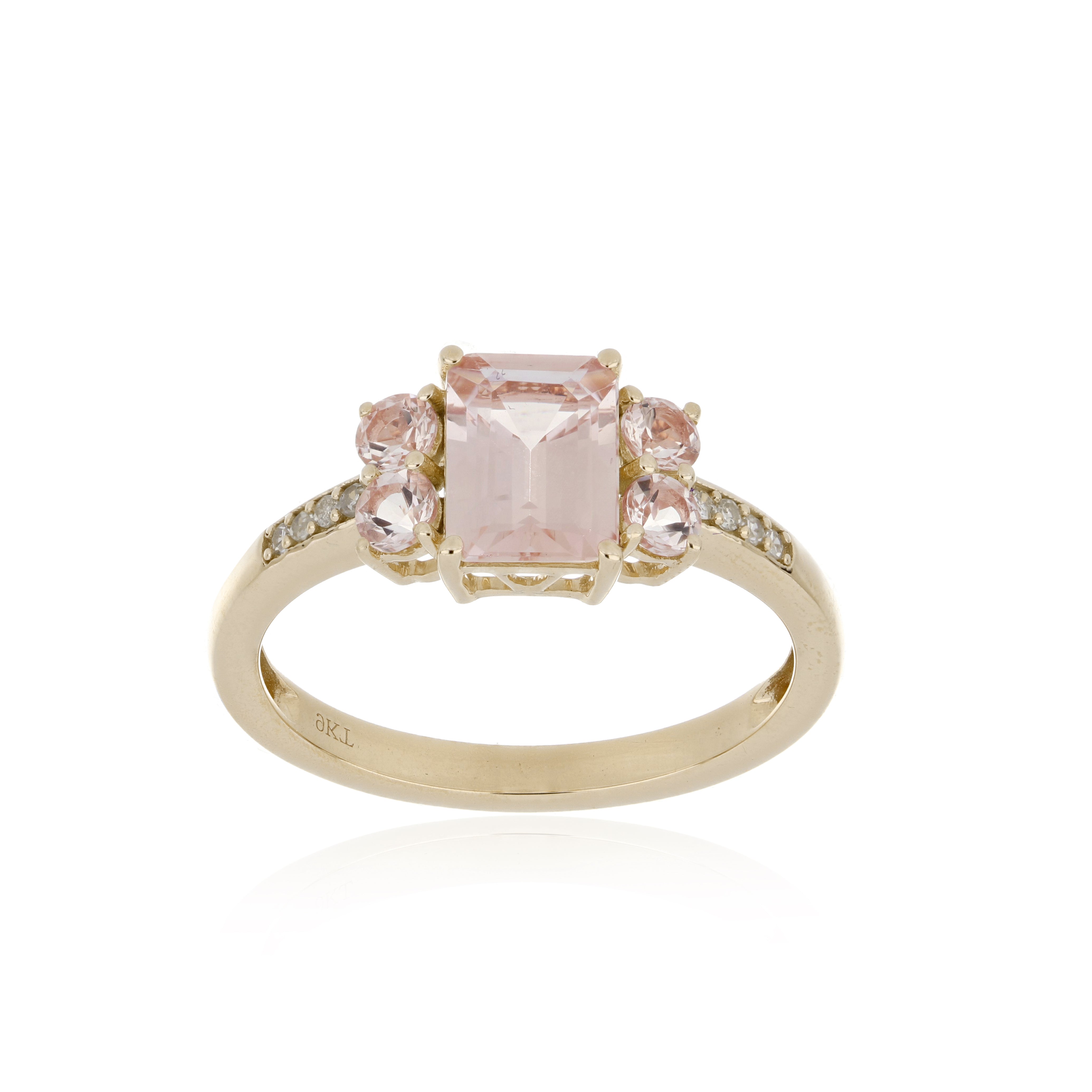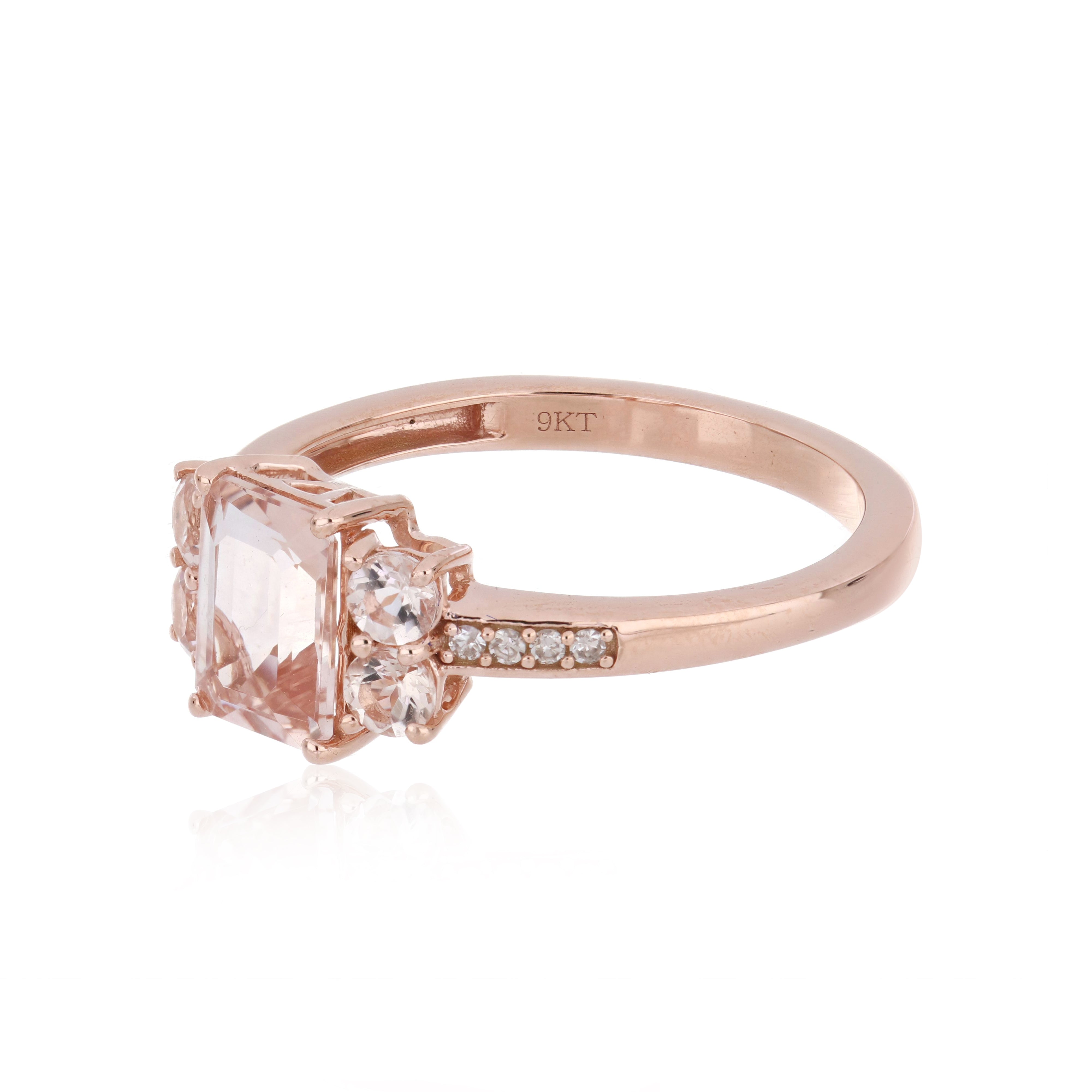 Embrace timeless elegance with this Morganite With Diamond EF-VS 1.90ctw Ring in 9KT Rose Gold. The soft peach-pink hue of the morganite exudes romance and grace, beautifully complemented by the brilliance of EF-VS quality diamonds. Crafted in luxurious 9KT rose gold, this ring radiates warmth and sophistication, making it the perfect piece for special occasions or everyday elegance.