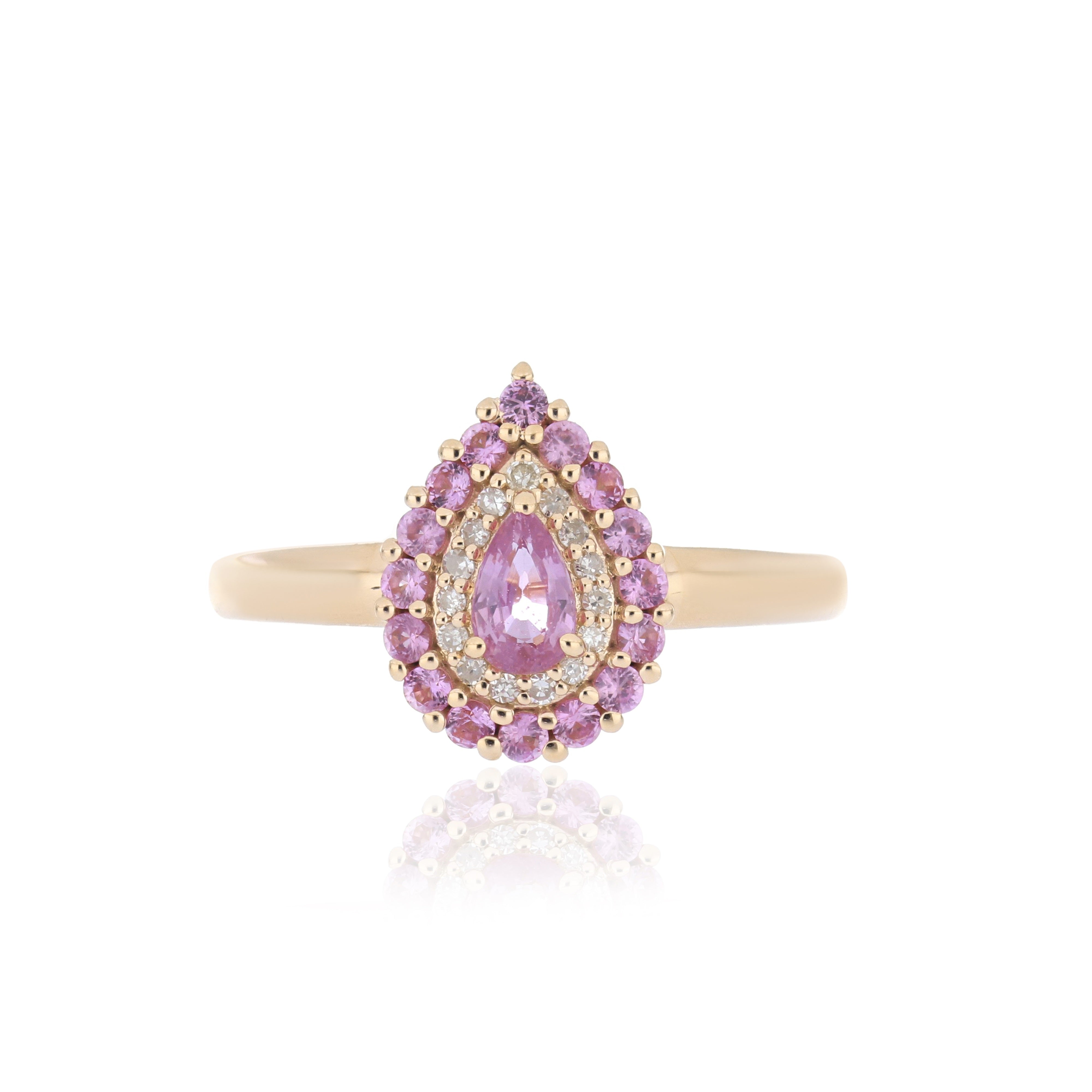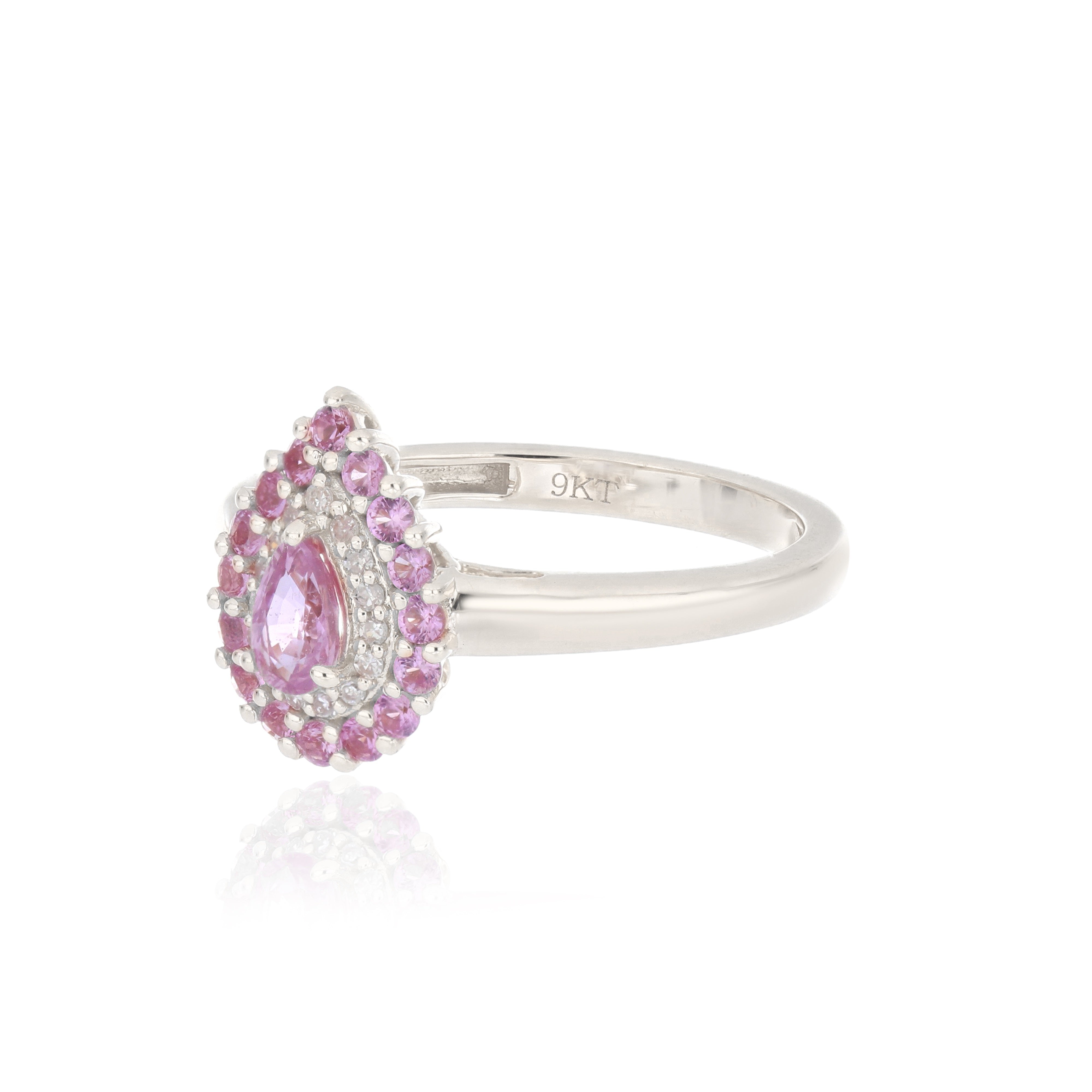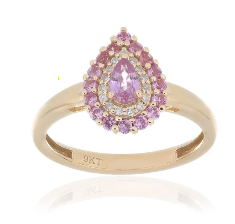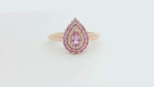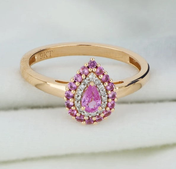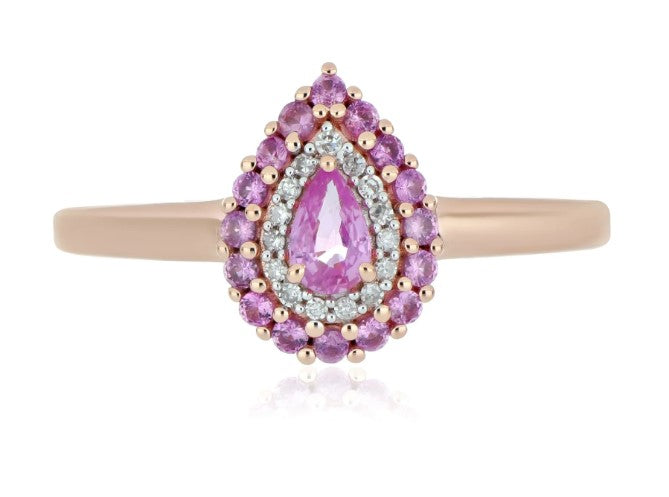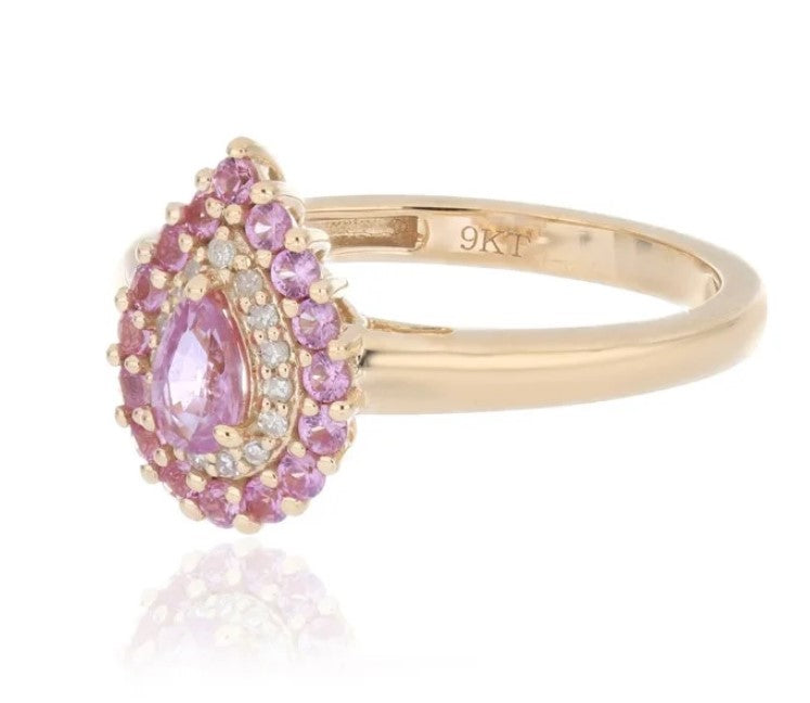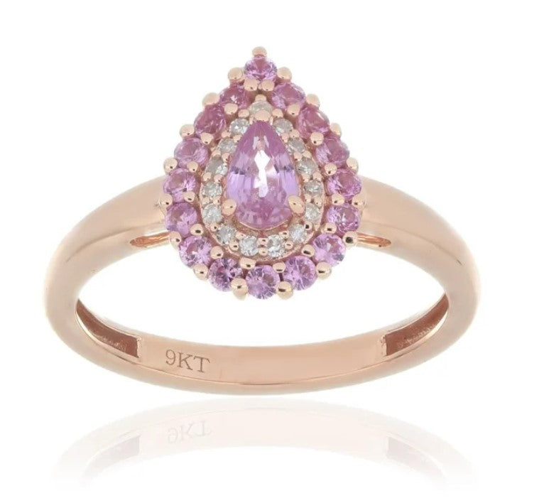 Elevate your style with this exquisite Pink Sapphire 0.60ctw Ring featuring a stunning pink sapphire center and dazzling diamond accents, all set in luxurious 9kt rose gold. The perfect blend of elegance and sophistication, this ring is a timeless addition to any jewelry collection. Embrace the beauty of pink sapphire and the allure of rose gold with this meticulously crafted piece.