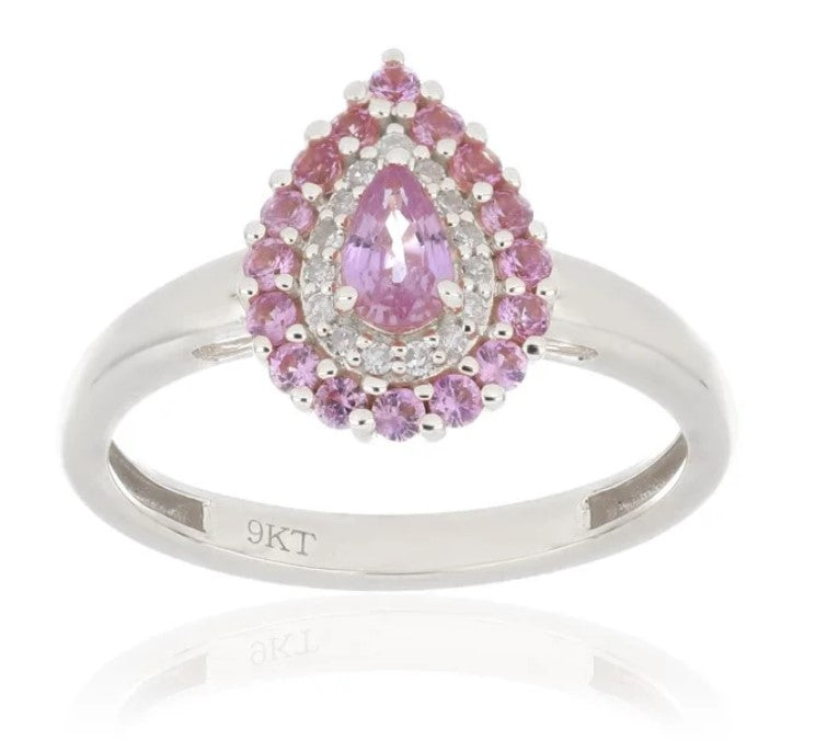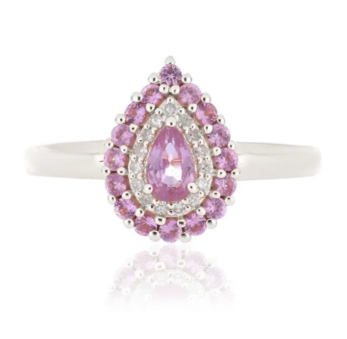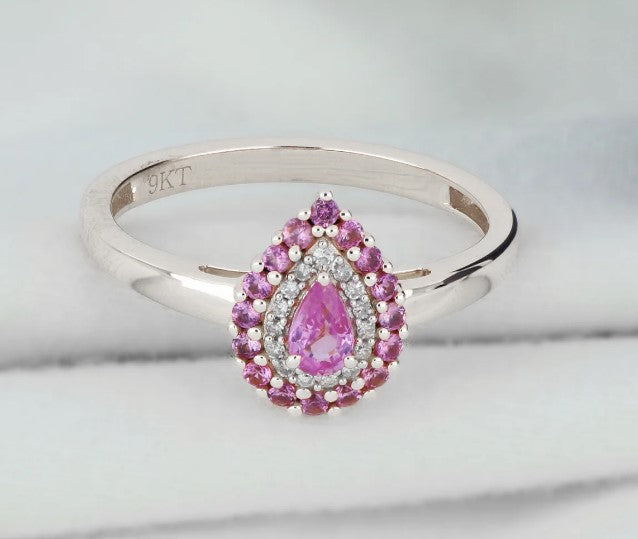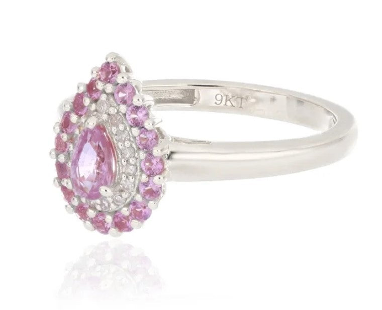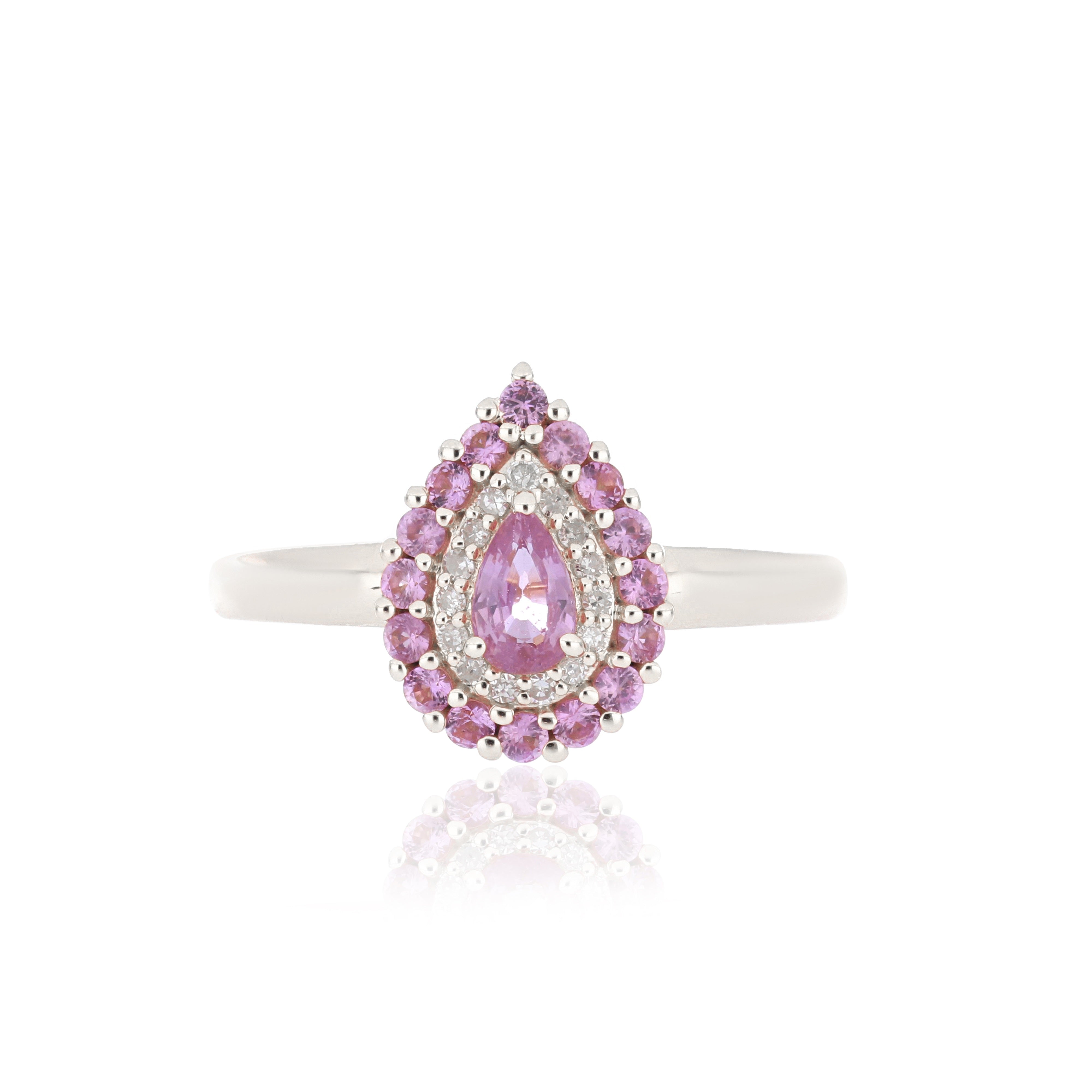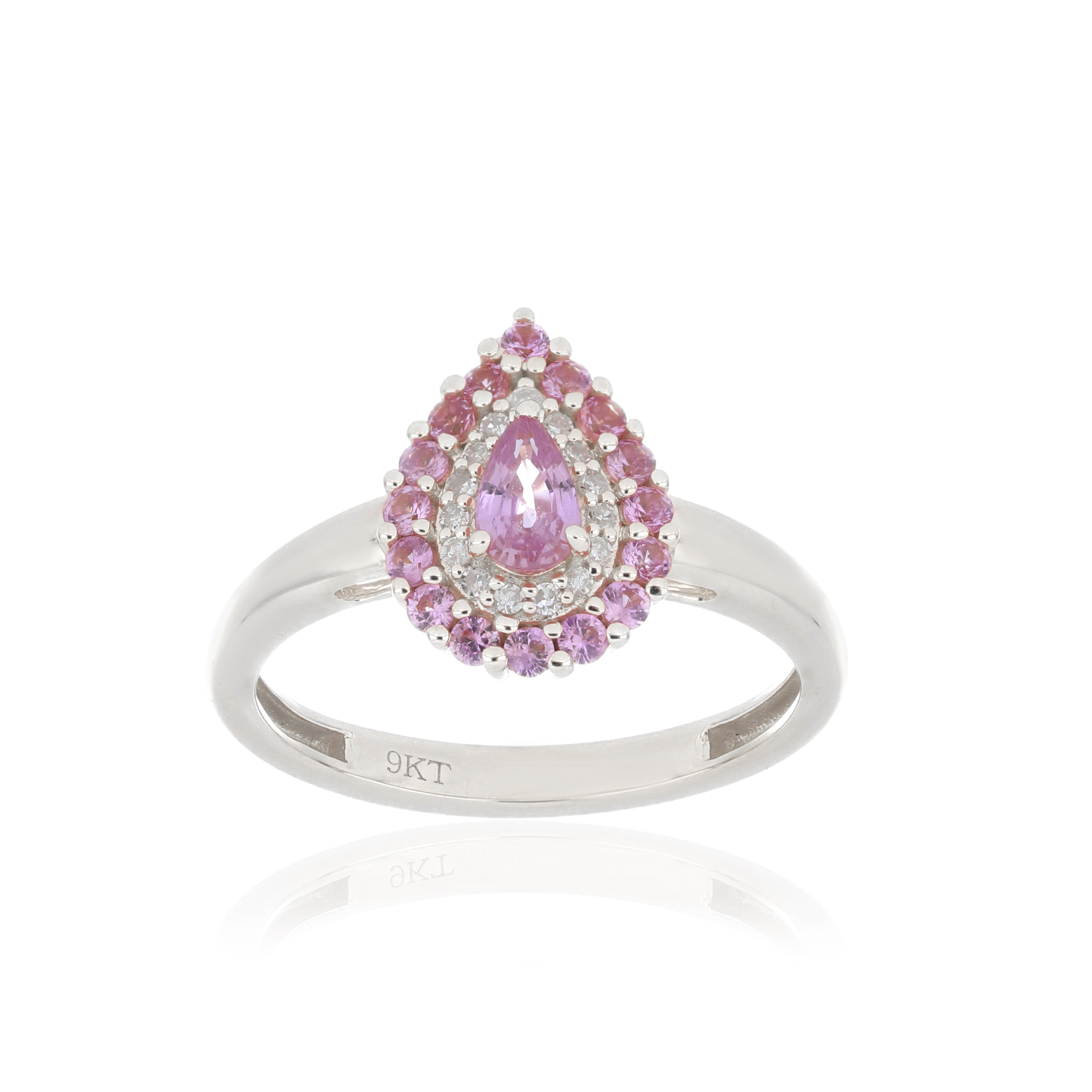 Elevate your style with this exquisite Pink Sapphire 0.60ctw Ring featuring a stunning pink sapphire center and dazzling diamond accents, all set in luxurious 9kt rose gold. The perfect blend of elegance and sophistication, this ring is a timeless addition to any jewelry collection. Embrace the beauty of pink sapphire and the allure of rose gold with this meticulously crafted piece.