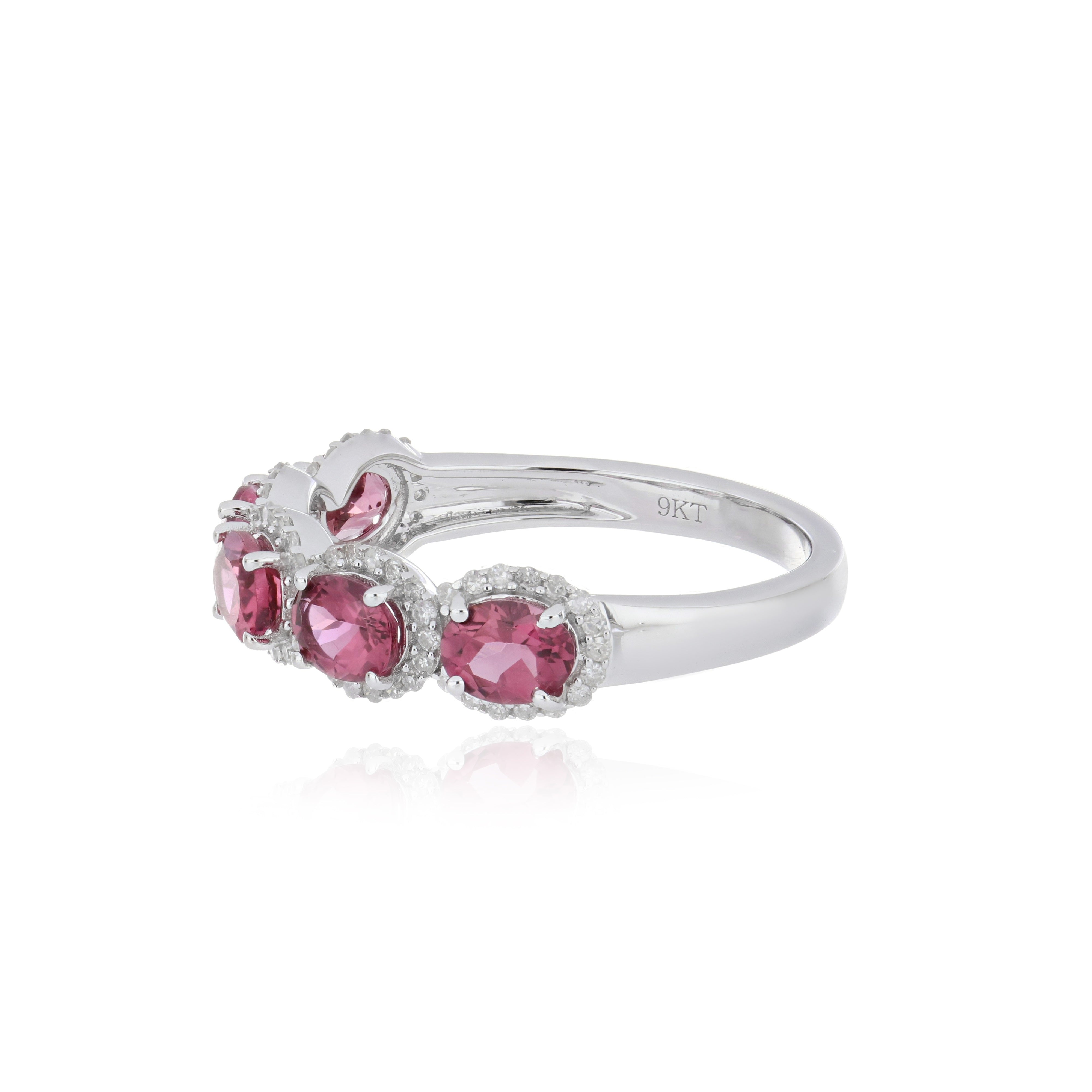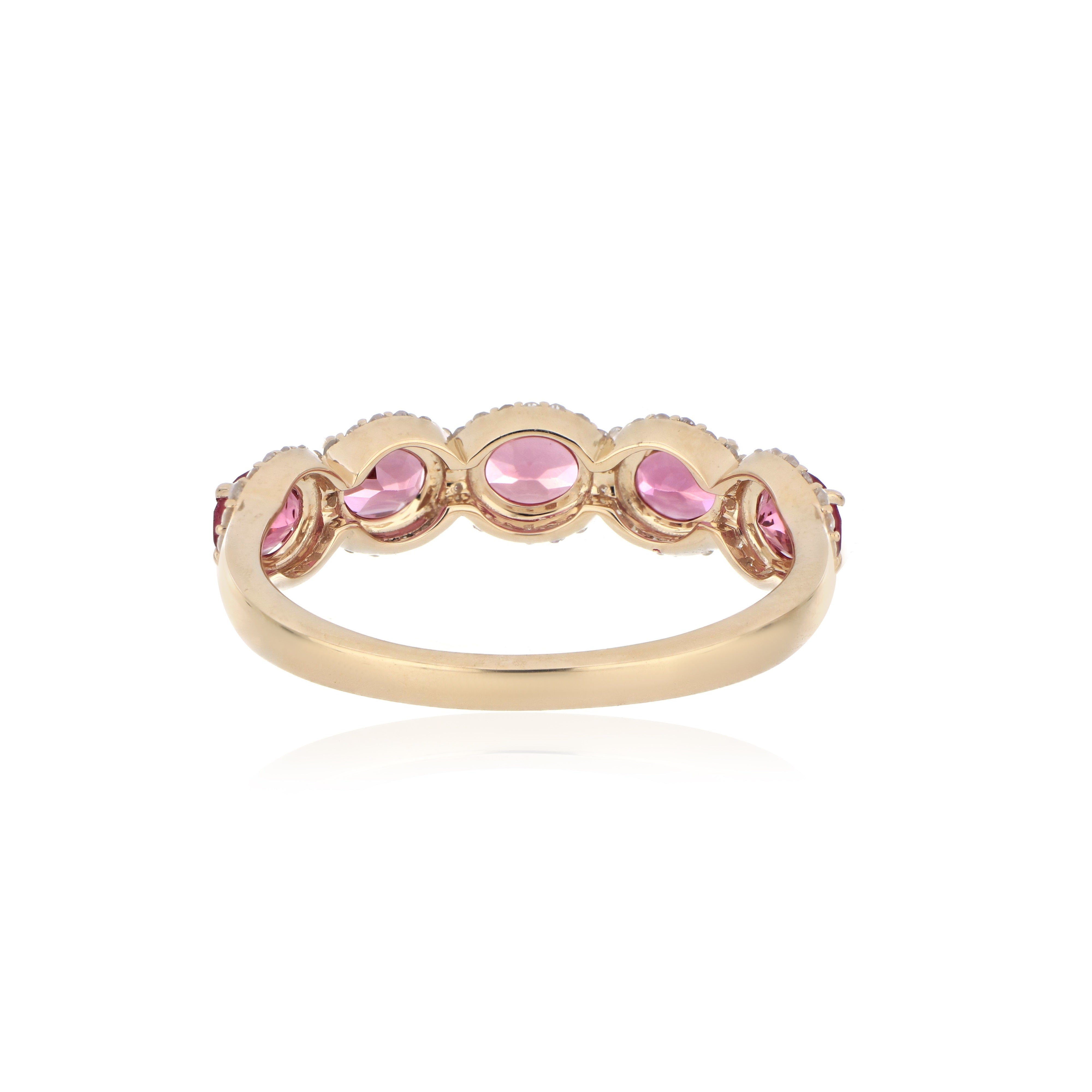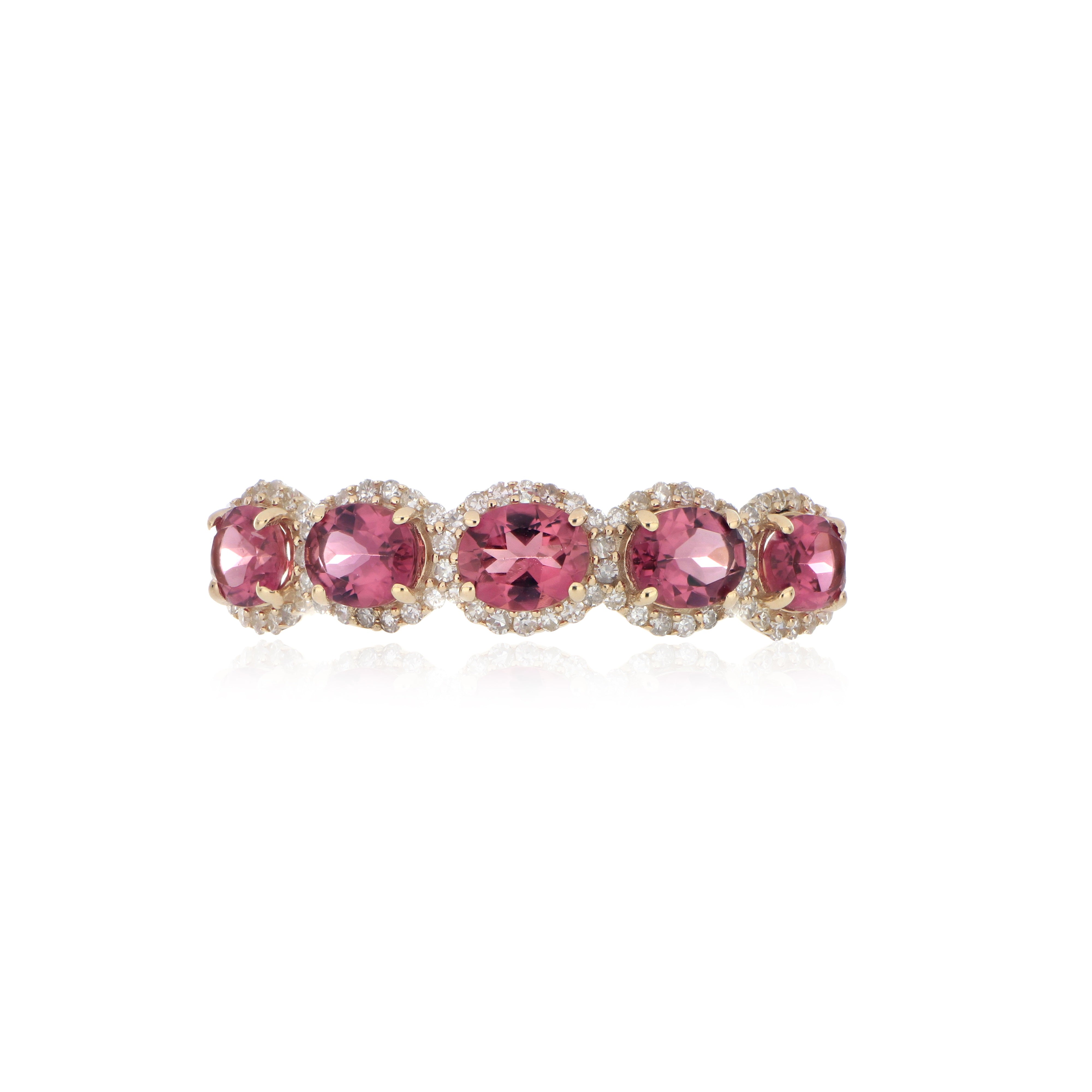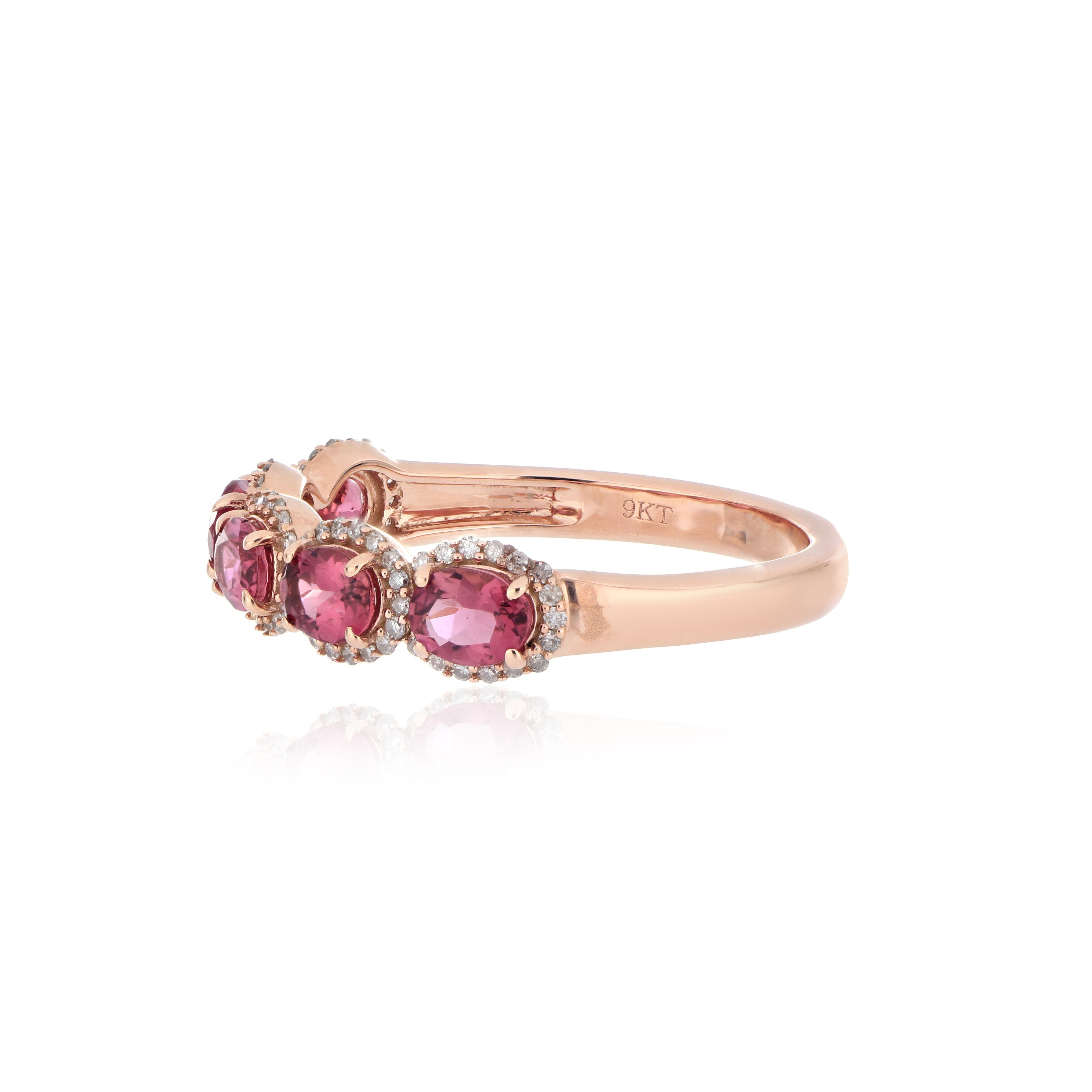 Radiating charm and grace, this Pink Tourmaline With Diamond Ring in 9KT Yellow Gold captures the essence of feminine elegance. The captivating pink tourmaline, known for its delicate rosy hue and symbolic connection to love and compassion, takes center stage, beautifully accented by sparkling diamonds that enhance its natural brilliance. Set in the warm glow of 9KT yellow gold, this ring combines sophistication and timeless appeal, making it a perfect choice for both everyday wear and special occasions.