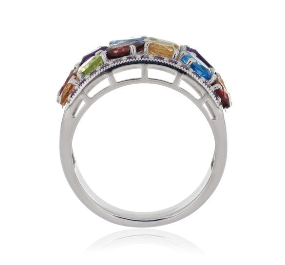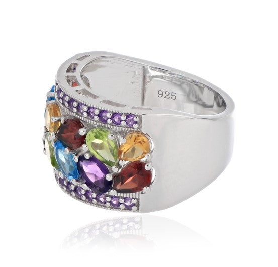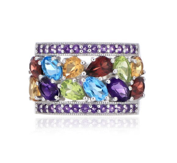 Celebrate vibrant elegance with this stunning Multi Stone 6.20ctw Ring, crafted in premium 925 Sterling Silver. Featuring a beautiful arrangement of assorted gemstones with a total weight of 6.20 carats, this ring showcases a lively mix of colors that sparkle from every angle. Perfect for those who love bold, colorful jewelry, it adds a playful yet sophisticated touch to any outfit, whether for everyday wear or special occasions.