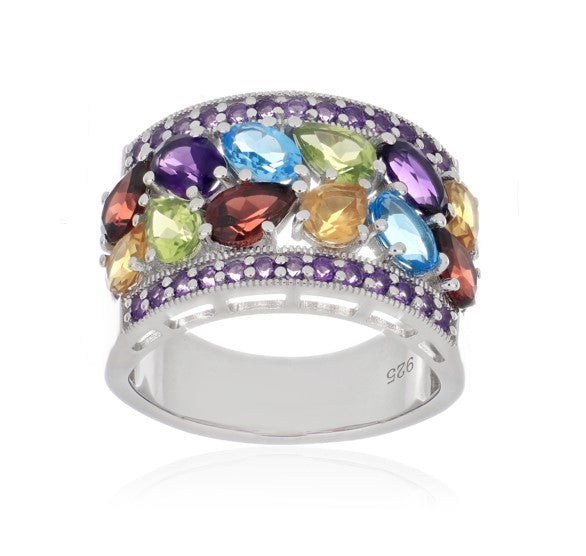 - Design: Eye-catching arrangement of multiple vibrant gemstones set in a balanced, elegant design
