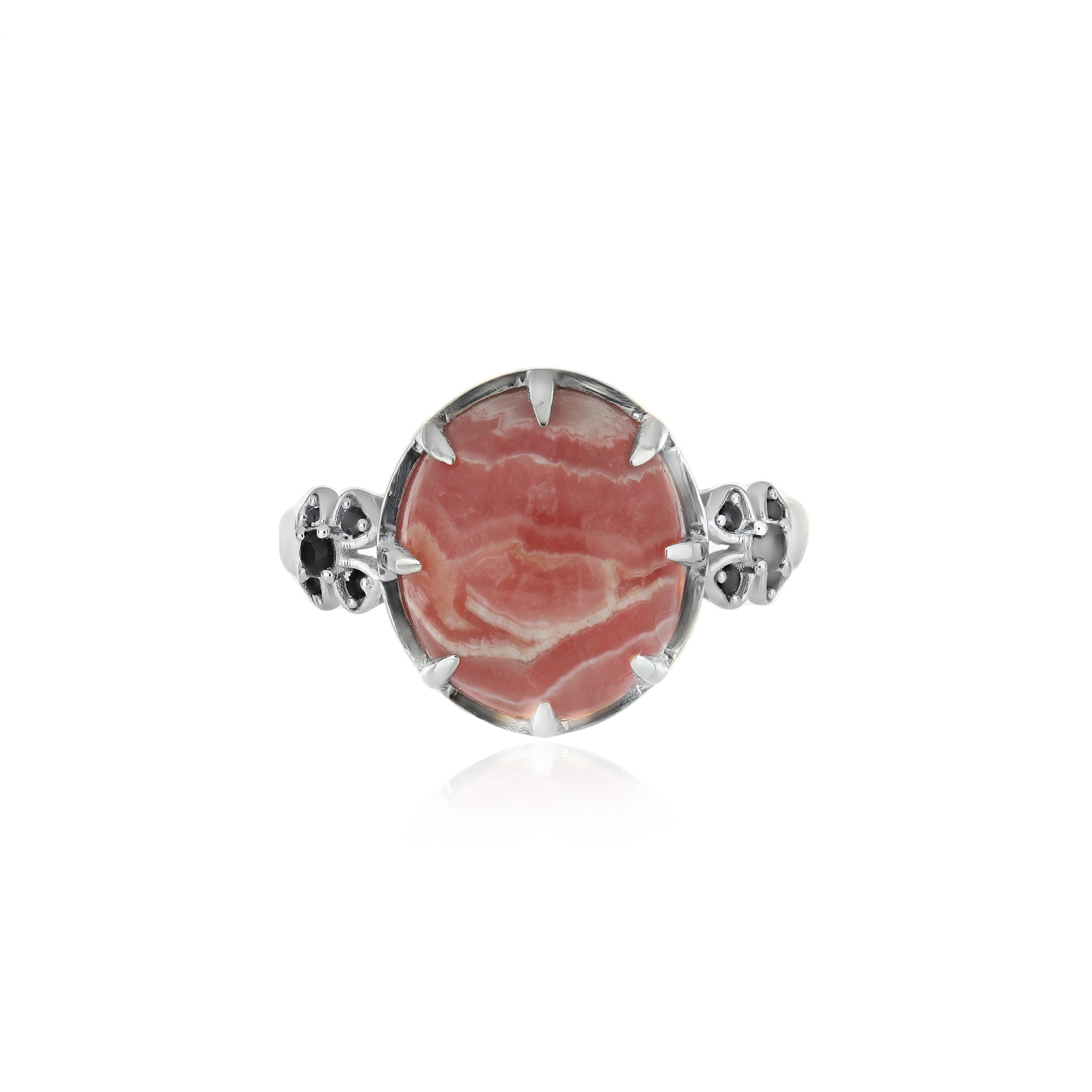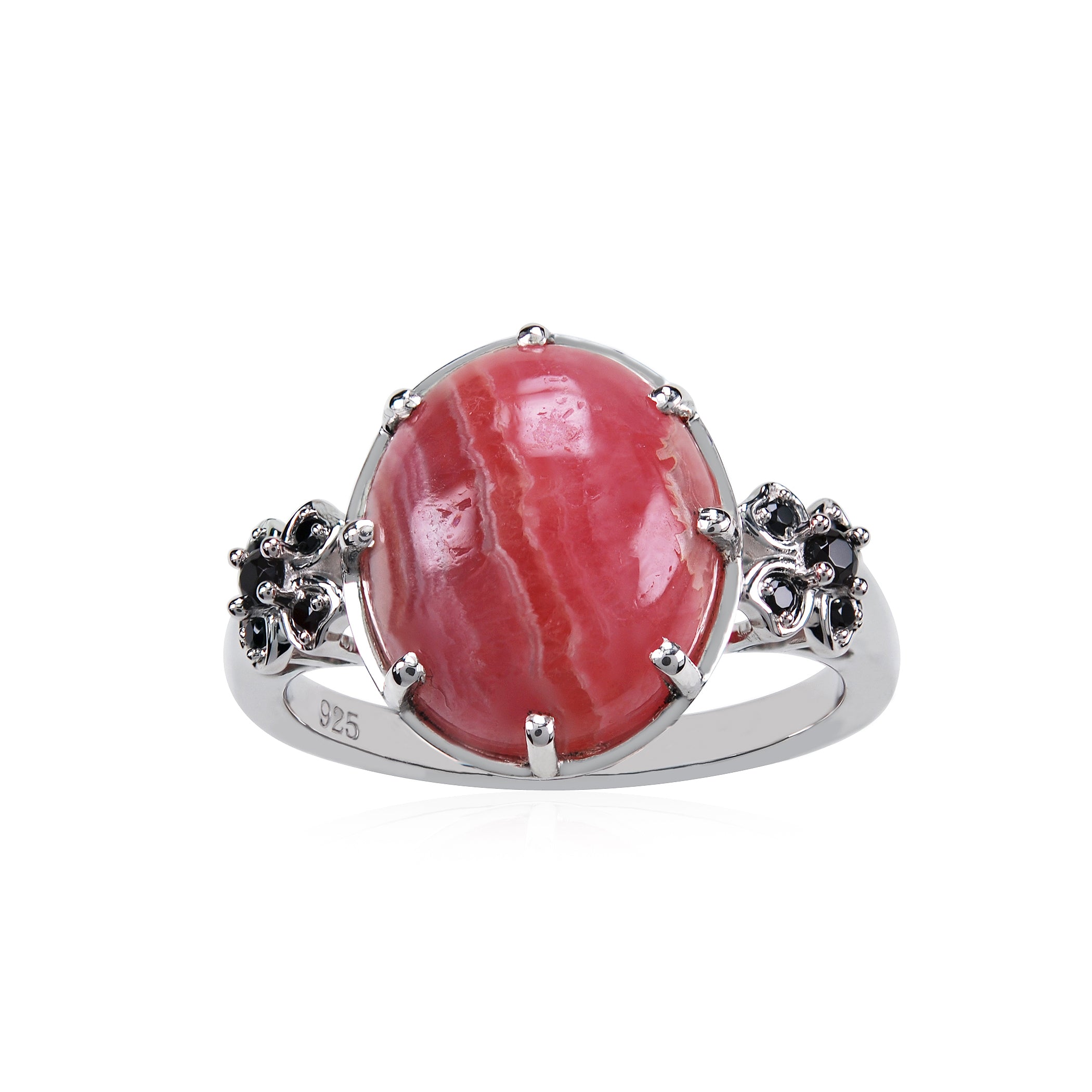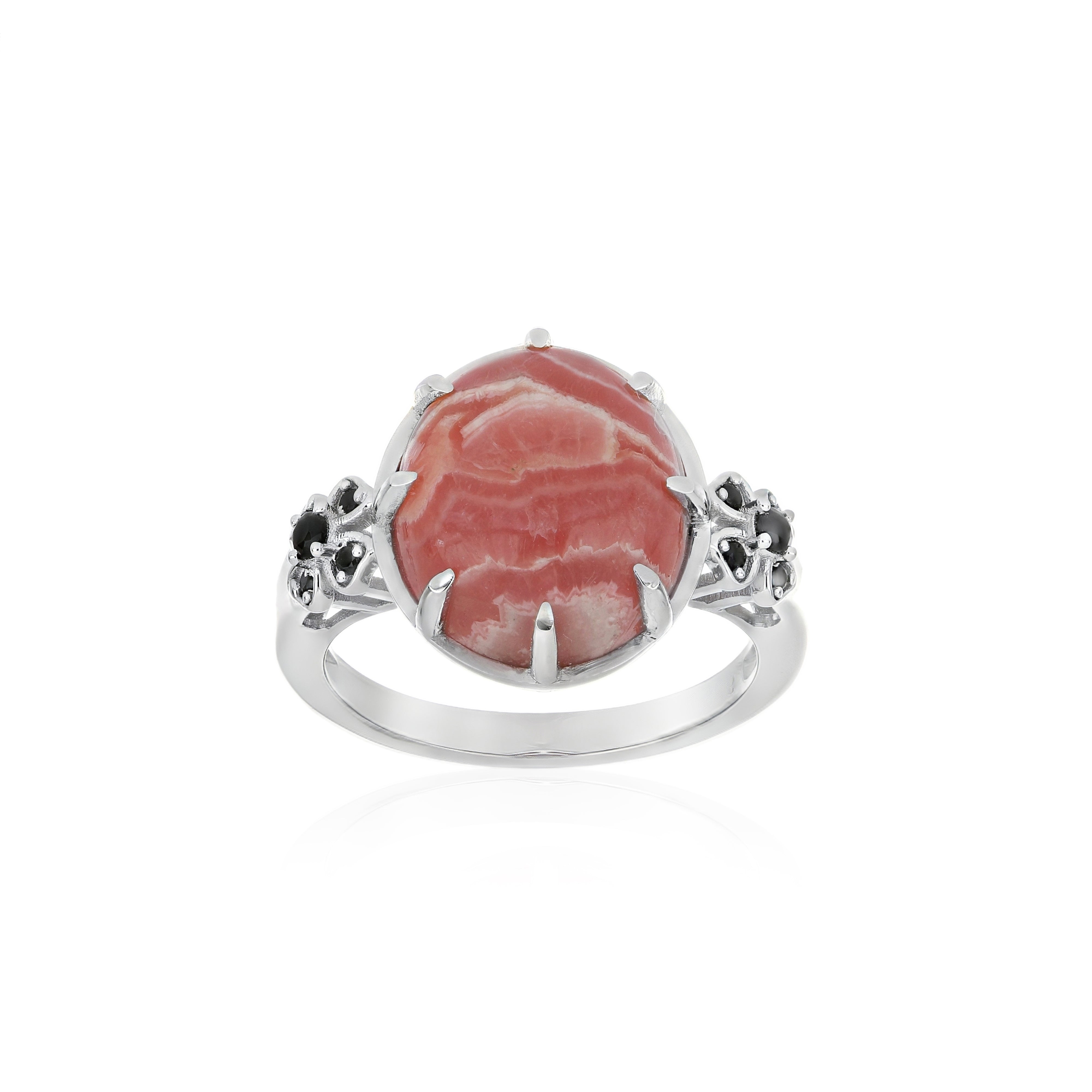Rhodochrosite With Black Spinel 10.00 Ring In 925 Sterling Silver