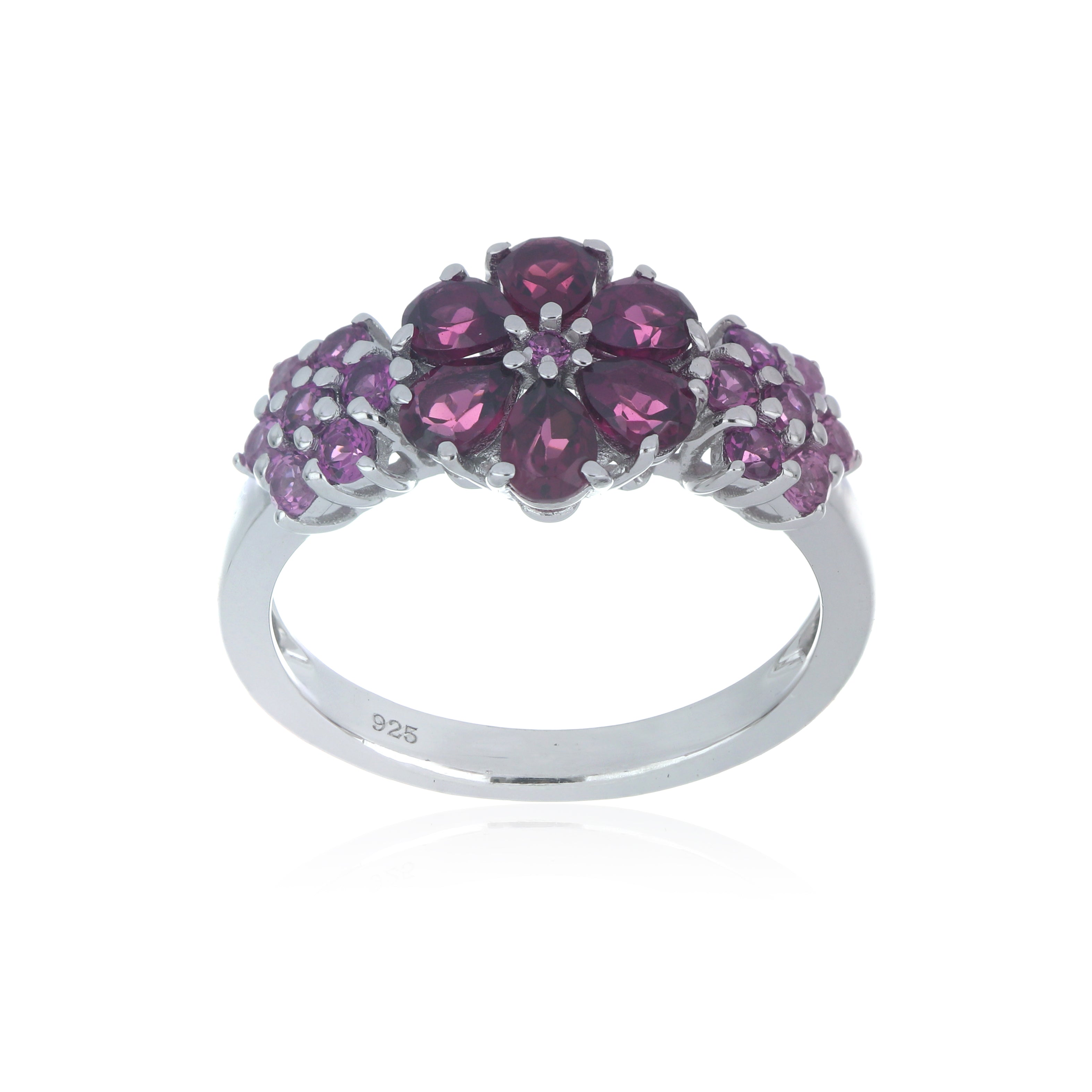 Rhodolite Garnet 2.10ctw Flower Ring In 925 Sterling Silver