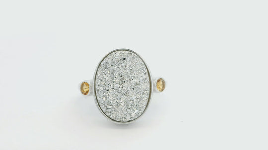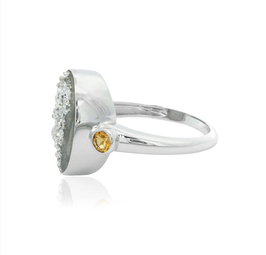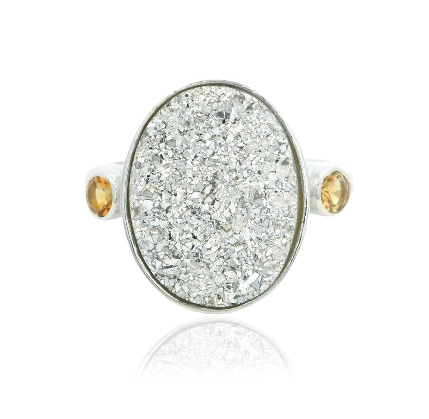 Silver Druzy Quartz With Citrine 8.90ctw Ring In 925 Sterling Silver