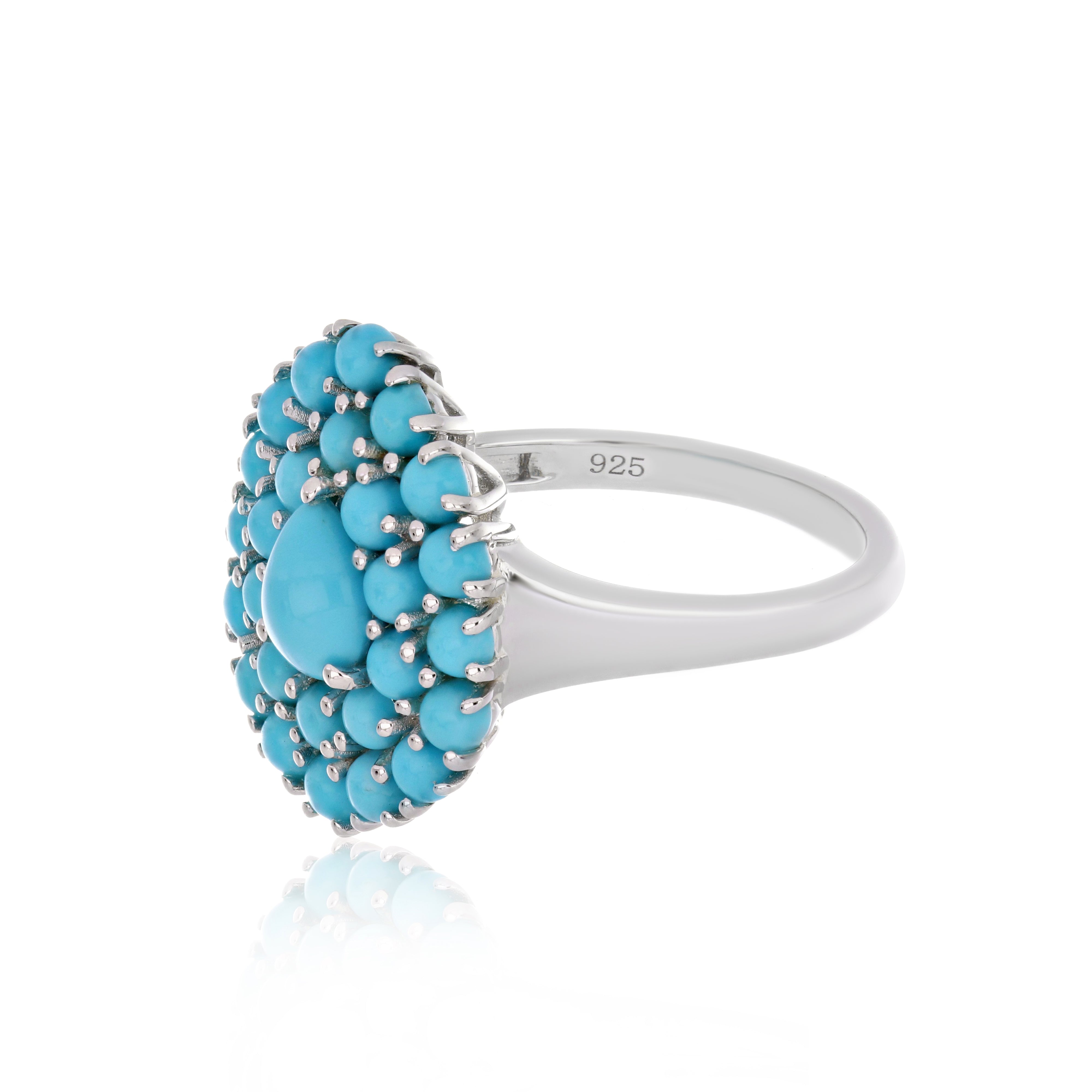 This Sleeping Beauty Turquoise 4.60ctw Ring showcases a vibrant turquoise gemstone, known for its striking color and elegance. Set in high-quality sterling silver, the design offers a timeless and sophisticated appeal. Perfect for special occasions or everyday wear, this ring is a versatile addition to any jewelry collection.