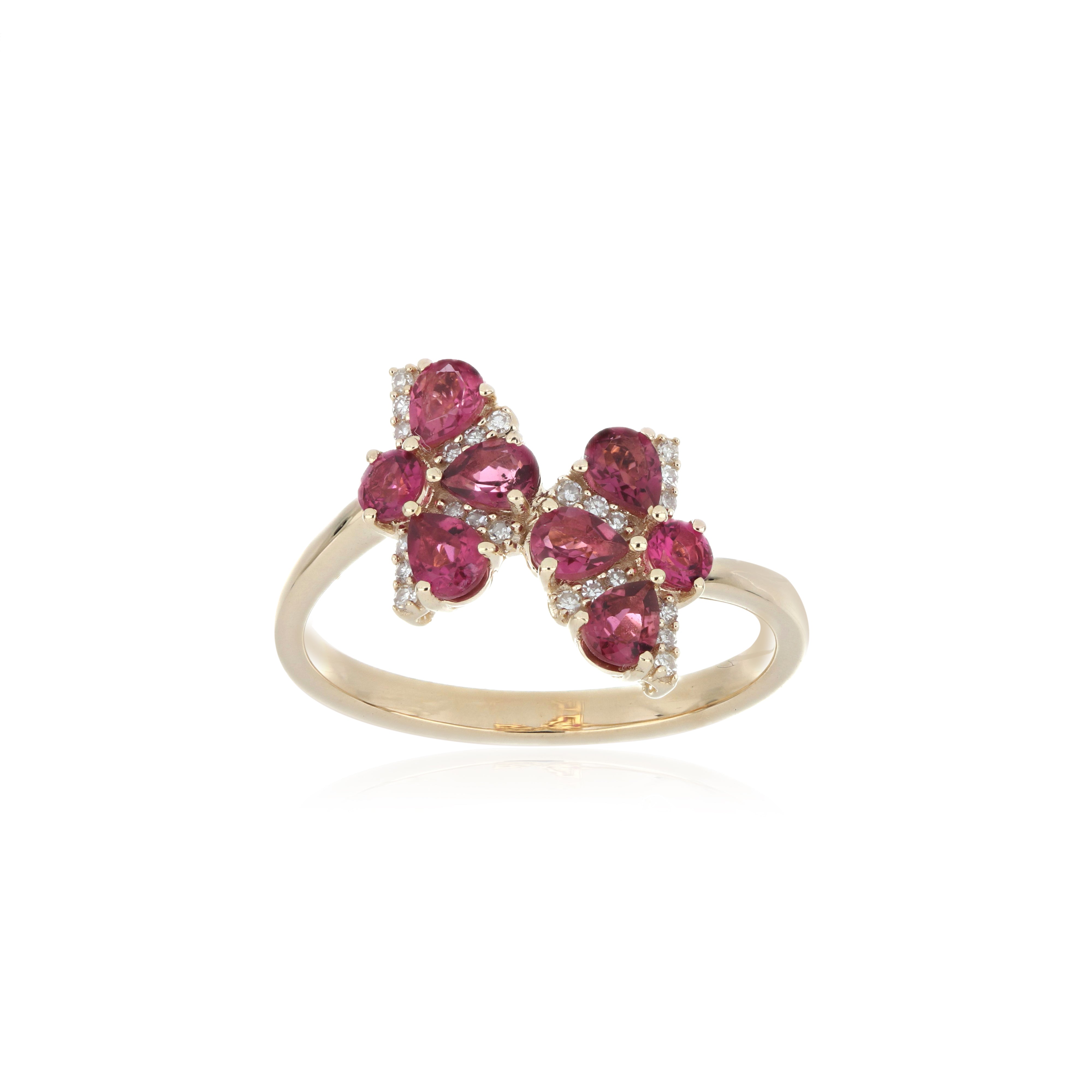 Pink Tourmaline Cluster Ring – 9KT Yellow Gold | Fine Jewelry