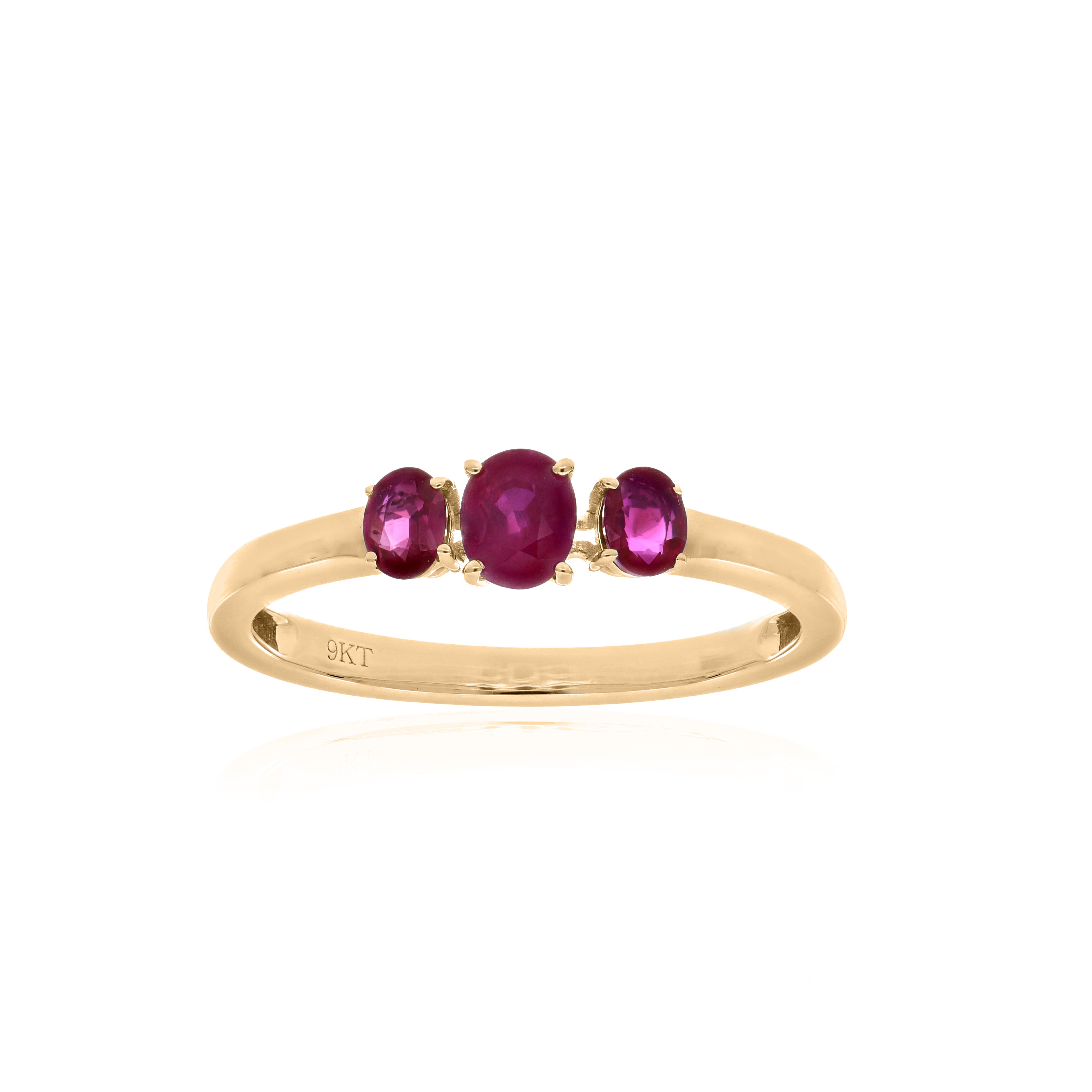 Ruby Three-Stone Ring – 9KT Yellow Gold | Fine Jewelry