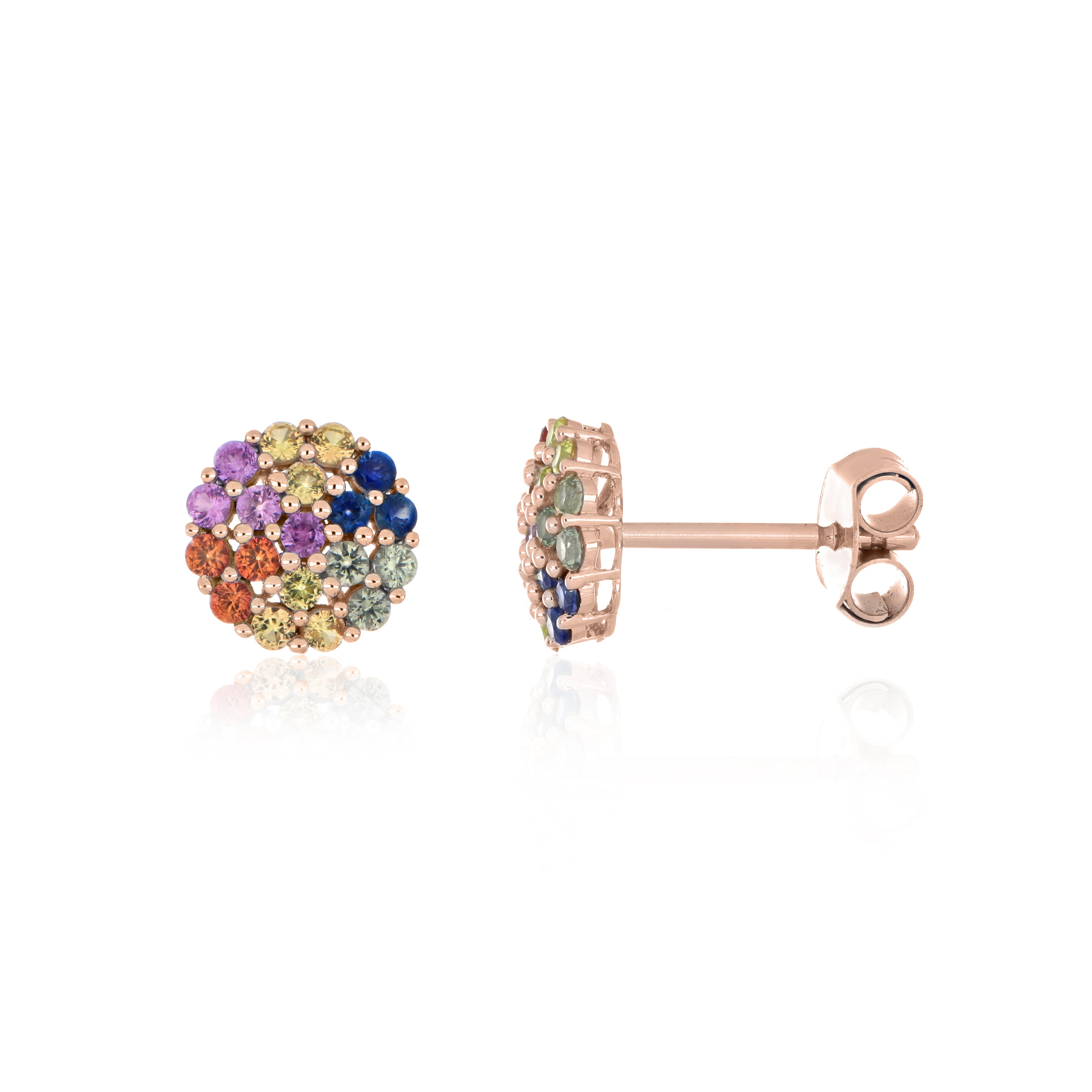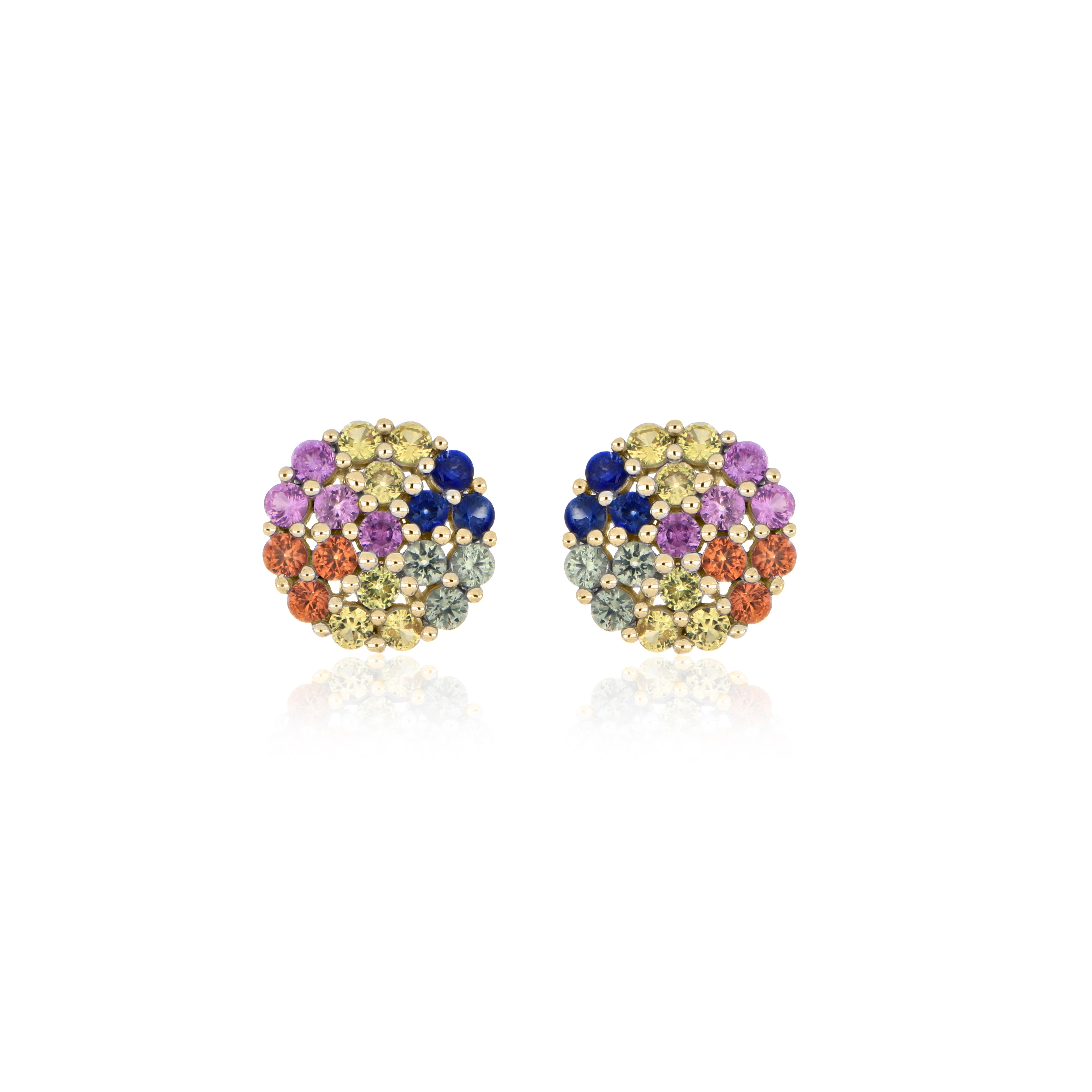 Multi-Sapphire Cluster Stud Earrings – 9KT Yellow Gold | Fine Jewelry
