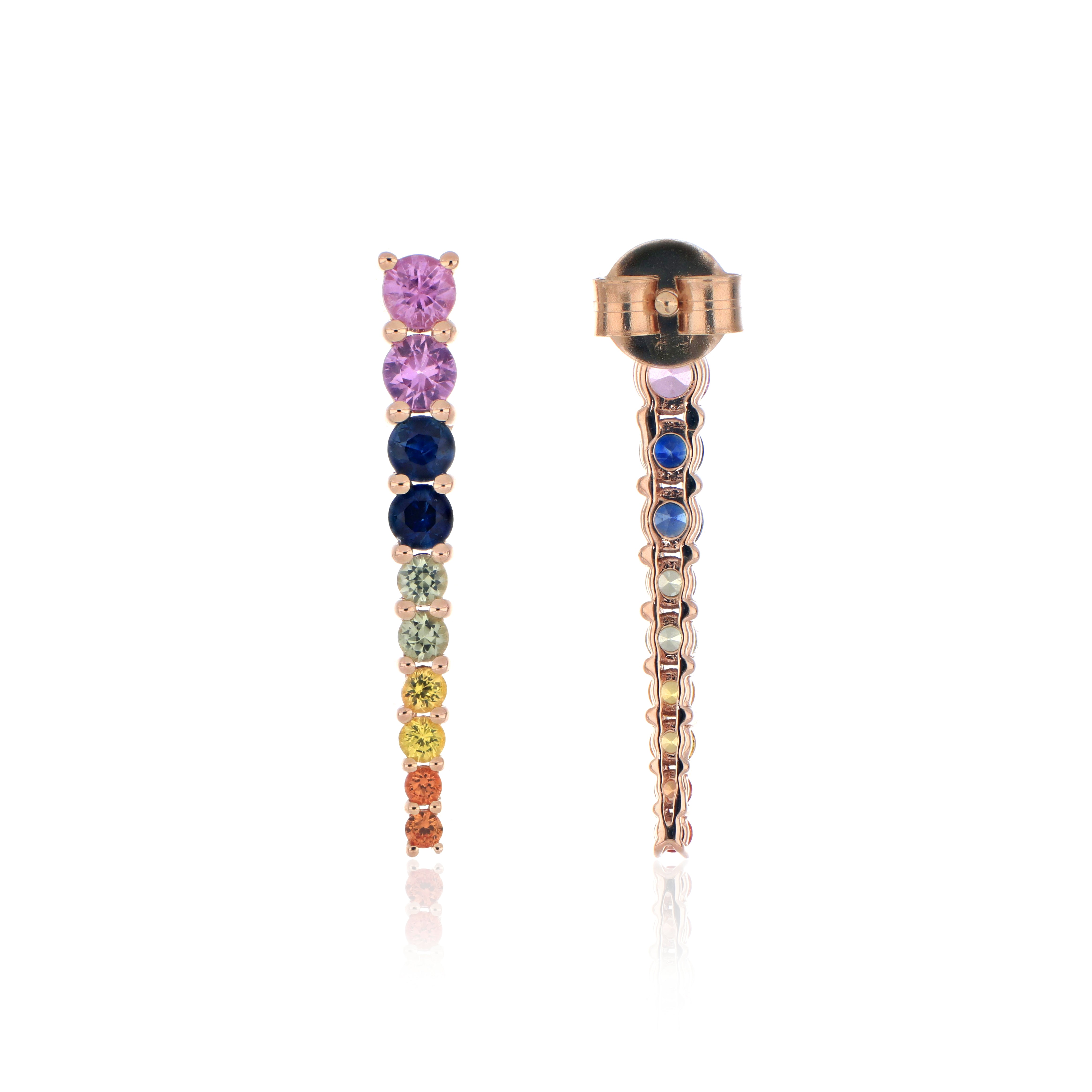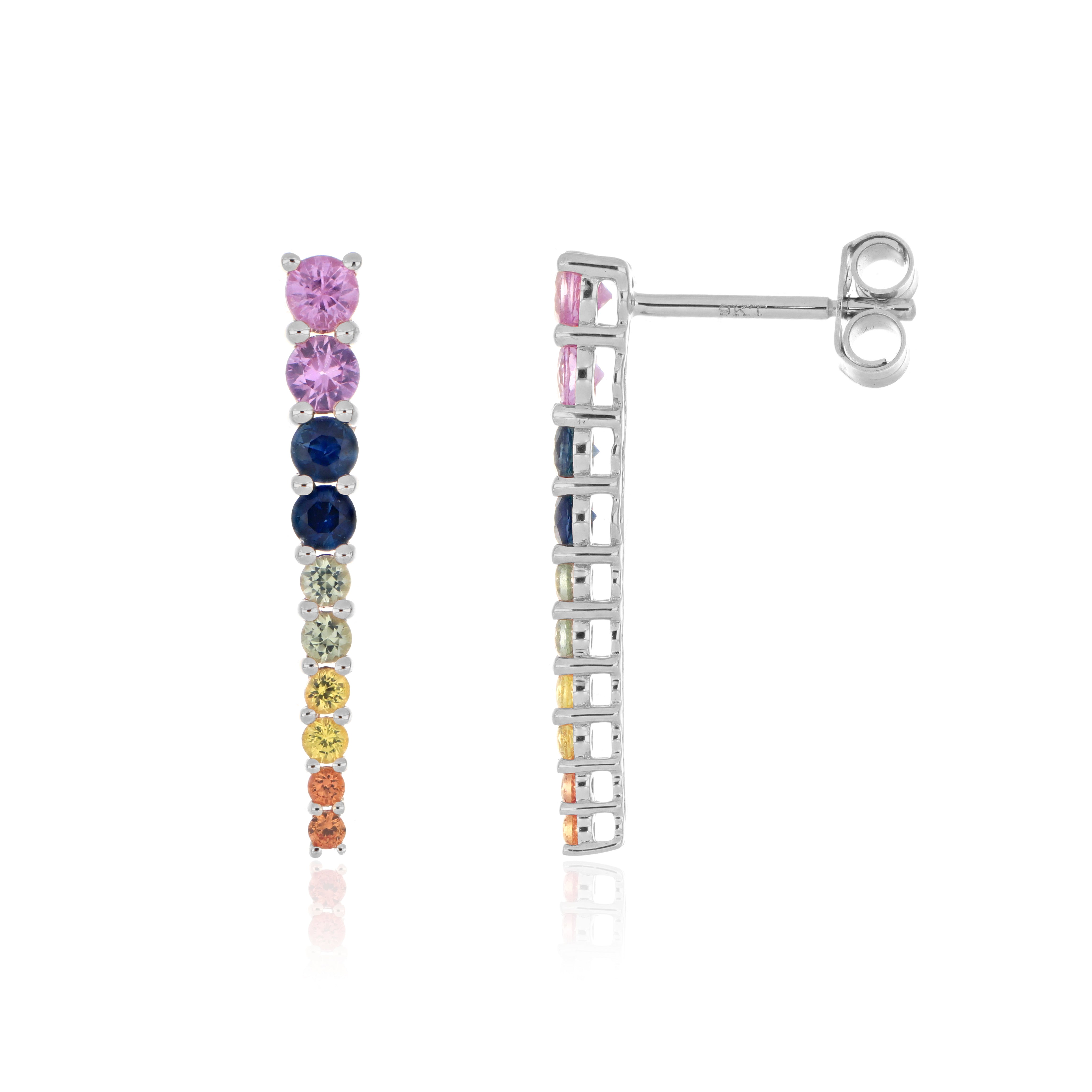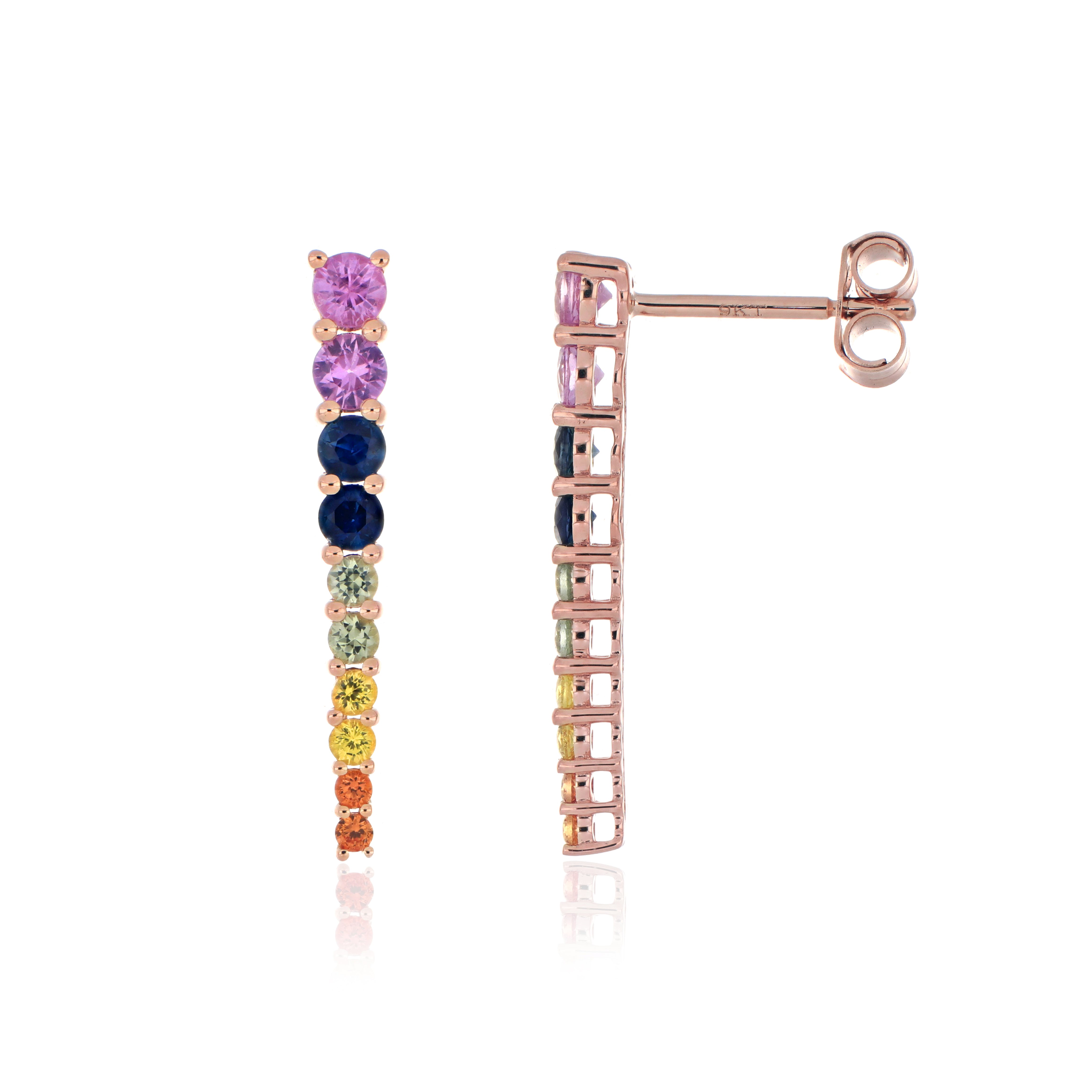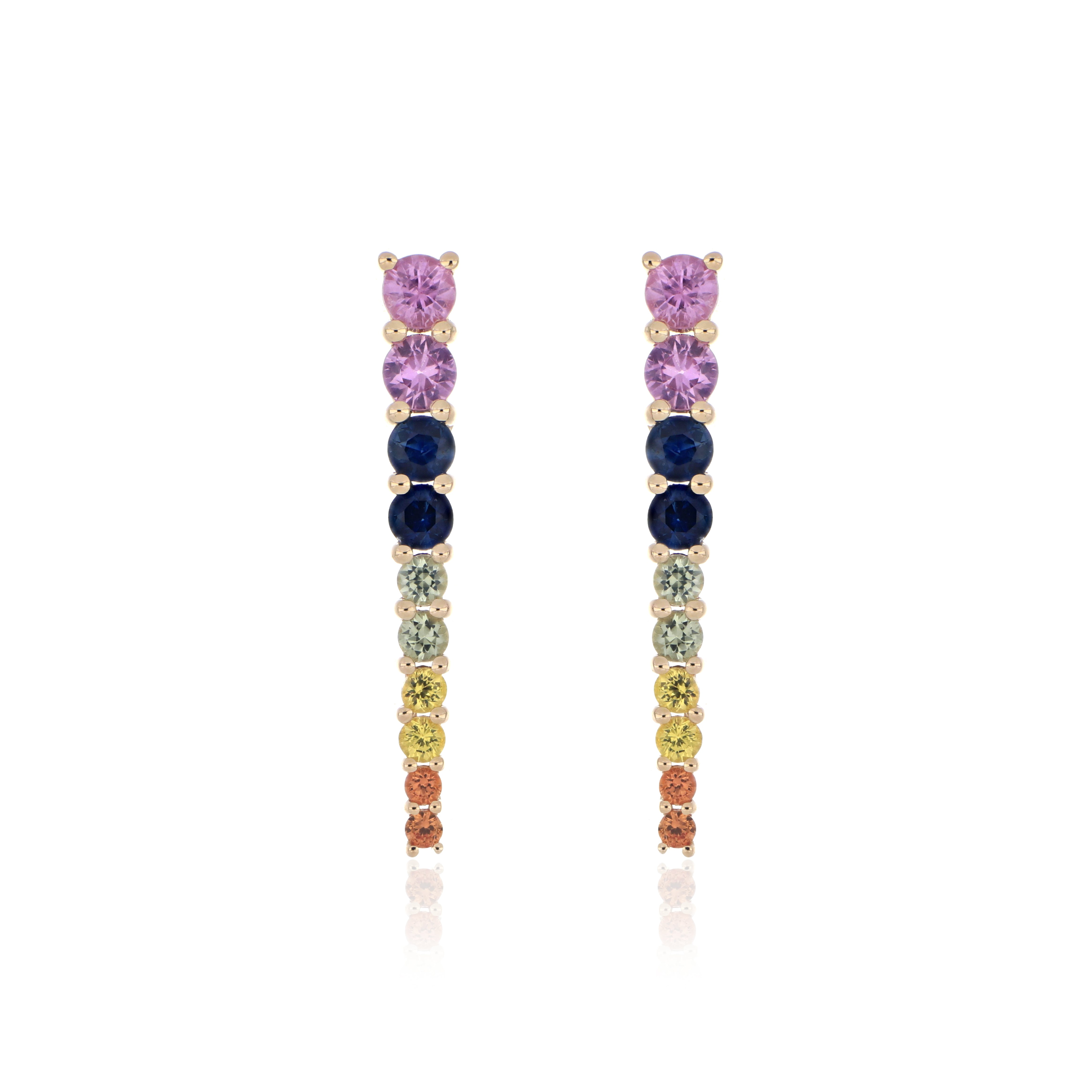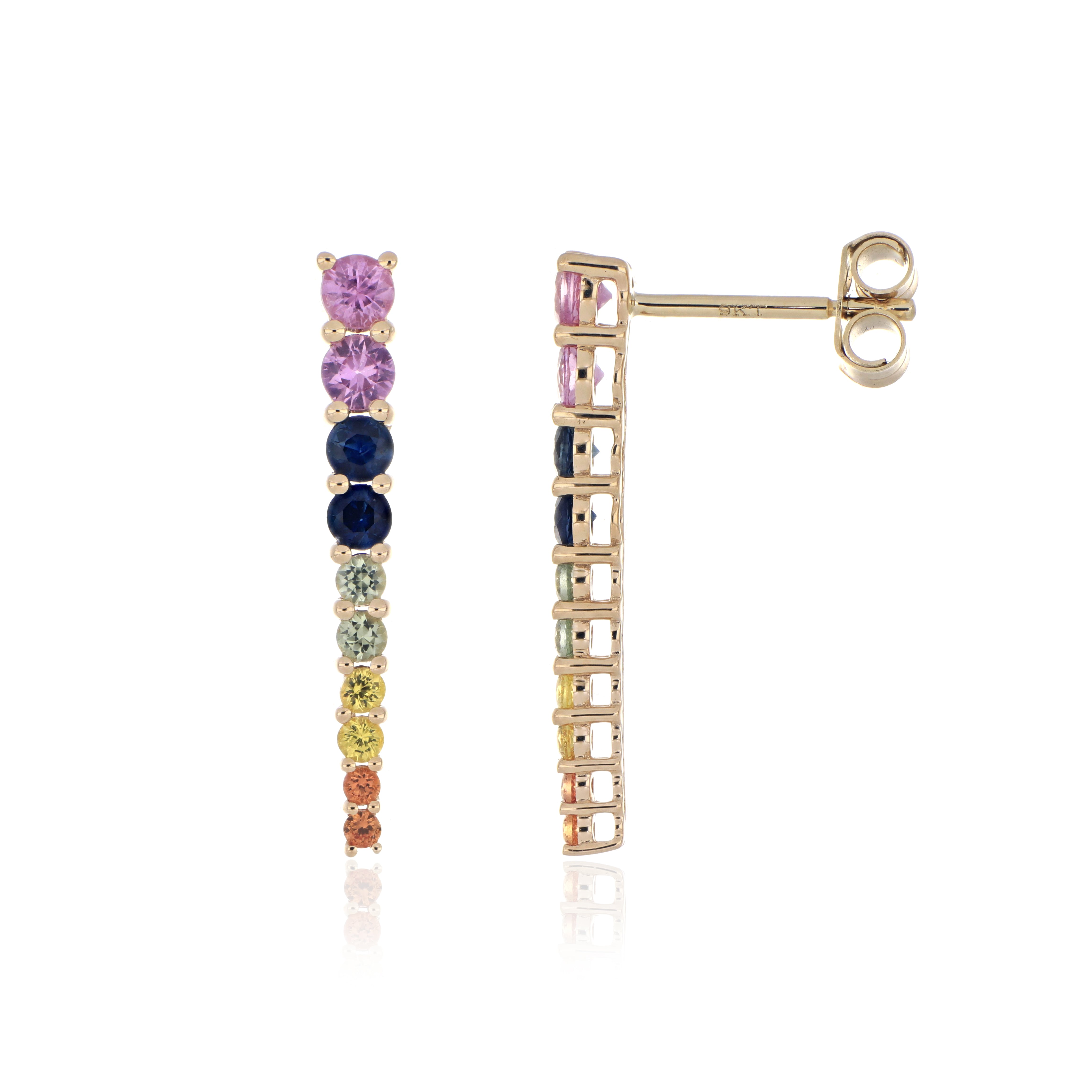 Multi-Sapphire Dangle Stud Earrings – 9KT Yellow Gold | Fine Jewelry
