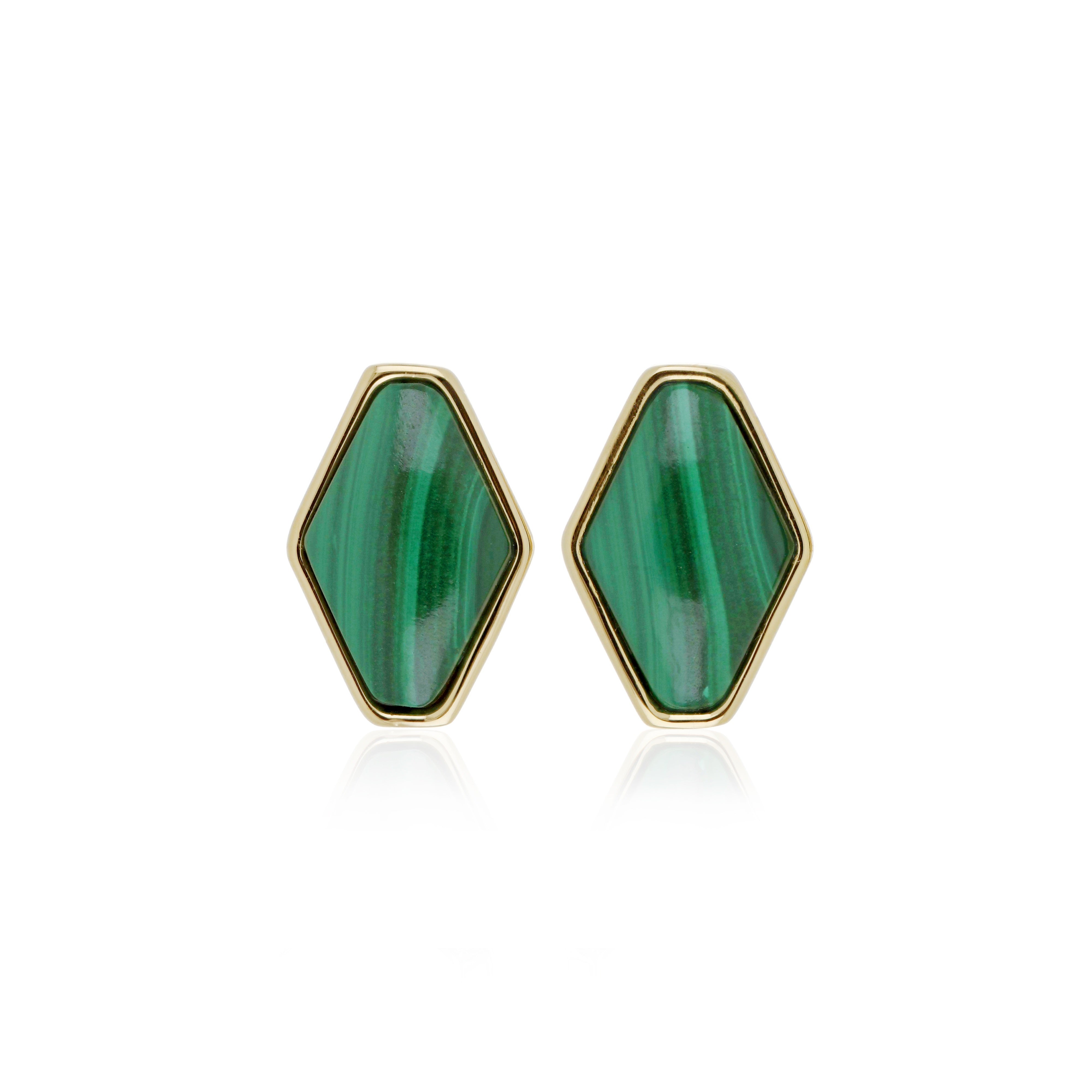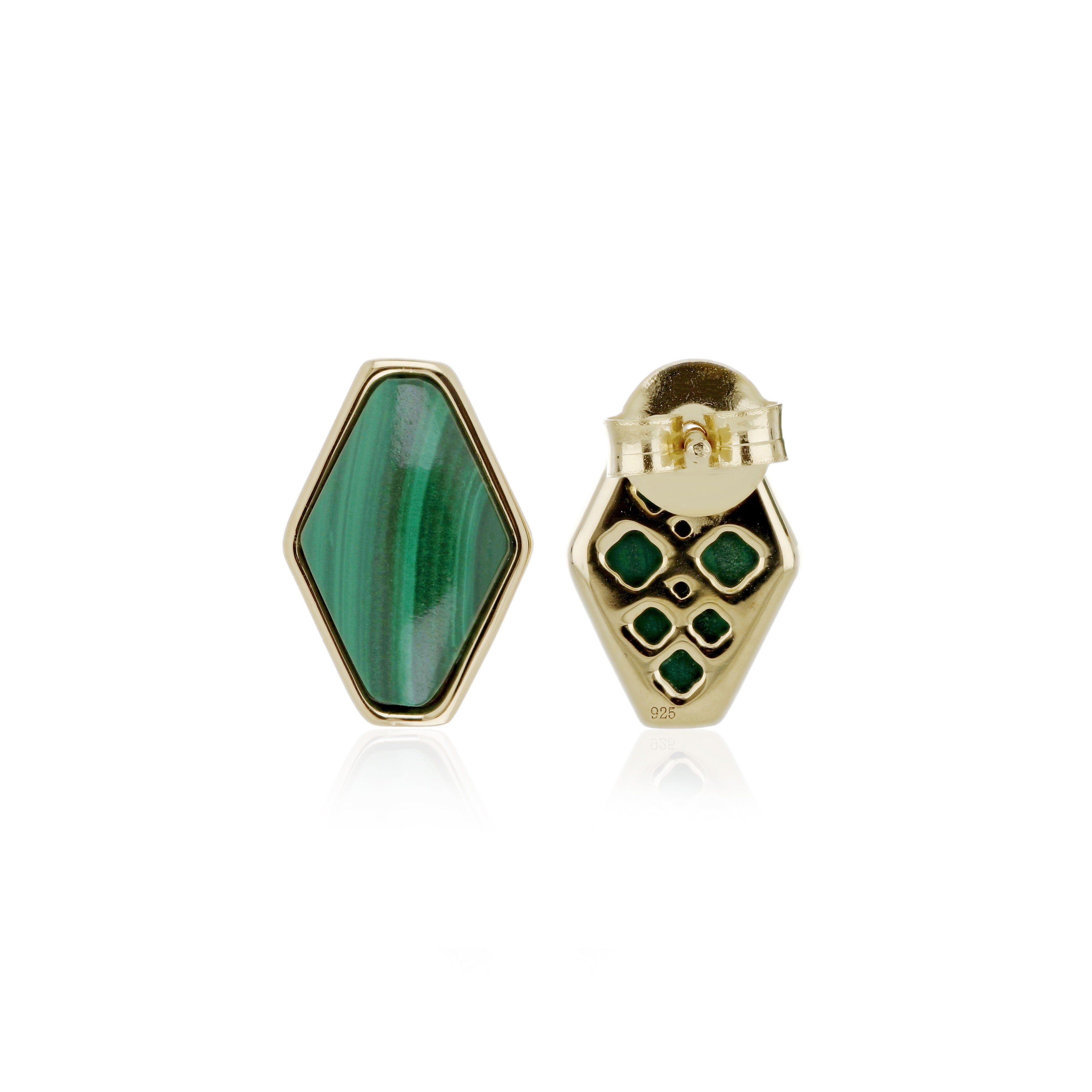 Make an elegant statement with these African Malachite 5.10ctw Earrings, crafted in 925 Sterling Silver and enriched with a warm Yellow Gold Plating. The deep green hues and natural banding of African Malachite bring a touch of earthy sophistication, while the sleek push post design ensures both comfort and security. Perfect for adding a refined pop of color to your everyday or evening look, these earrings combine timeless beauty with modern elegance.