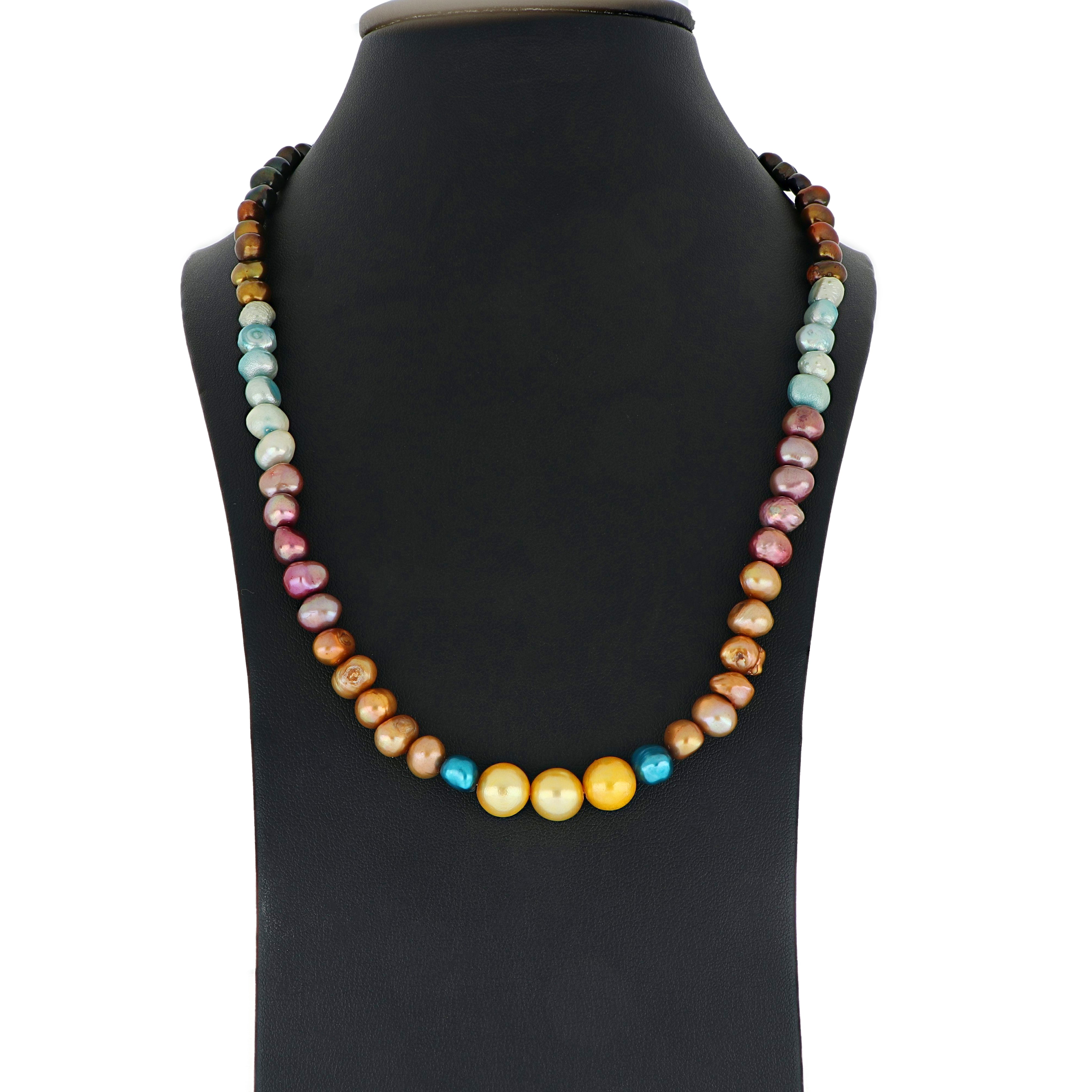 Experience timeless elegance with the Multicolor Dyed Pearl 167.00ctw Necklace crafted in Sterling Silver. Featuring an array of vibrant, multicolored pearls, this necklace showcases large pearl sizes that make a bold and sophisticated statement. The durable and polished sterling silver setting enhances its luxurious appeal, making it an excellent choice for special occasions or everyday refinement.