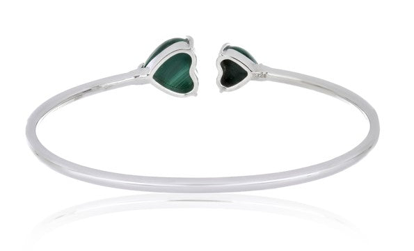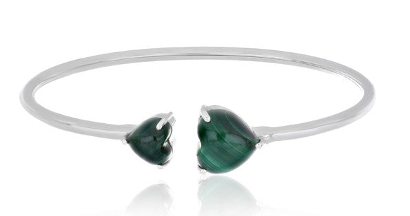 African malachite is a vibrant green, semi-precious gemstone, primarily composed of copper carbonate and known for its distinctive banded patterns. This 14.20ctw bangle showcases the rich hues of malachite, set in high-quality sterling silver for a refined and elegant appearance. The timeless design highlights the natural beauty of the gemstone, making it a versatile accessory for various occasions. Crafted with precision, this piece combines durability with sophisticated style.