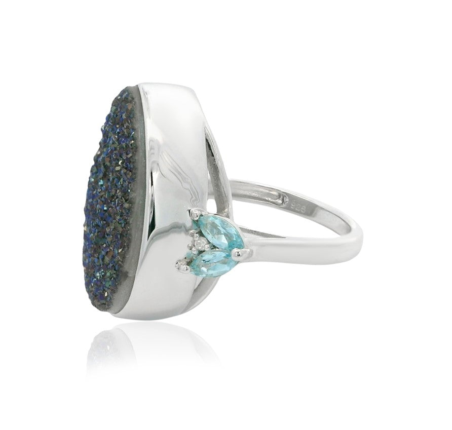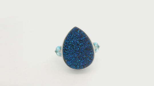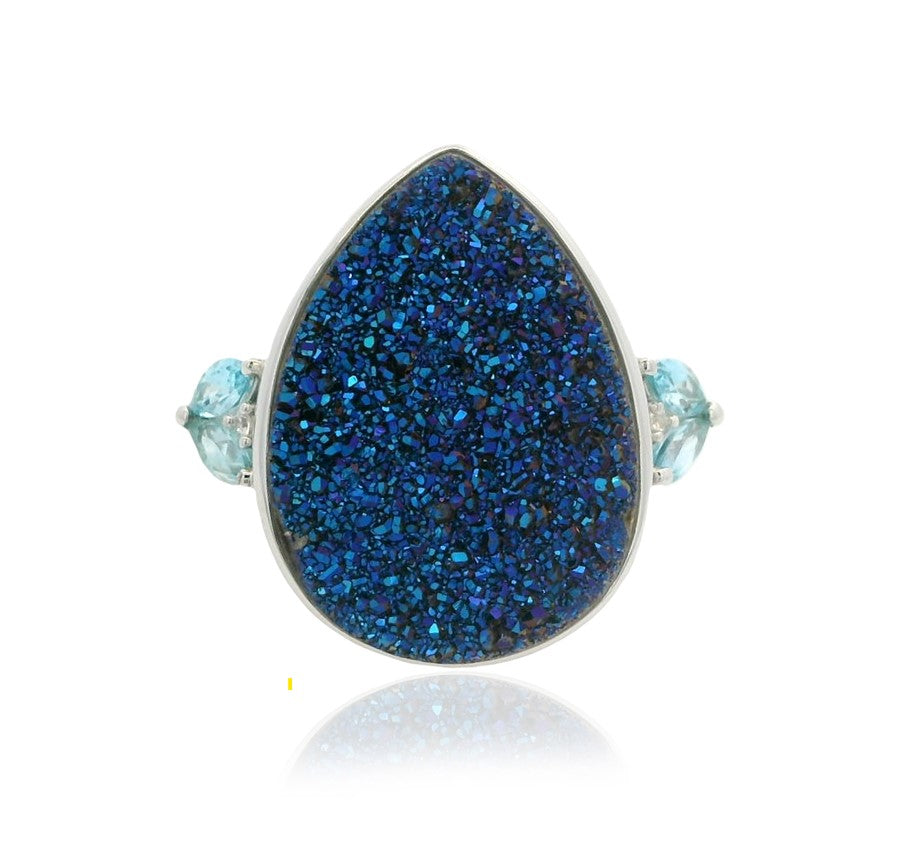 Blue Druzy Quartz With Multi Stone 20.30ctw Ring In 925 Sterling Silver