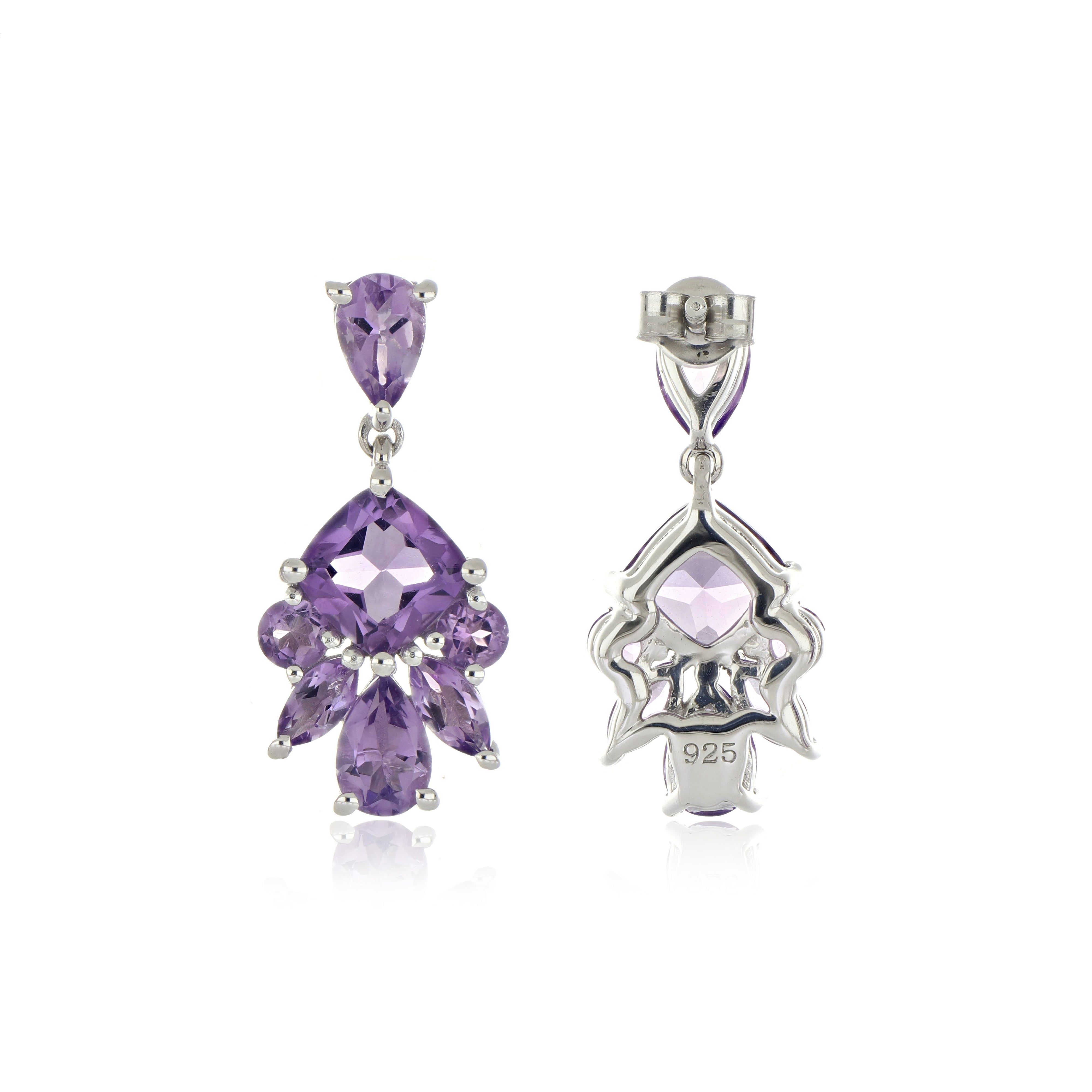 Brazilian Amethyst 3.90ctw Push Post Earrings In 925 Sterling Silver