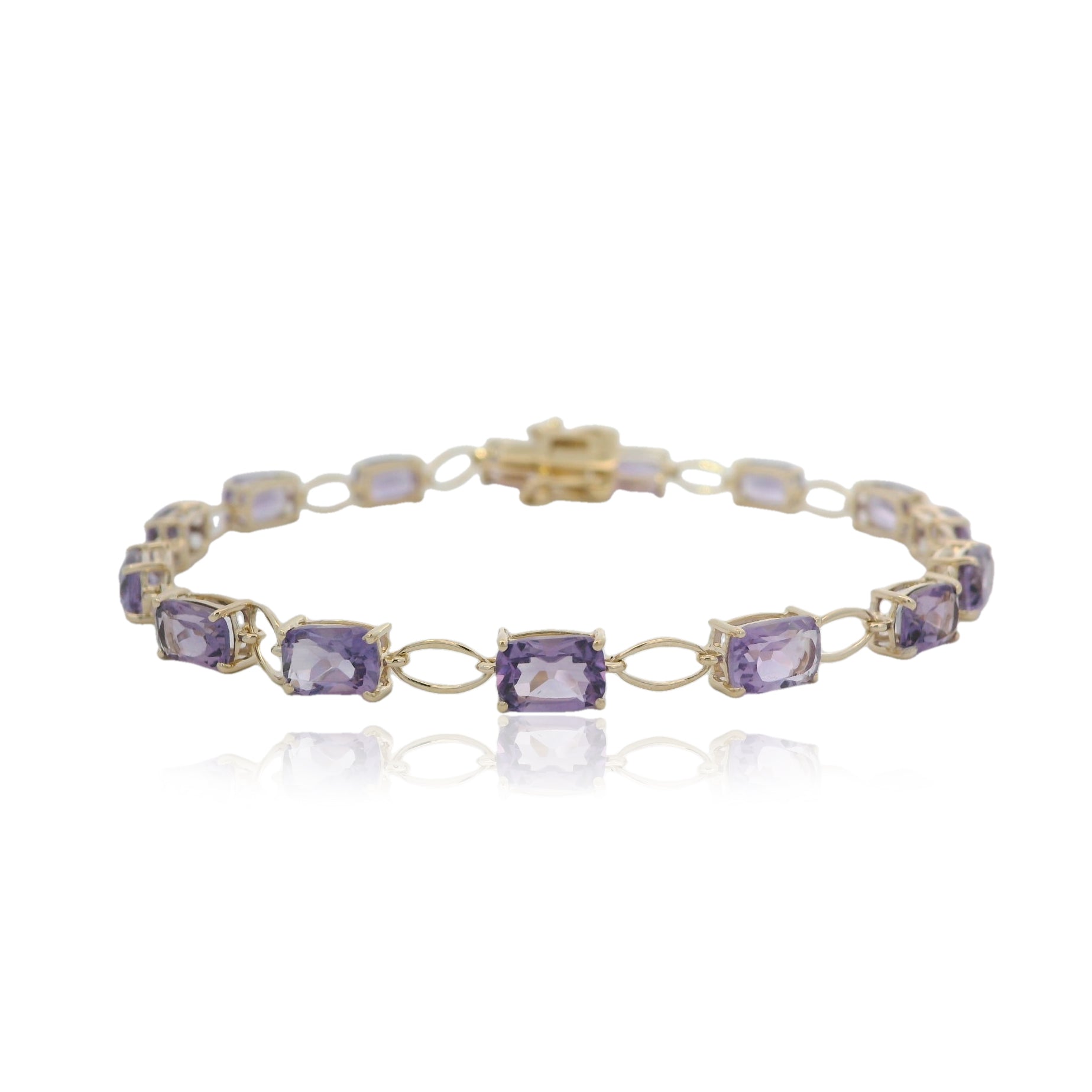 Elevate your elegance with this stunning Brazilian Pink Amethyst 7.90ctw Bracelet, meticulously crafted in 9KT Yellow Gold. Featuring exquisite natural pink amethyst gemstones sourced from Brazil, this bracelet radiates a soft, feminine glow with a touch of luxury. The gentle pink hues of the amethysts reflect sophistication and grace, making it the perfect accessory for both special occasions and everyday wear. Expertly set in a durable and polished 9KT Yellow Gold framework, the bracelet offers both beauty and lasting quality. A true statement piece that complements any jewelry collection.