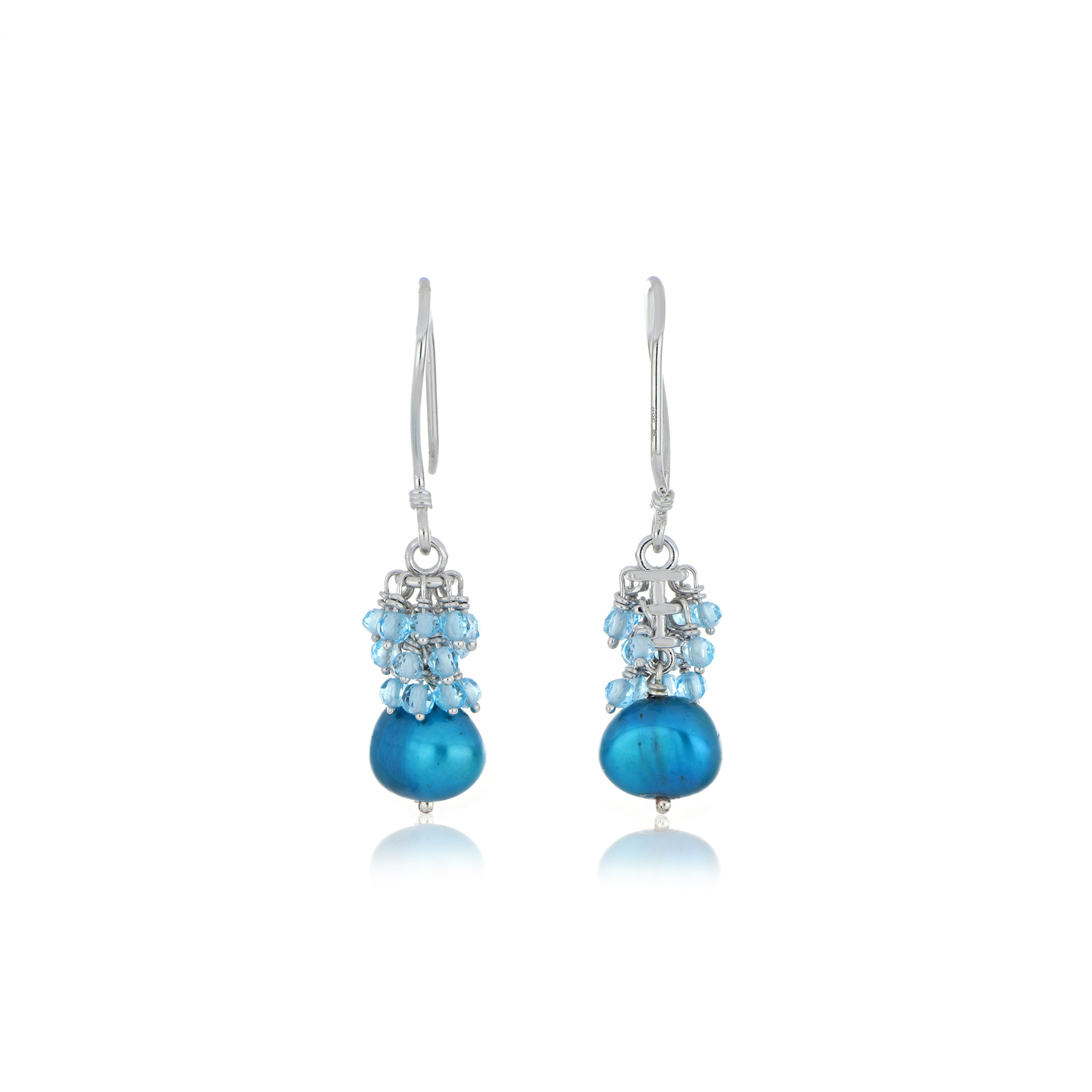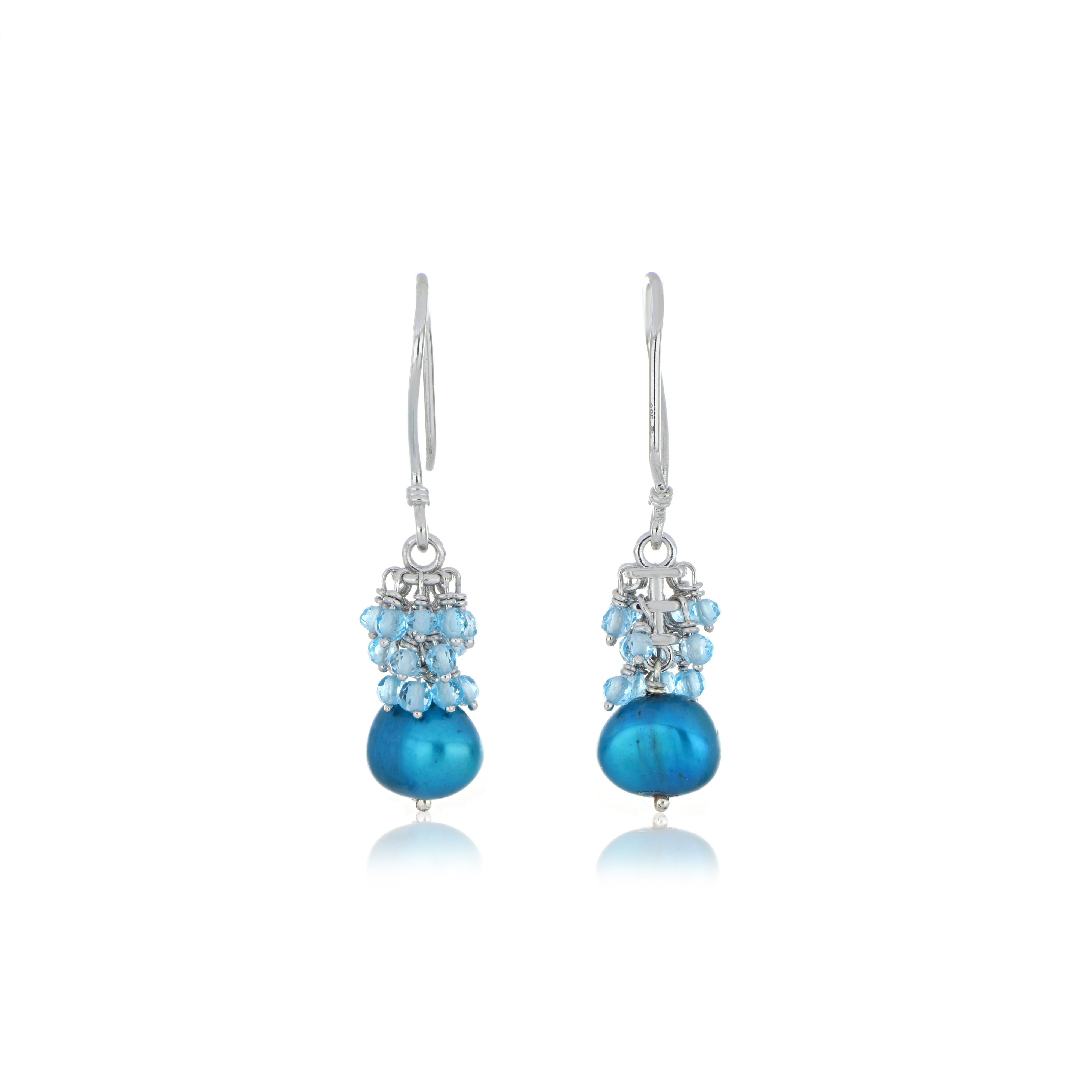 Dyed Shiny Blue Pearl With Multi Stone 12.20ctw Earrings In 925 Sterling Silver