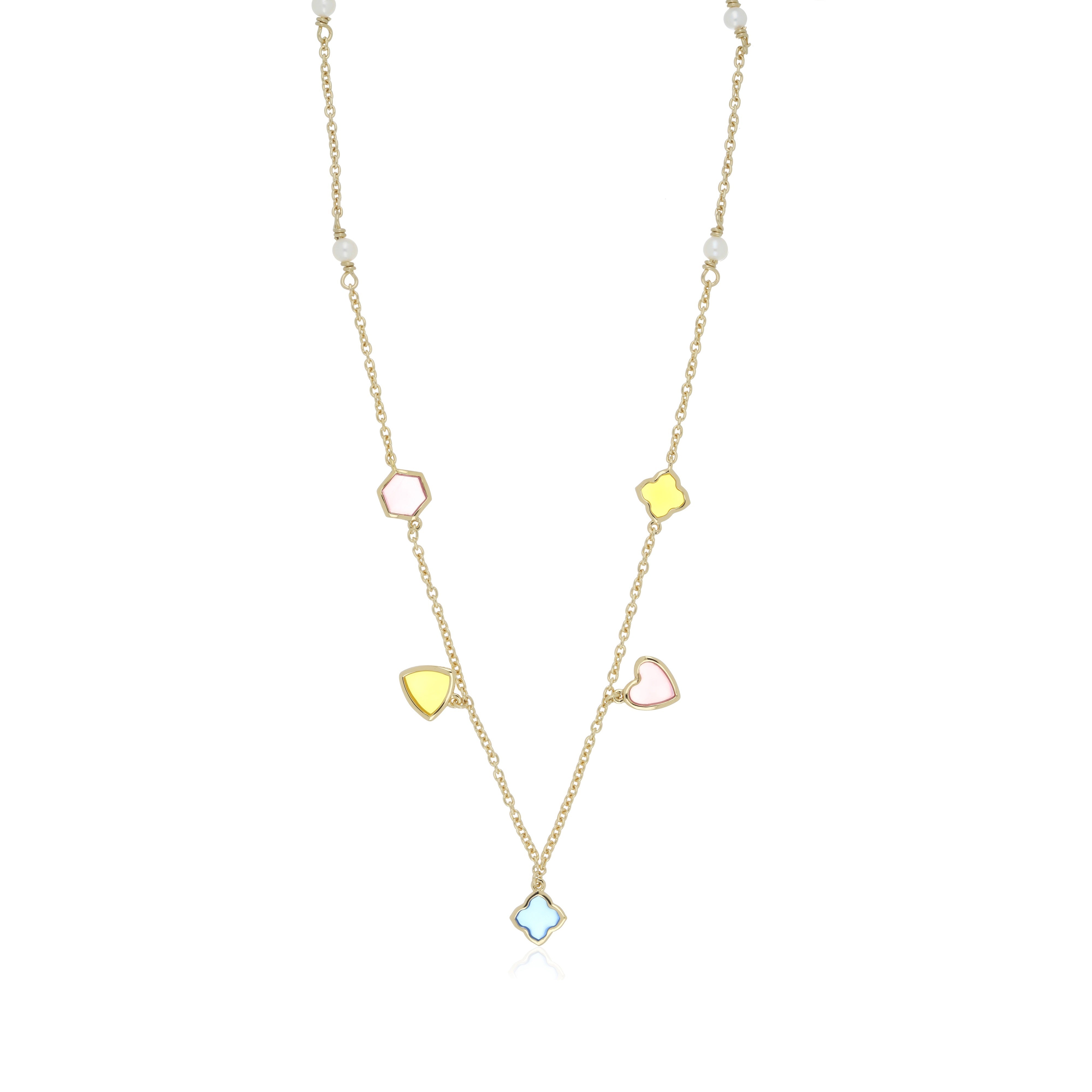 Pearl With Enamel Yellow Gold Plated Necklace In 925 Sterling Silver