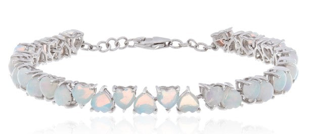 Ethiopian Rainbow Opal 10.30ctw Heart Bracelet In 925 Sterling Silver