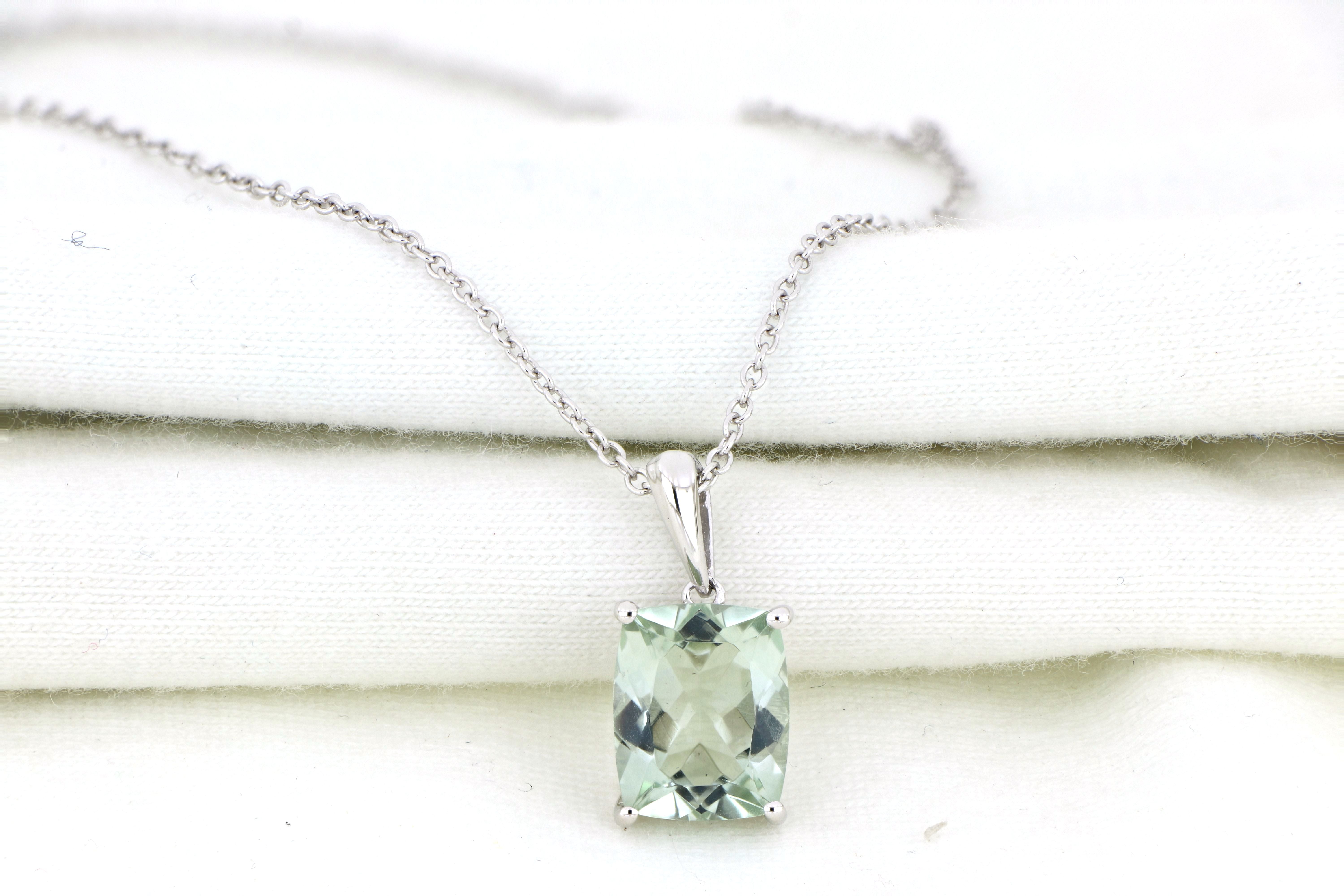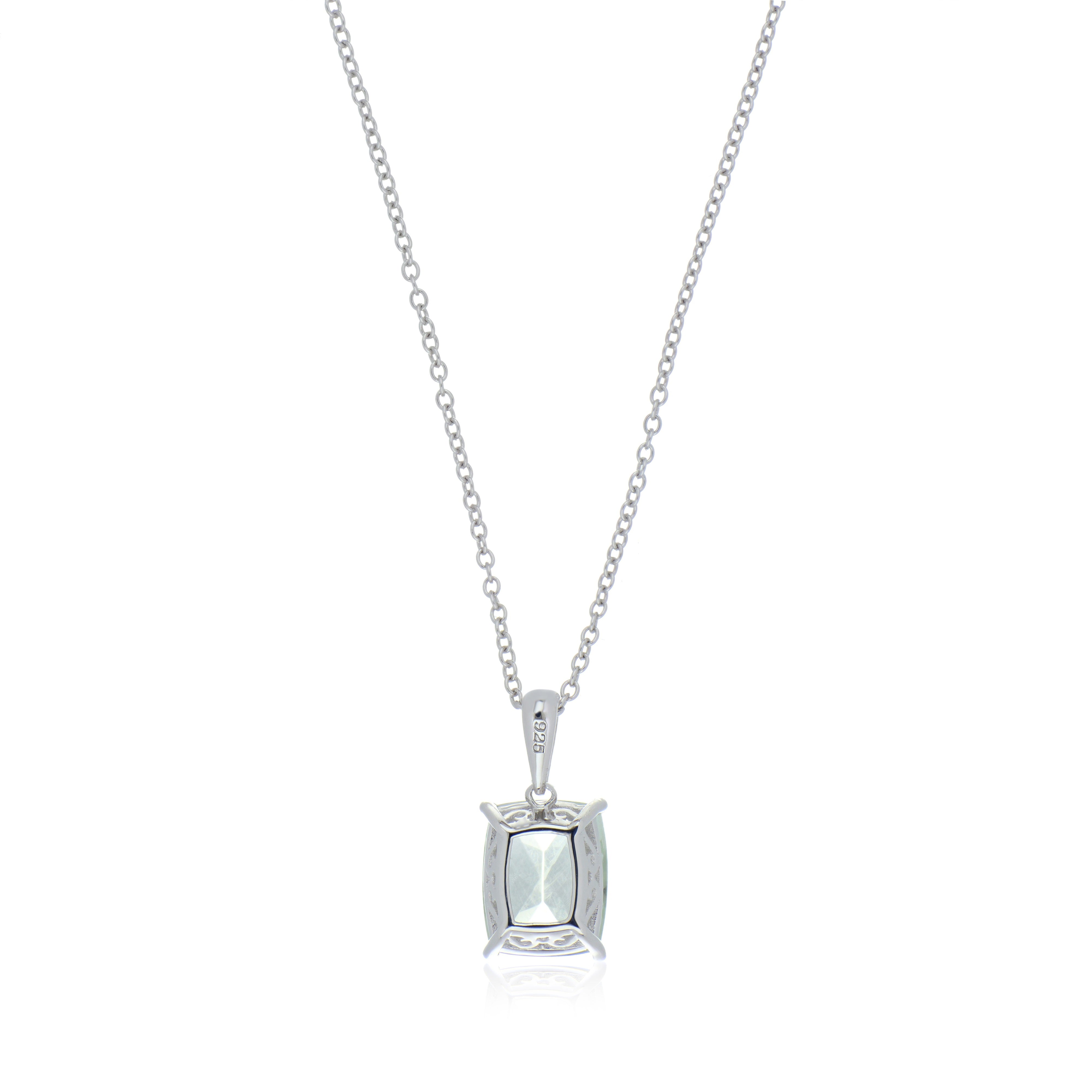 Add a refreshing touch of elegance with this Mint Quartz Pendant, featuring a total carat weight of 3.20ctw. Crafted in premium 925 sterling silver, the pendant highlights the soothing green hue of mint quartz, creating a subtle yet striking accessory. Suspended from a matching sterling silver chain, this pendant is perfect for everyday wear or special occasions, effortlessly complementing any outfit.