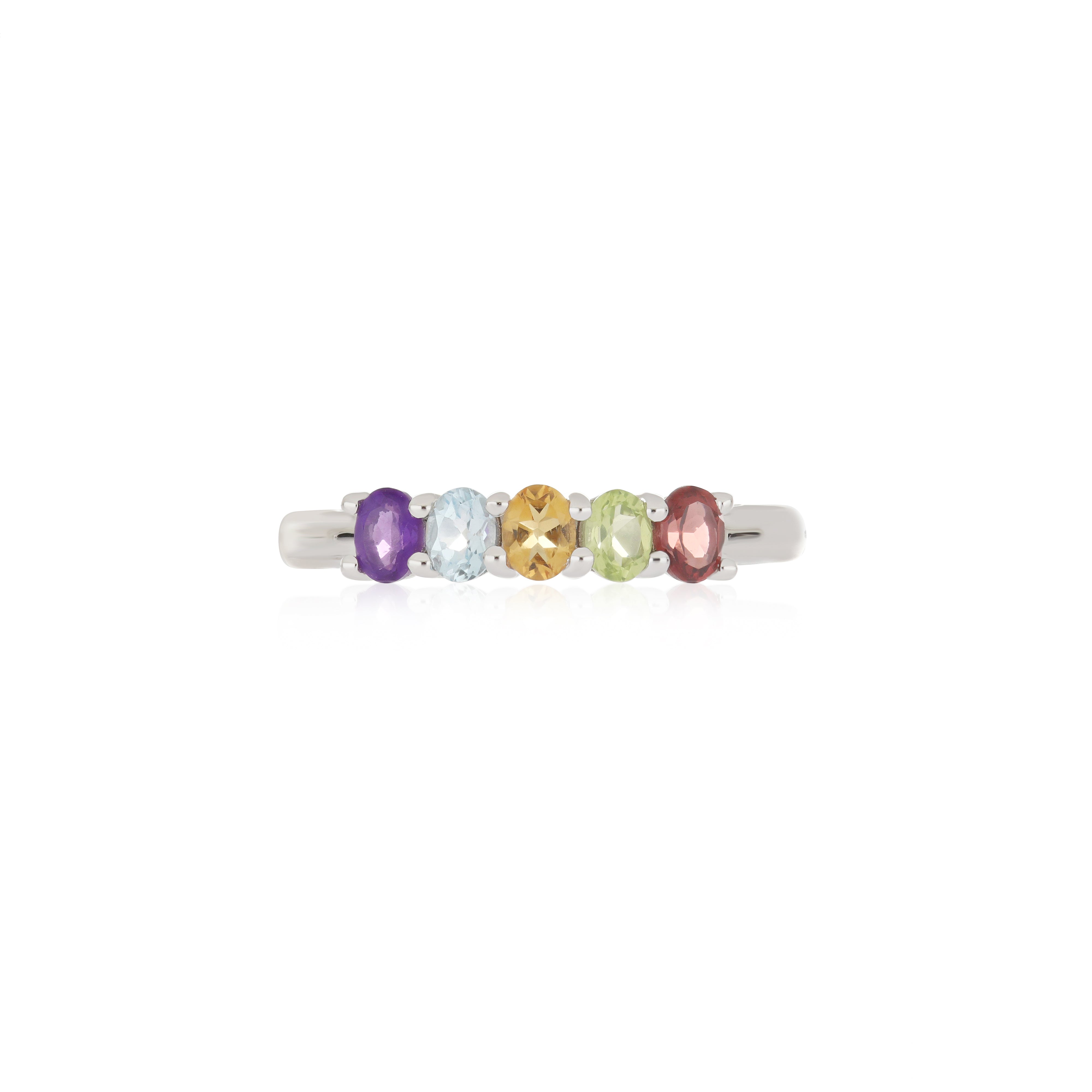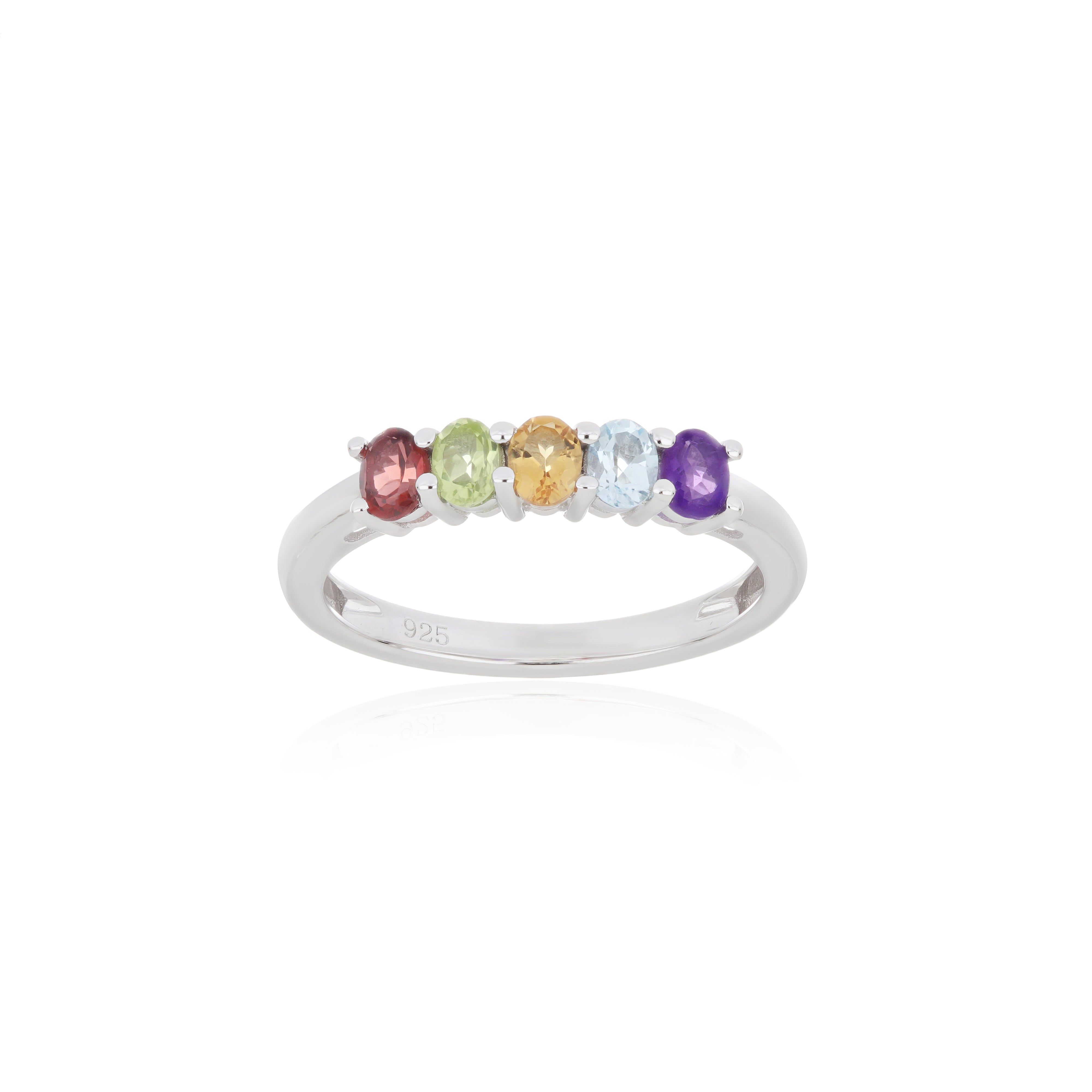 Brighten your look with this Multi Gemstone Ring. Featuring a total of 0.90ctw of vibrant, sparkling gemstones, this ring showcases a playful yet elegant mix of colors. Crafted in 925 sterling silver, it combines timeless style with durability, making it suitable for both everyday wear and special occasions. Its versatile design allows it to complement any outfit, adding a subtle pop of color and charm.